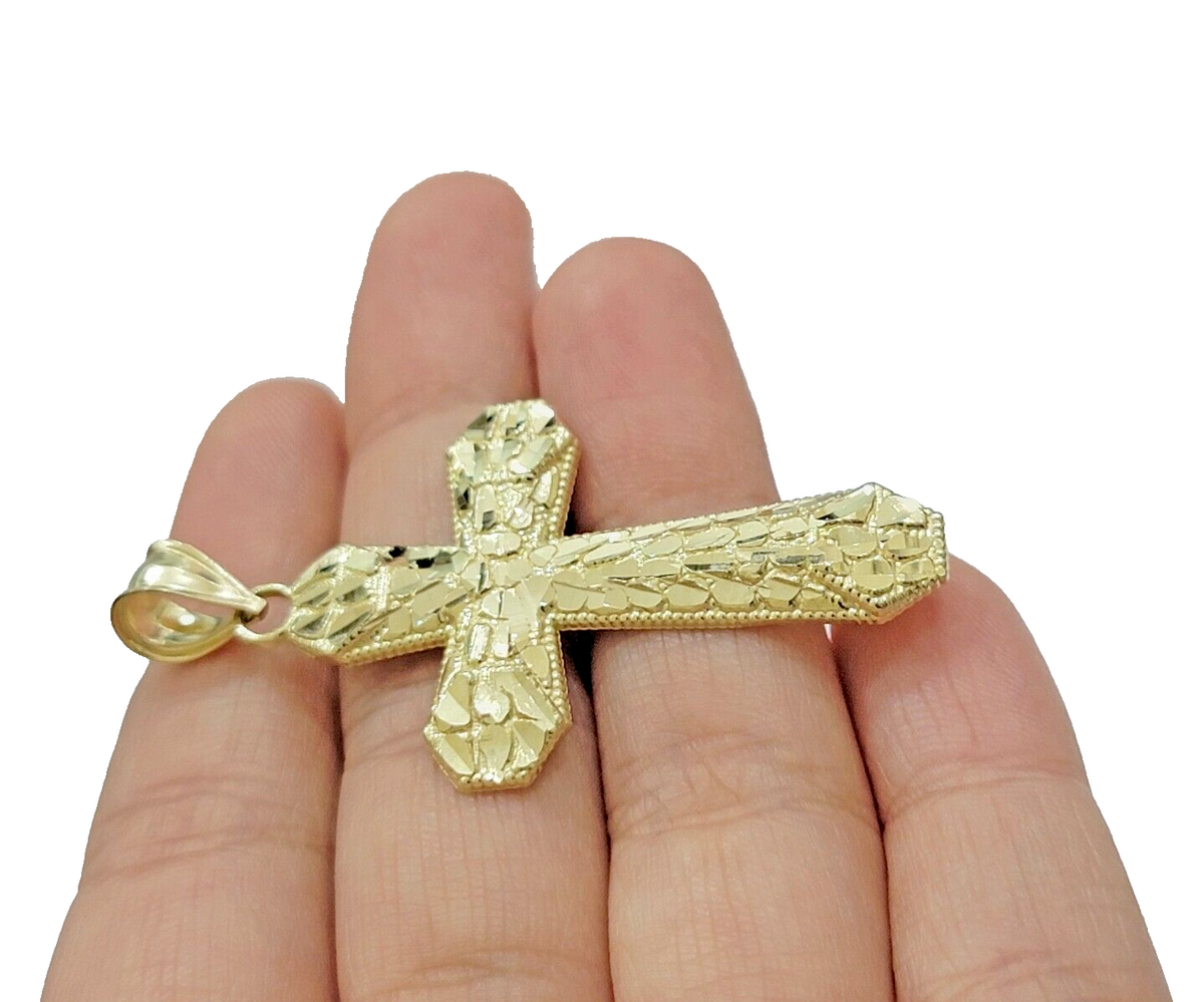 Real 10k Gold Cross Charm pendant Nugget Plain 2 Inch 10Kt Yellow Gold – Goldenlinq index