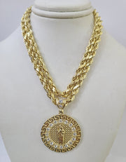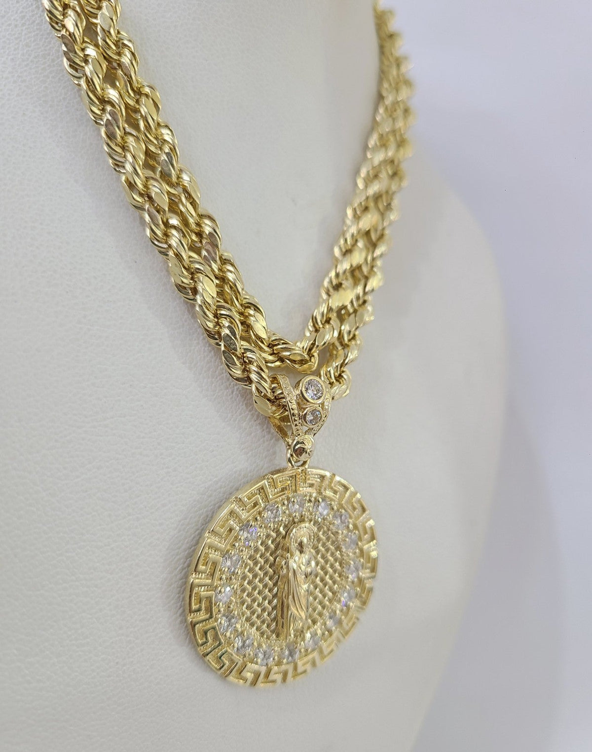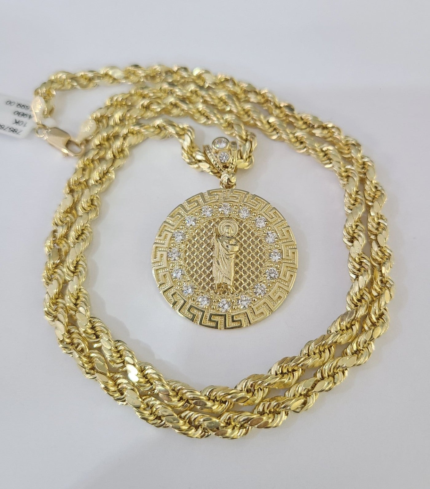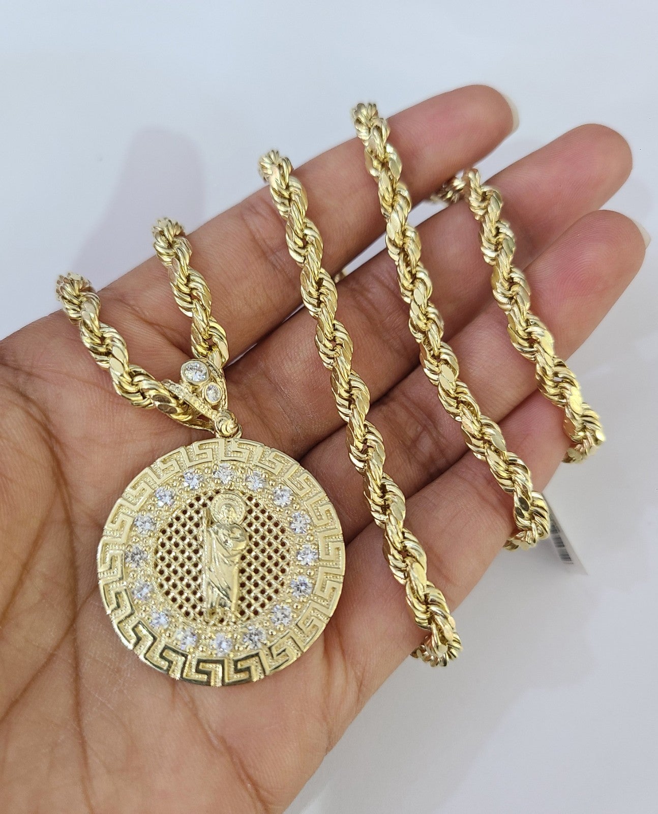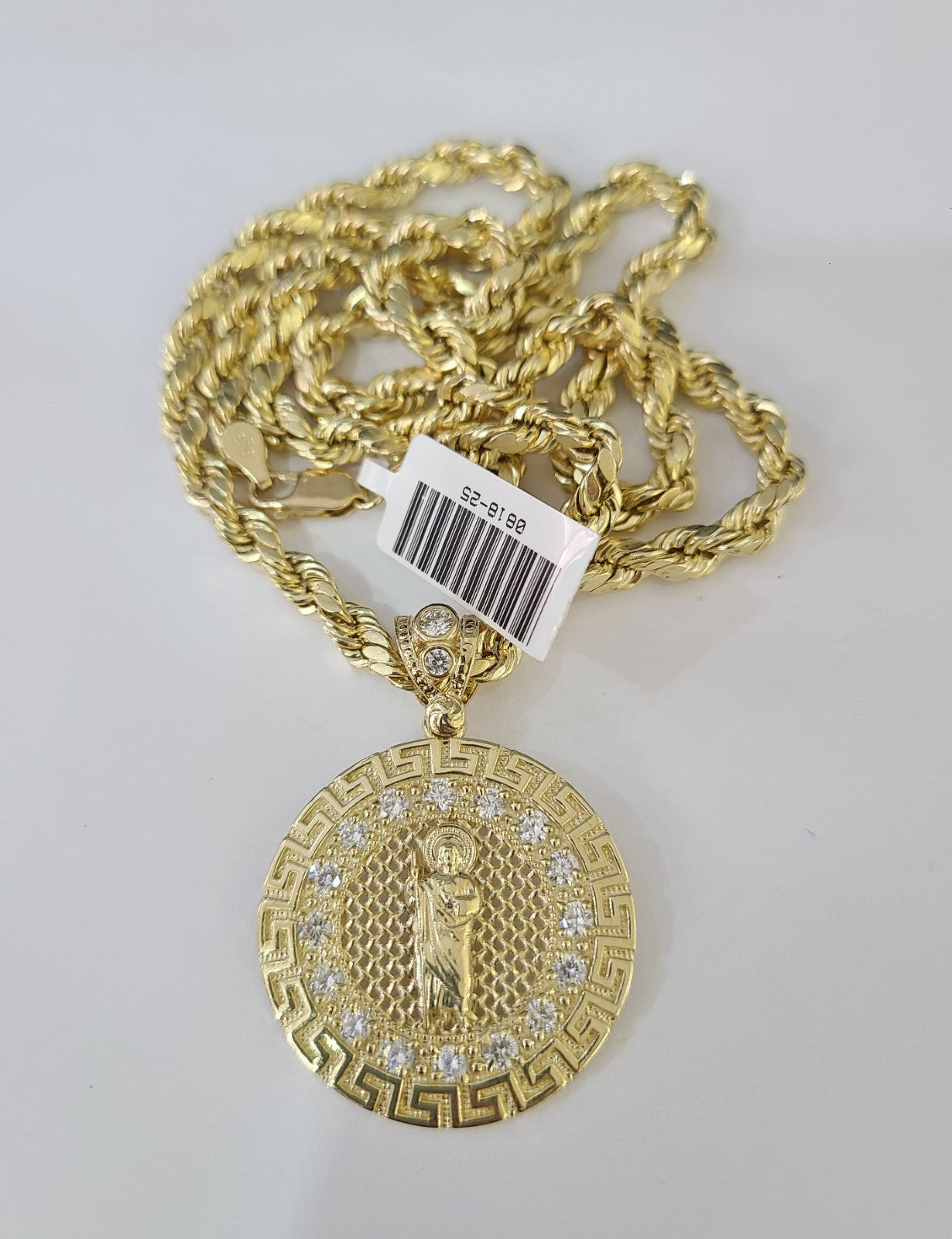 Real 10k Gold Rope Chain Necklace Saint Jude Pendant Charm Set 5mm 18"-28" - 20" Chain with Charm