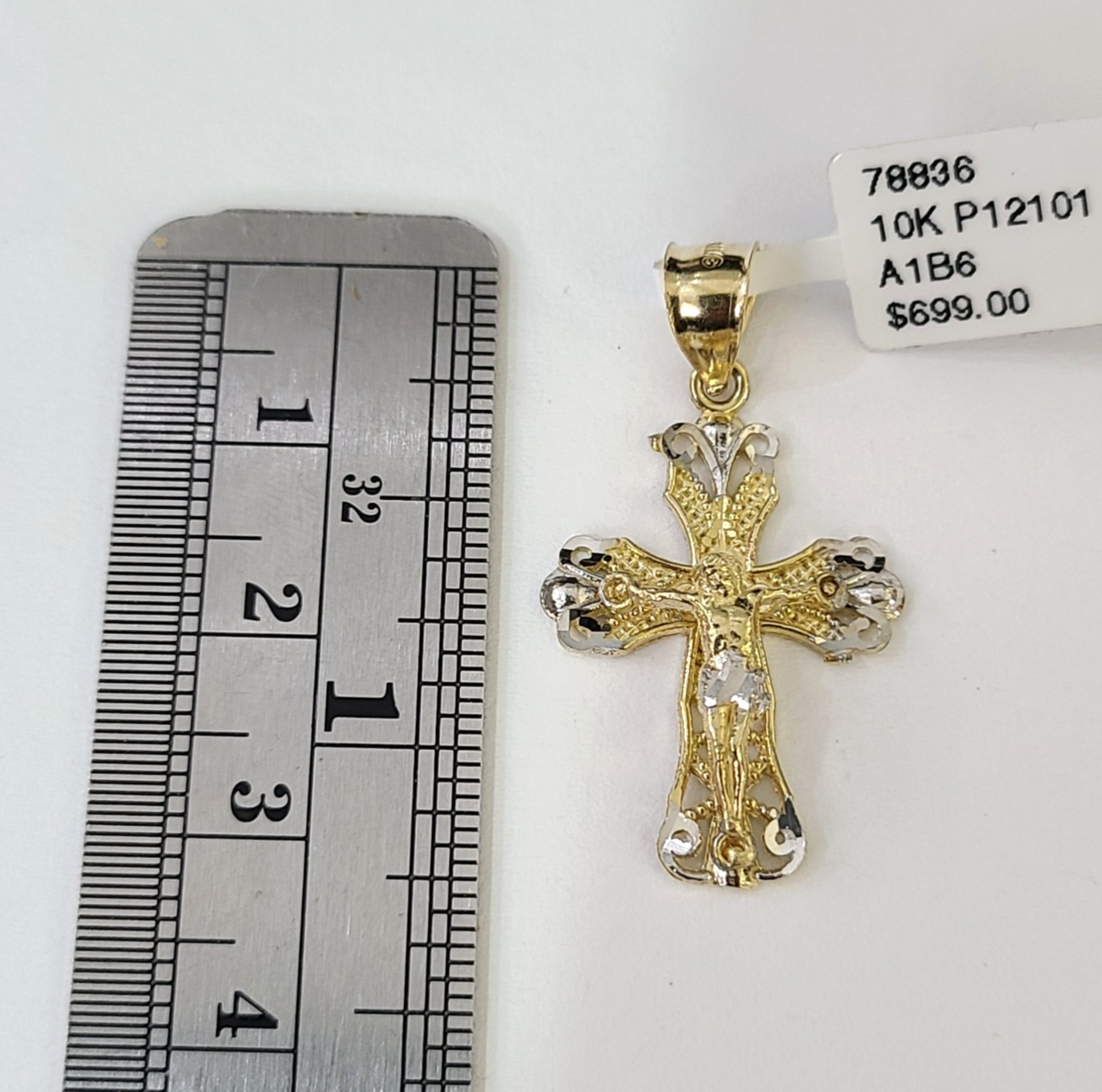 Real 10K Jesus Cross Pendant Crucifix Yellow Gold Charm Genuine