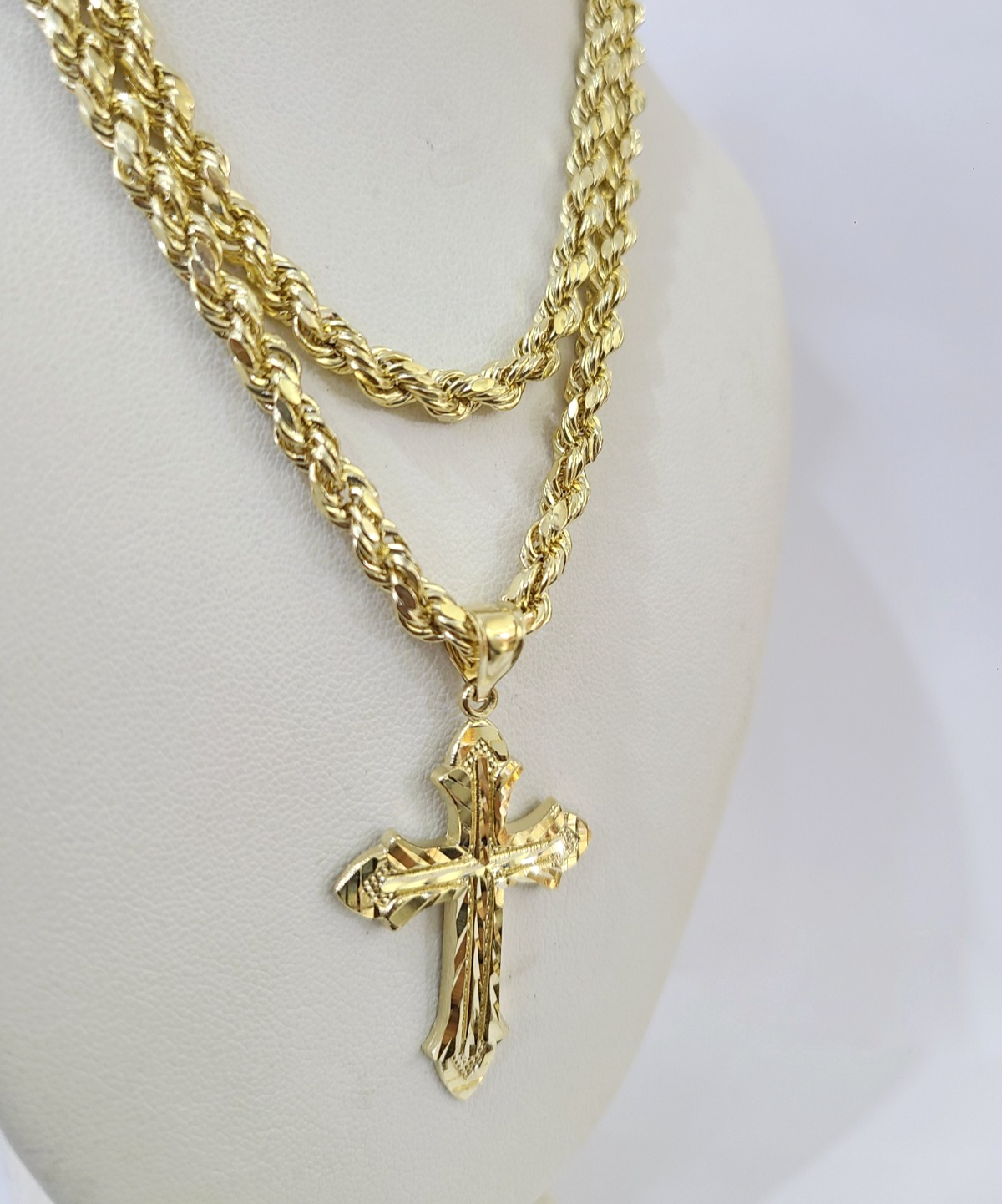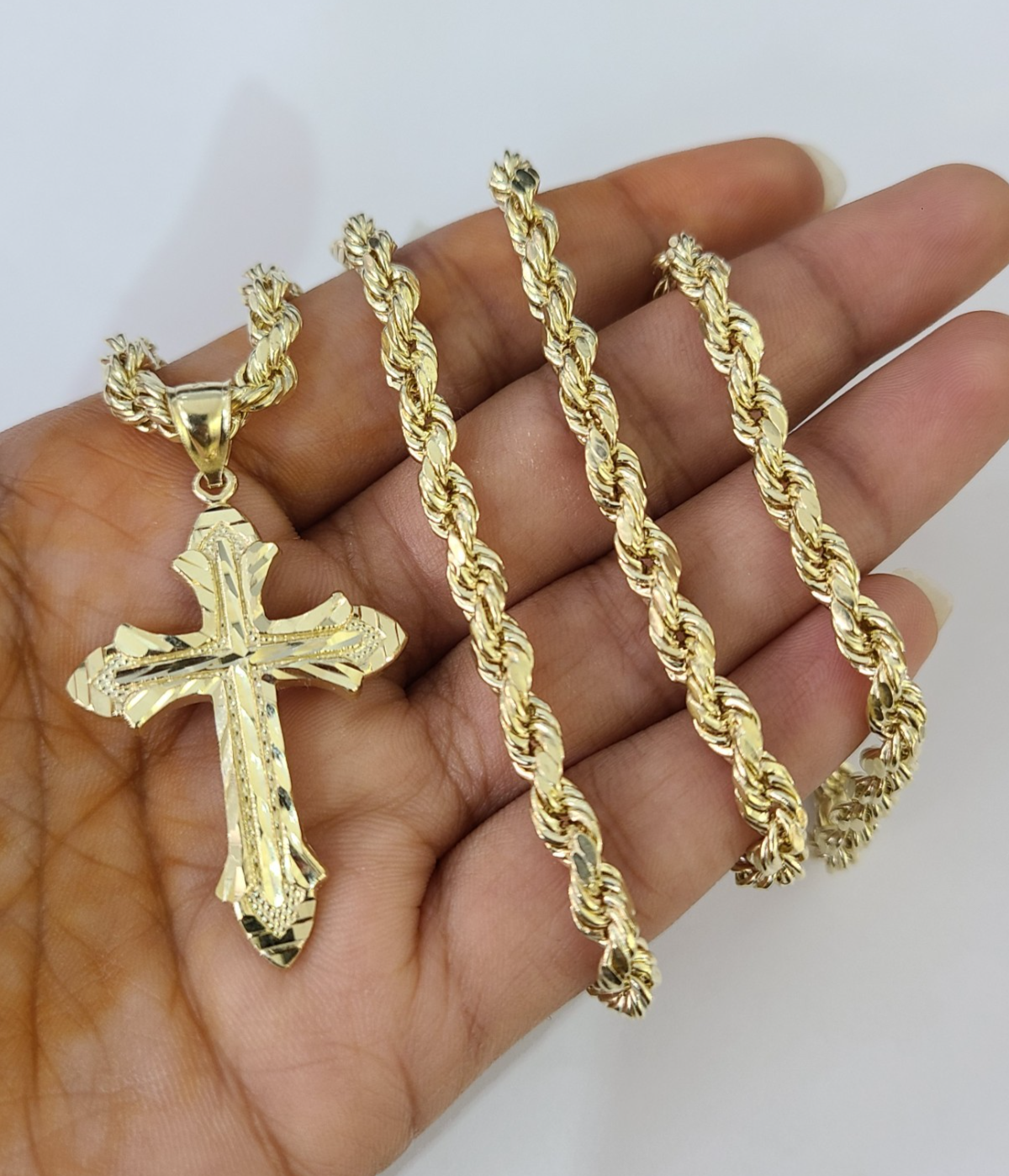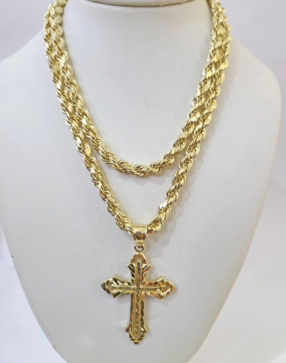 Real 10k Rope Chain Jesus Cross Charm Necklace Pendant Set 4mm 18"-28" – Goldenlinq index