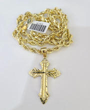 Real 10k Rope Chain Jesus Cross Charm Necklace Pendant Set 4mm 18"-28" Gold
