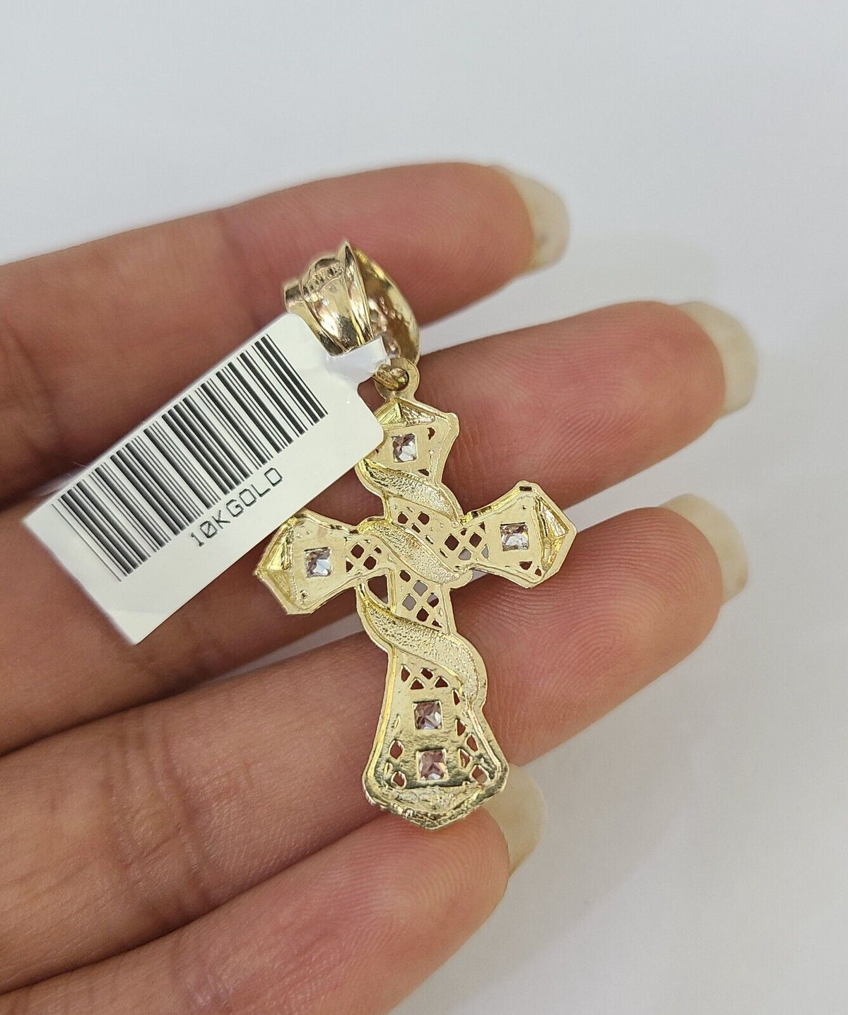 Real 10k Rope Chain Jesus Cross Charm Necklace Pendant Set 5mm 26" Inch Gold - 20" Chain with Charm