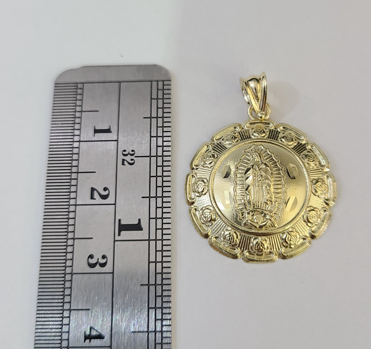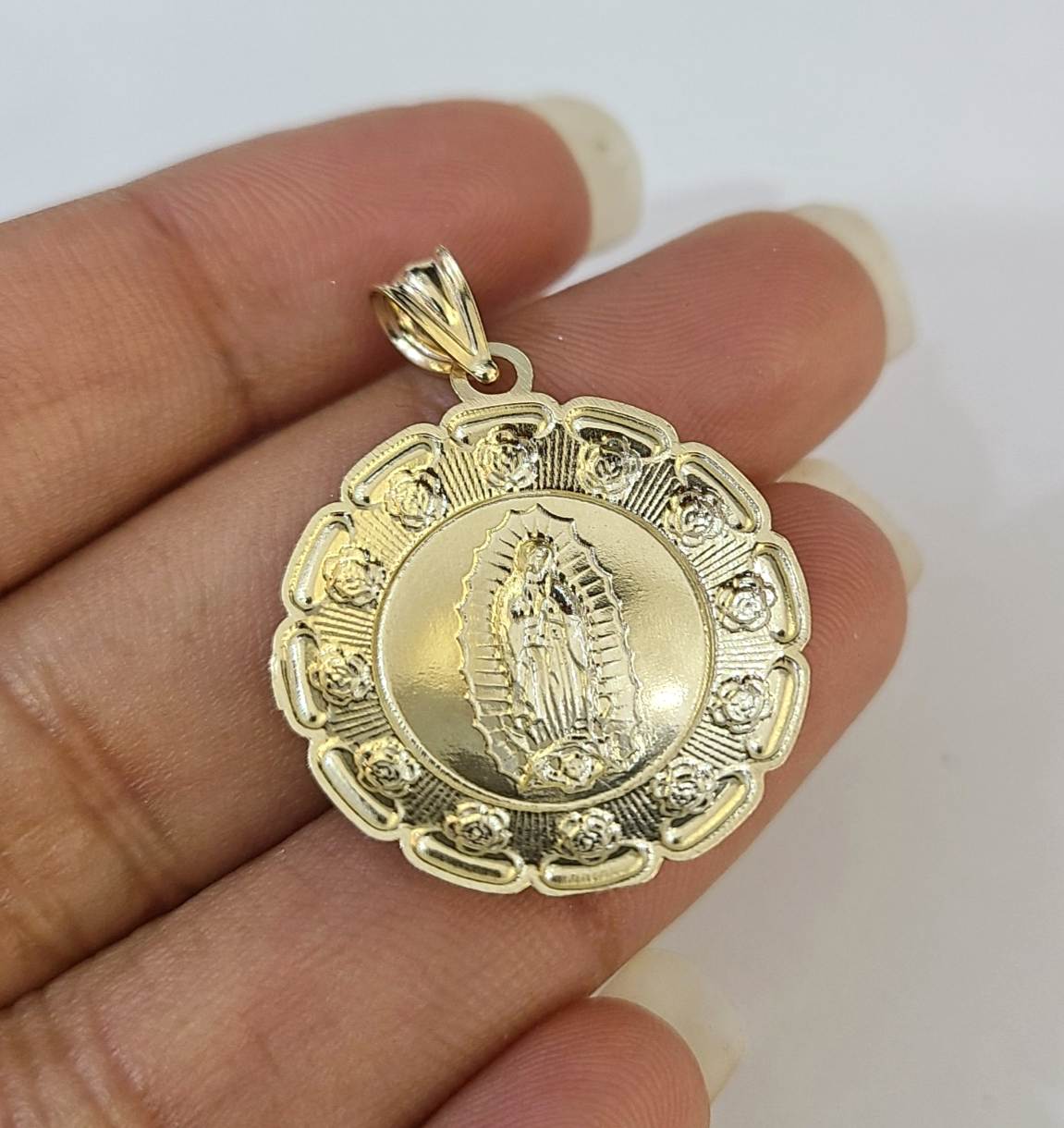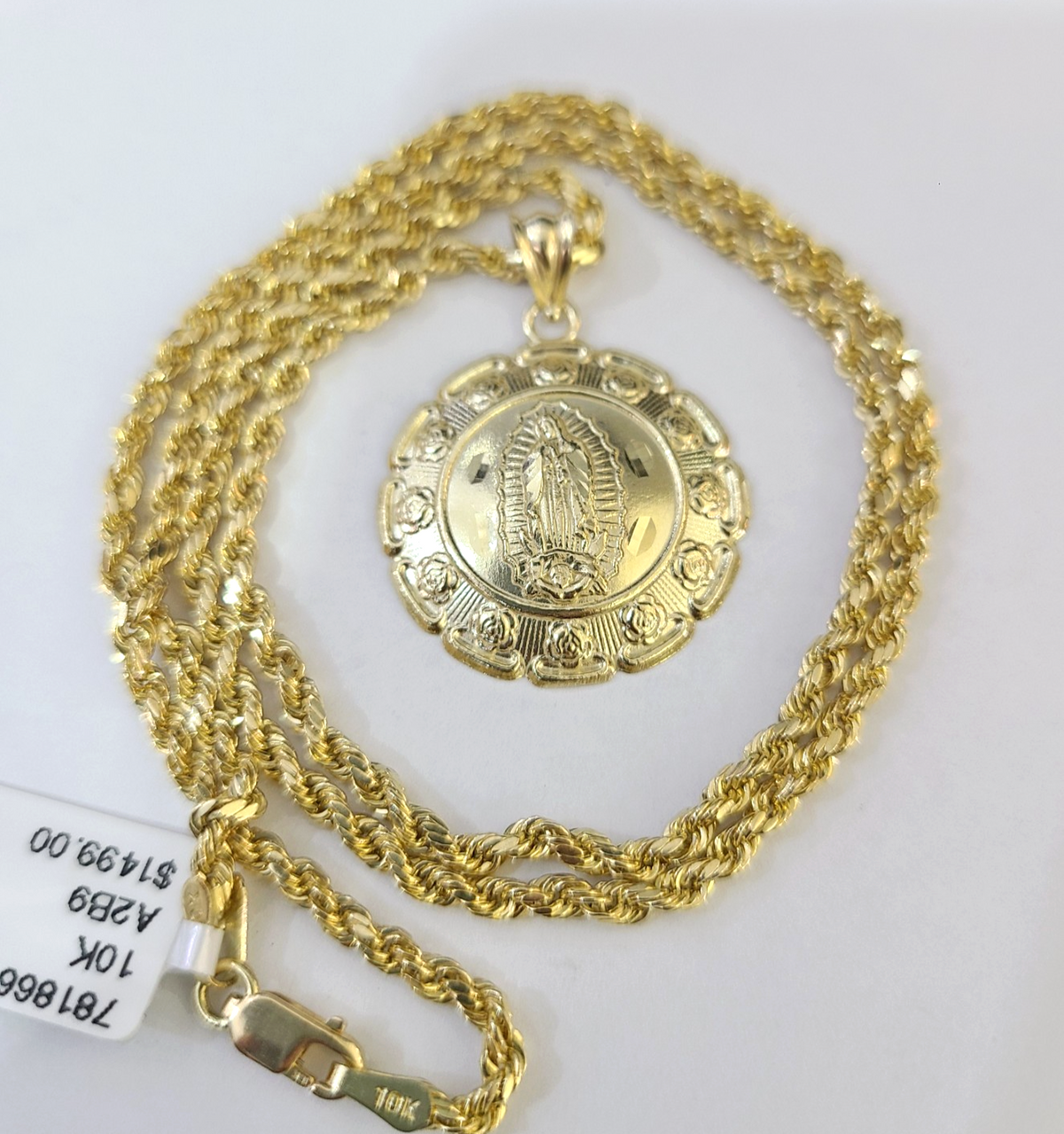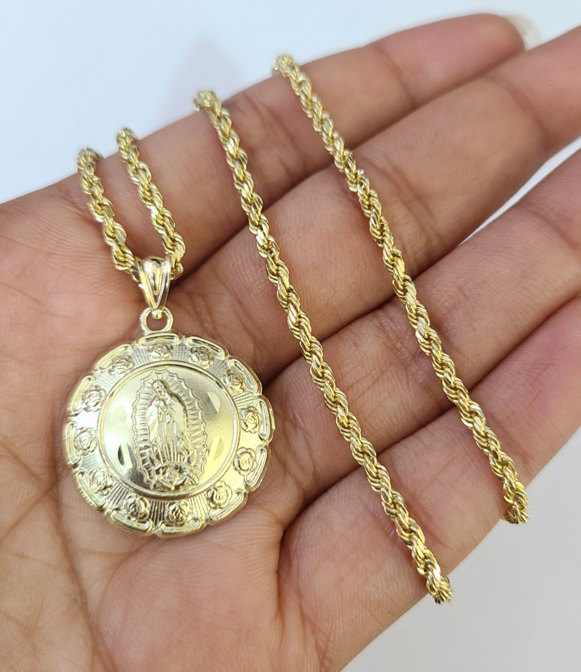 Real 10k Rope Chain Virgin Mary Charm Necklace SET 2mm 18"-28" end Pendant