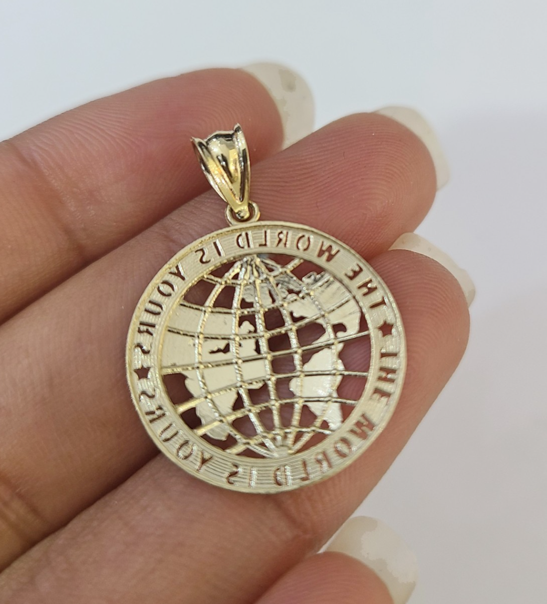 Real 10k Rope Chain World is Yours Charm Necklace SET 2mm 18"-28" Pendant