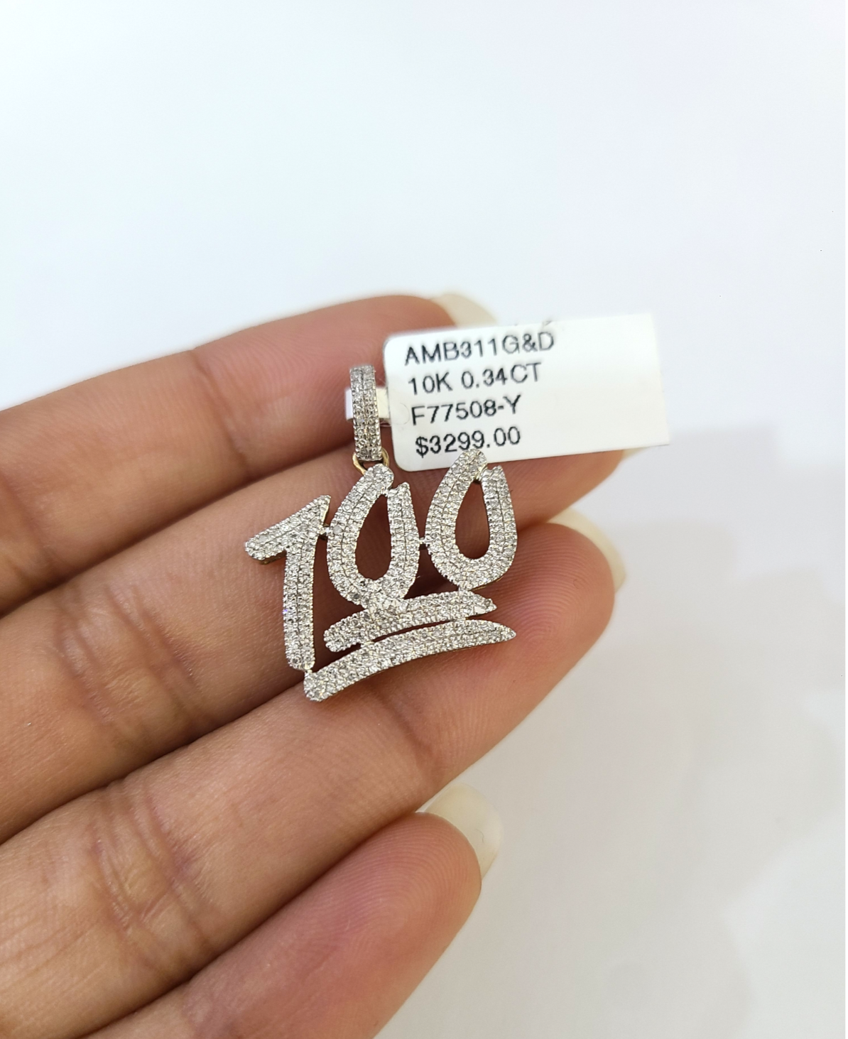Real 10k Yellow Gold 100 Diamond Charm Pendant 1'' inch Genuine 10kt – Goldenlinq index
