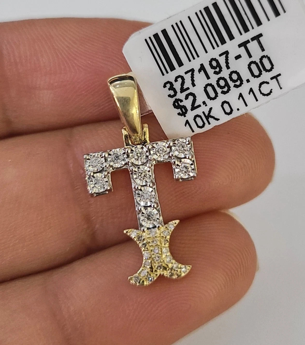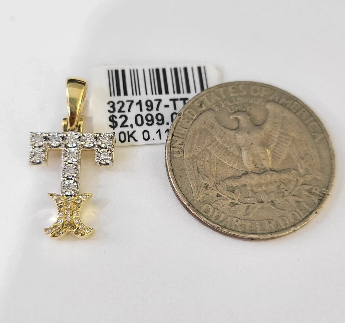 Real 10k Yellow Gold Diamond T Charm Pendant Natural Letter Initial Al – Goldenlinq index