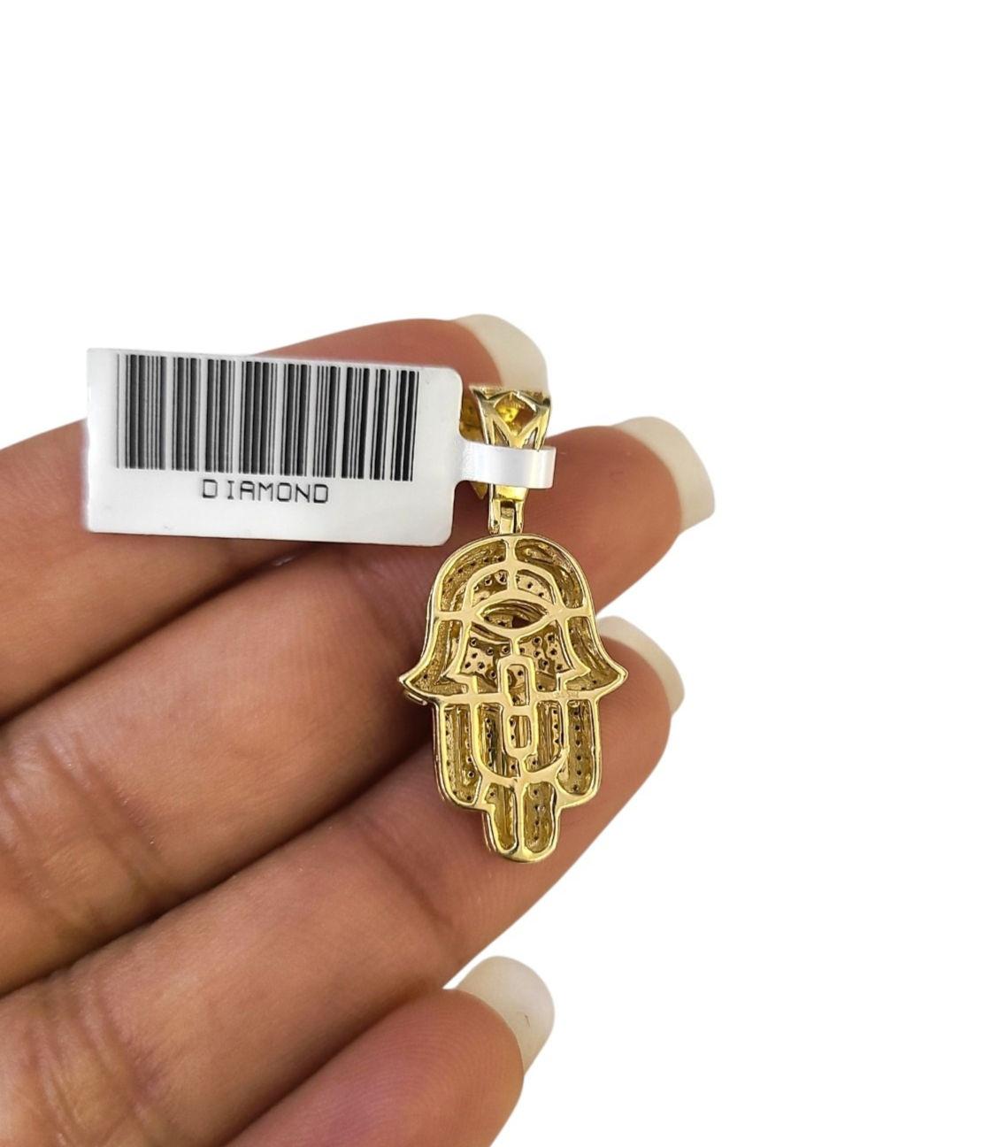 Real 10K Yellow Gold Hamza Hand Natural Diamond Charm Pendant | 1.2″ | – Goldenlinq index