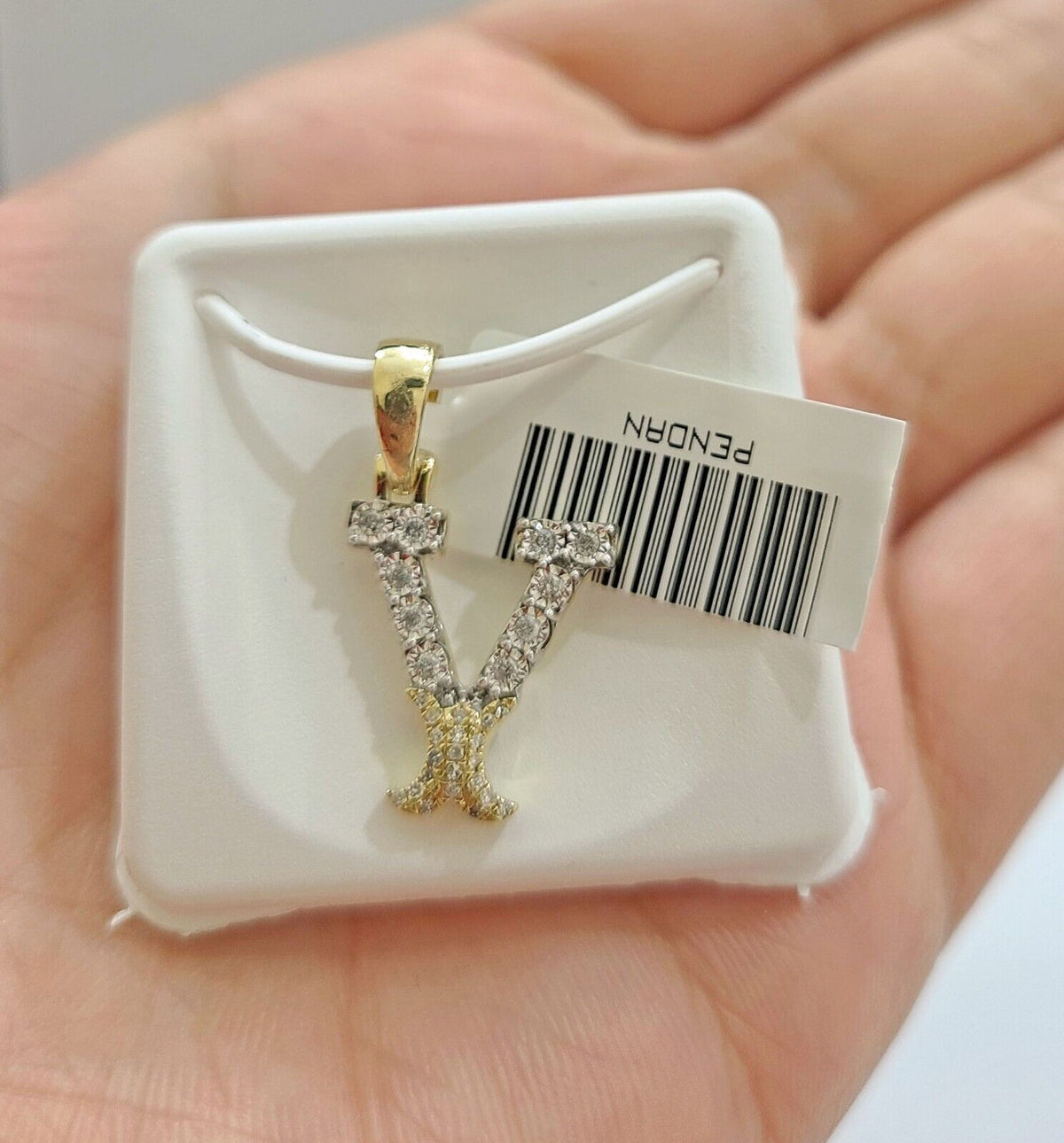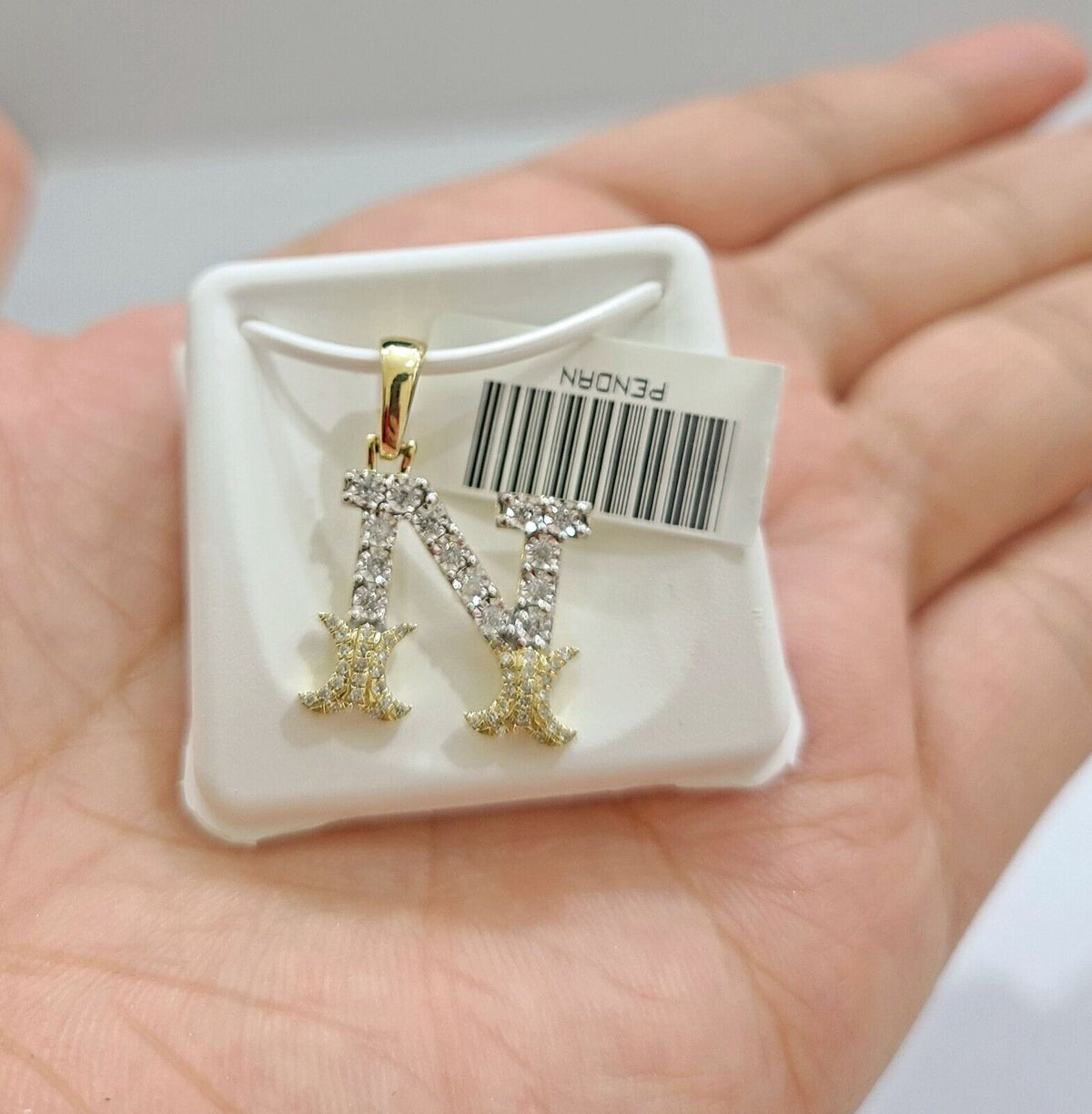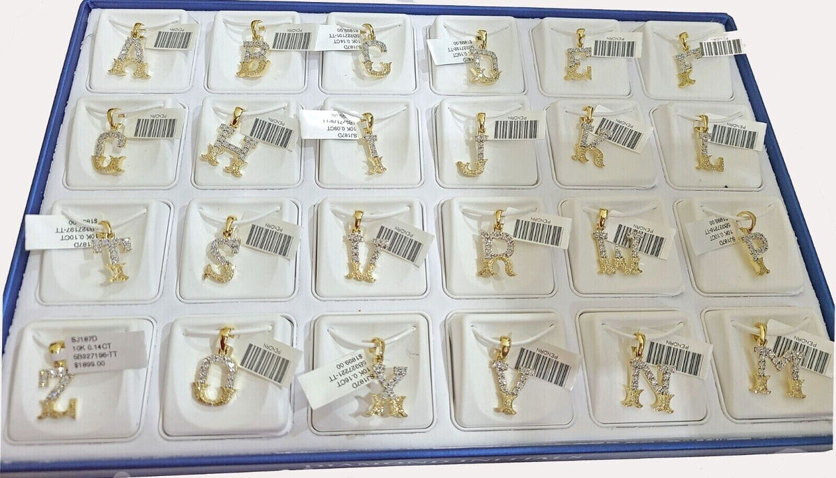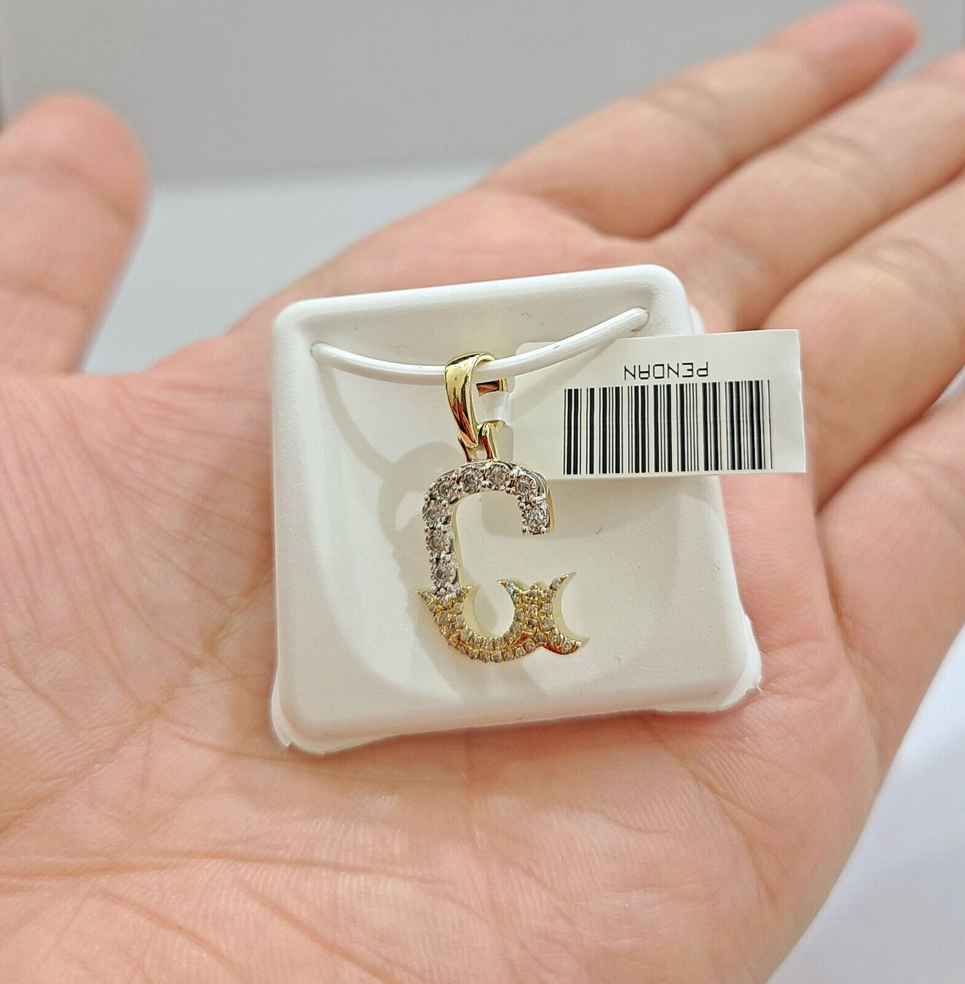 Real 10K Yellow Gold Initials Diamond Cut Charm A-Z Pendant Alphabets