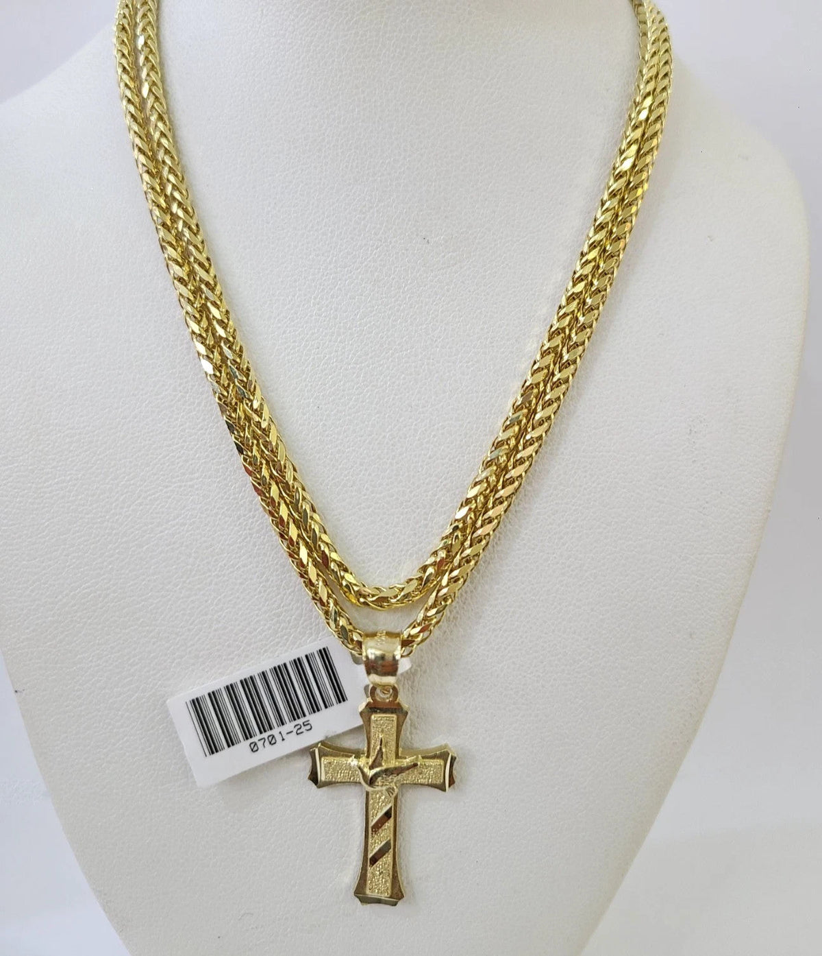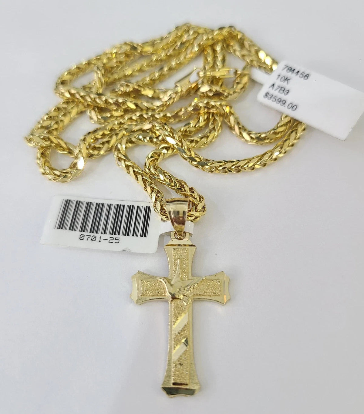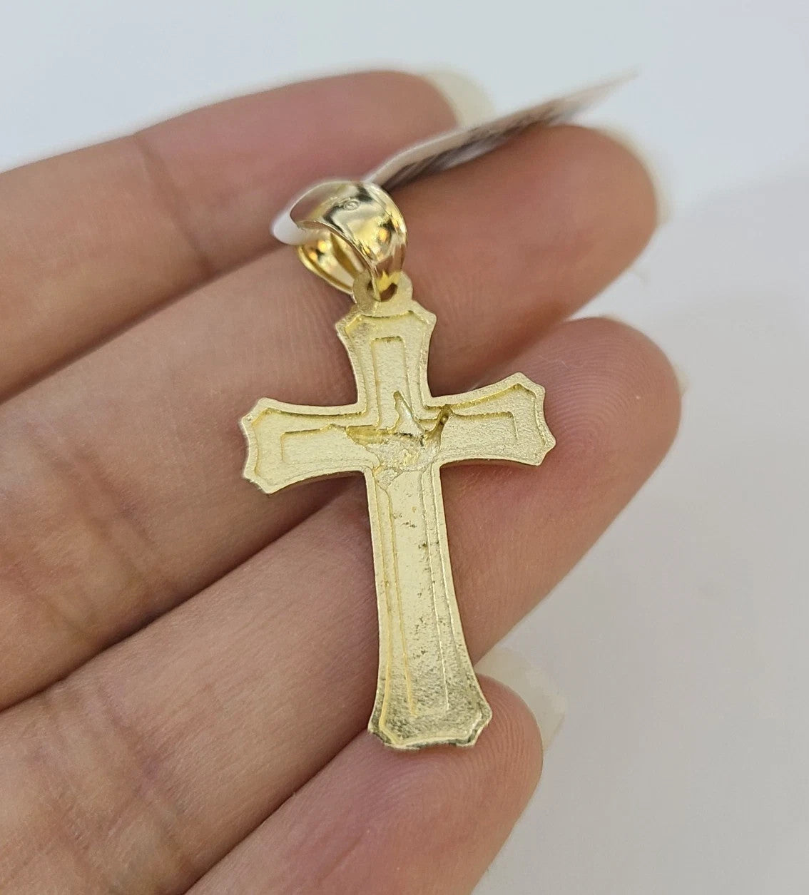 REAL 10k Yellow Gold Palm Chain Jesus Cross Pendant Charm 3mm Necklace