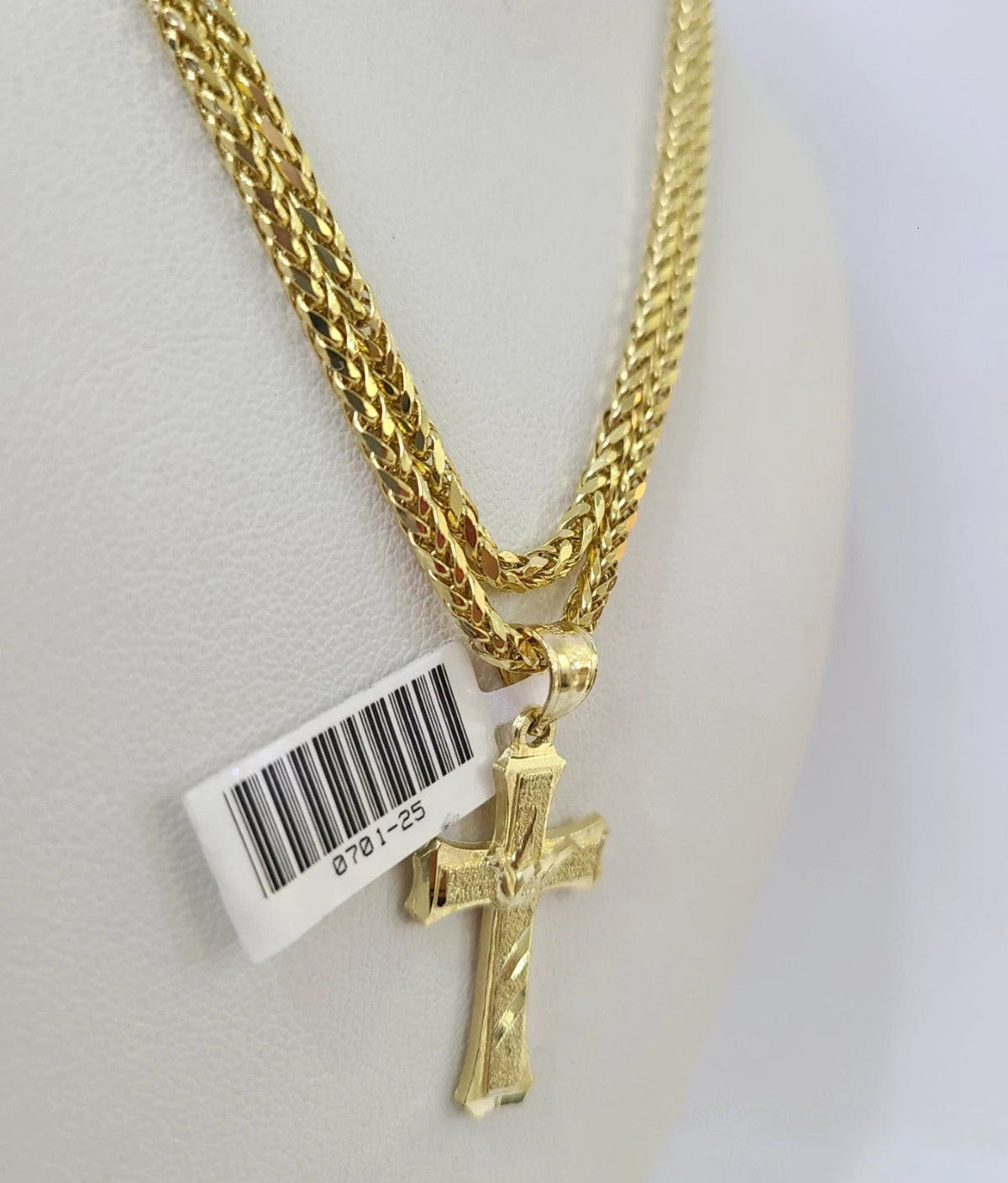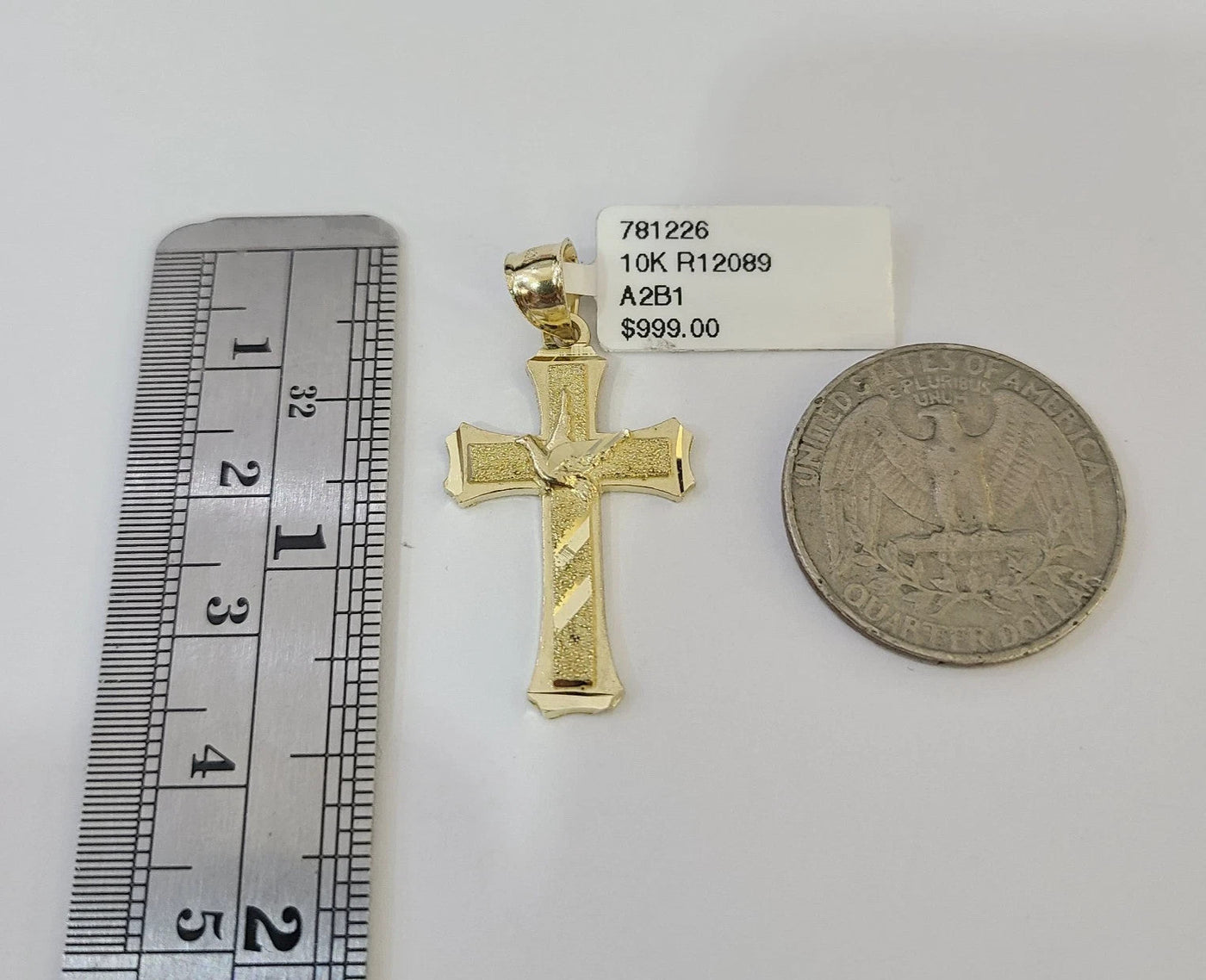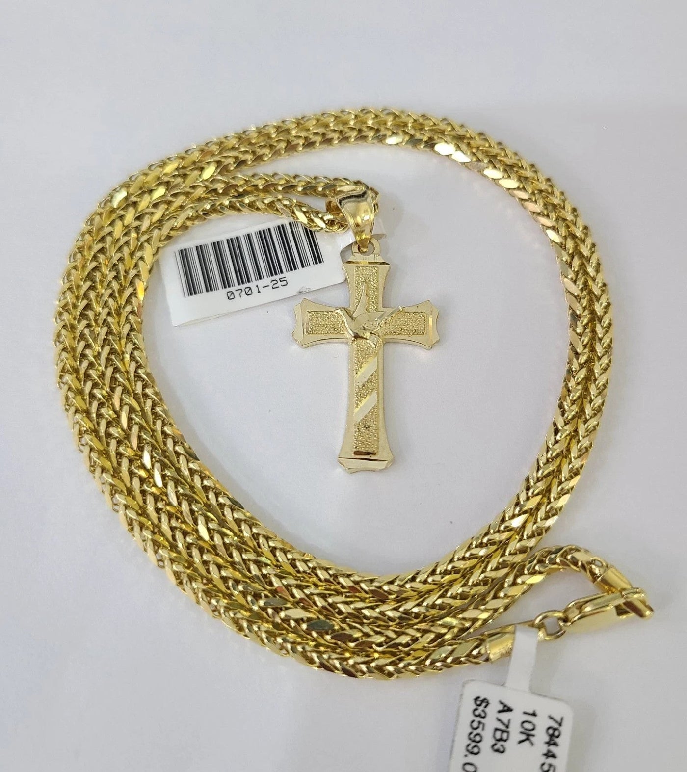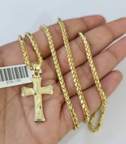 REAL 10k Yellow Gold Palm Chain Jesus Cross Pendant Charm 3mm Necklace