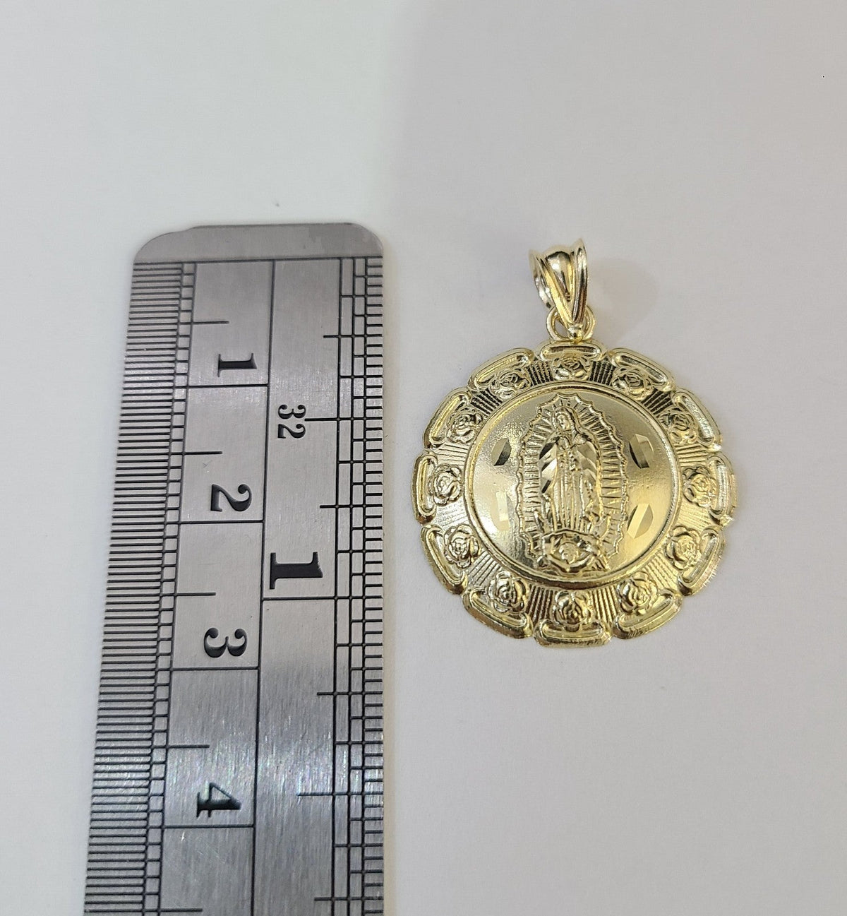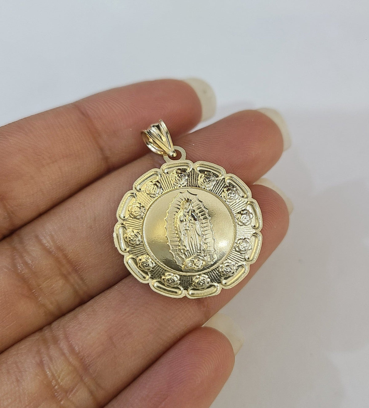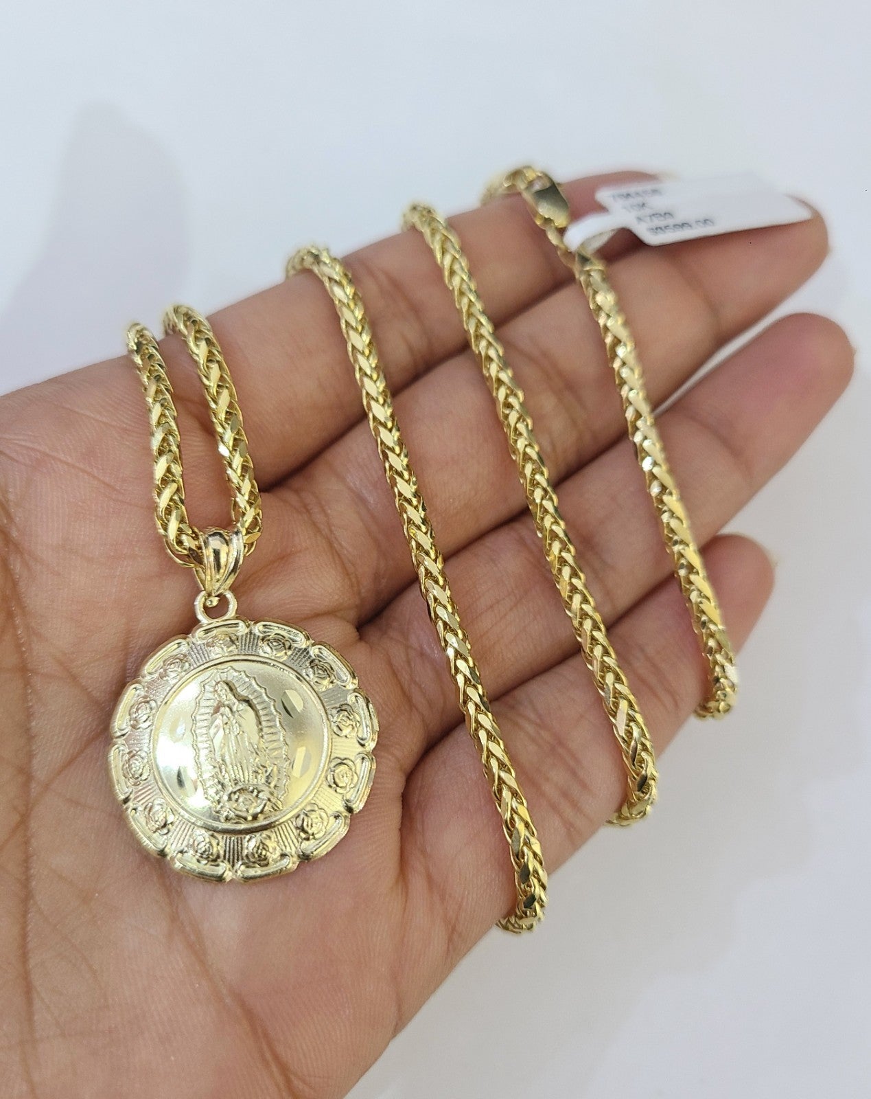 REAL 10k Yellow Gold Palm Chain Virgin Mary Pendant Charm 3mm Necklace
