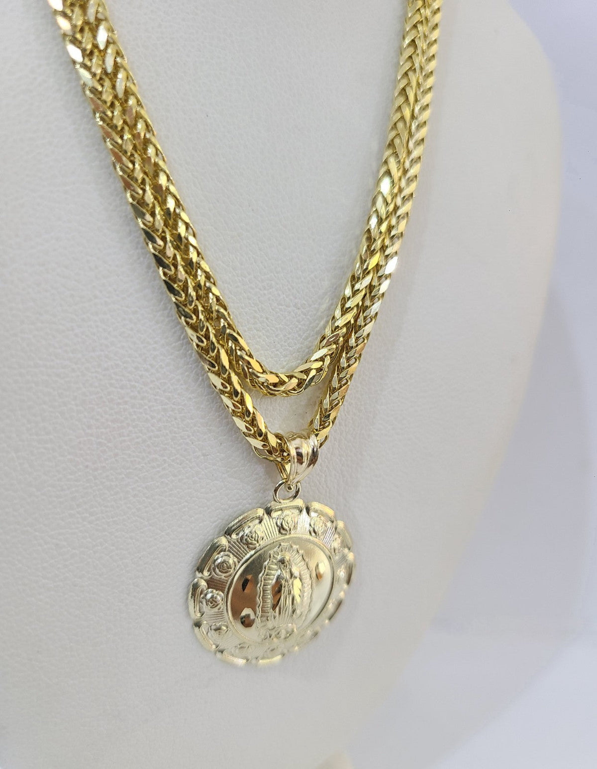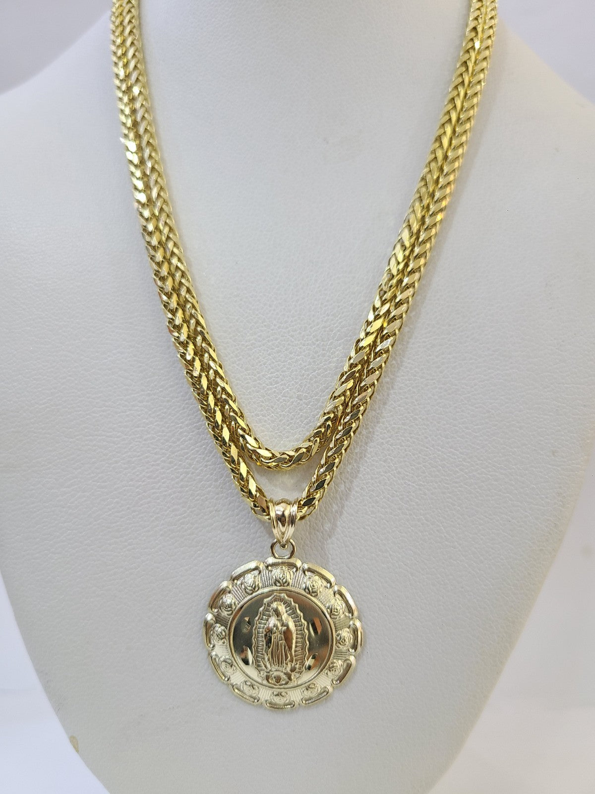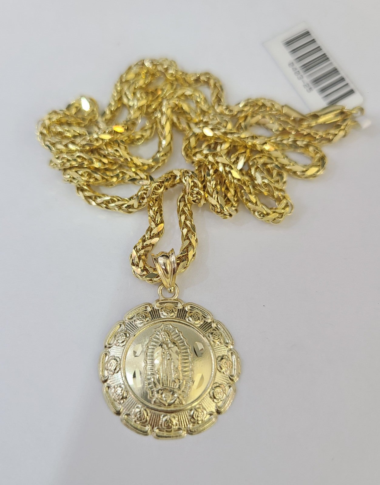 REAL 10k Yellow Gold Palm Chain Virgin Mary Pendant Charm 3mm Necklace