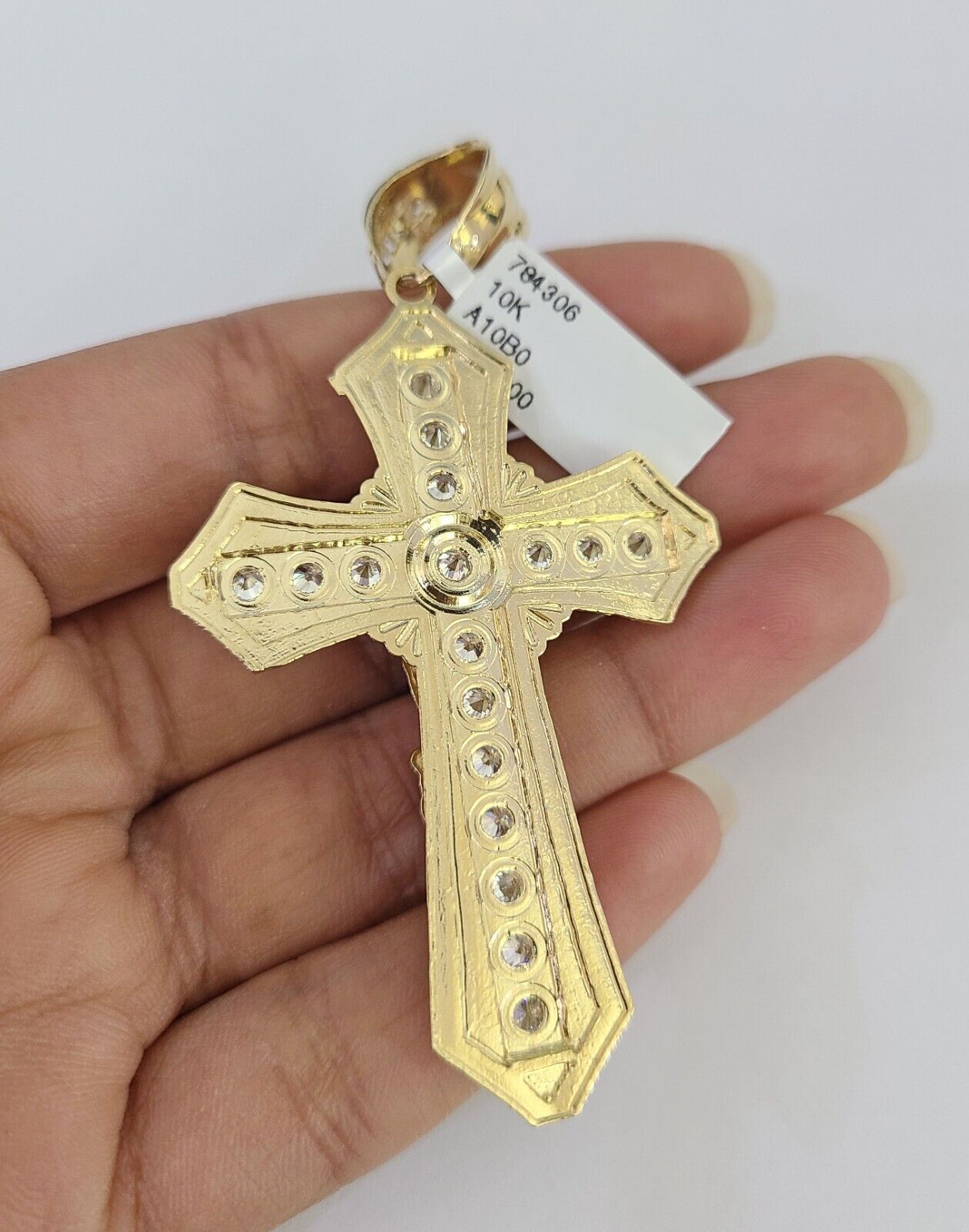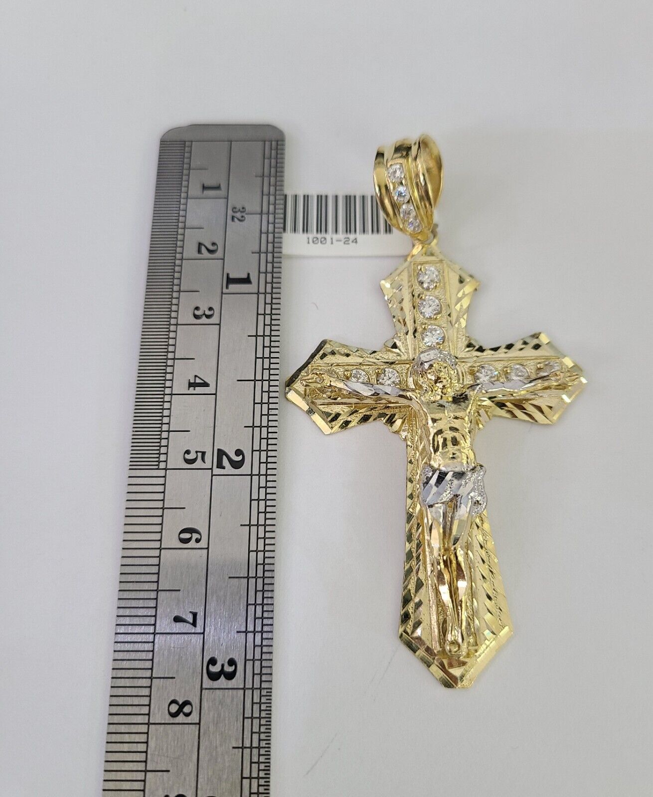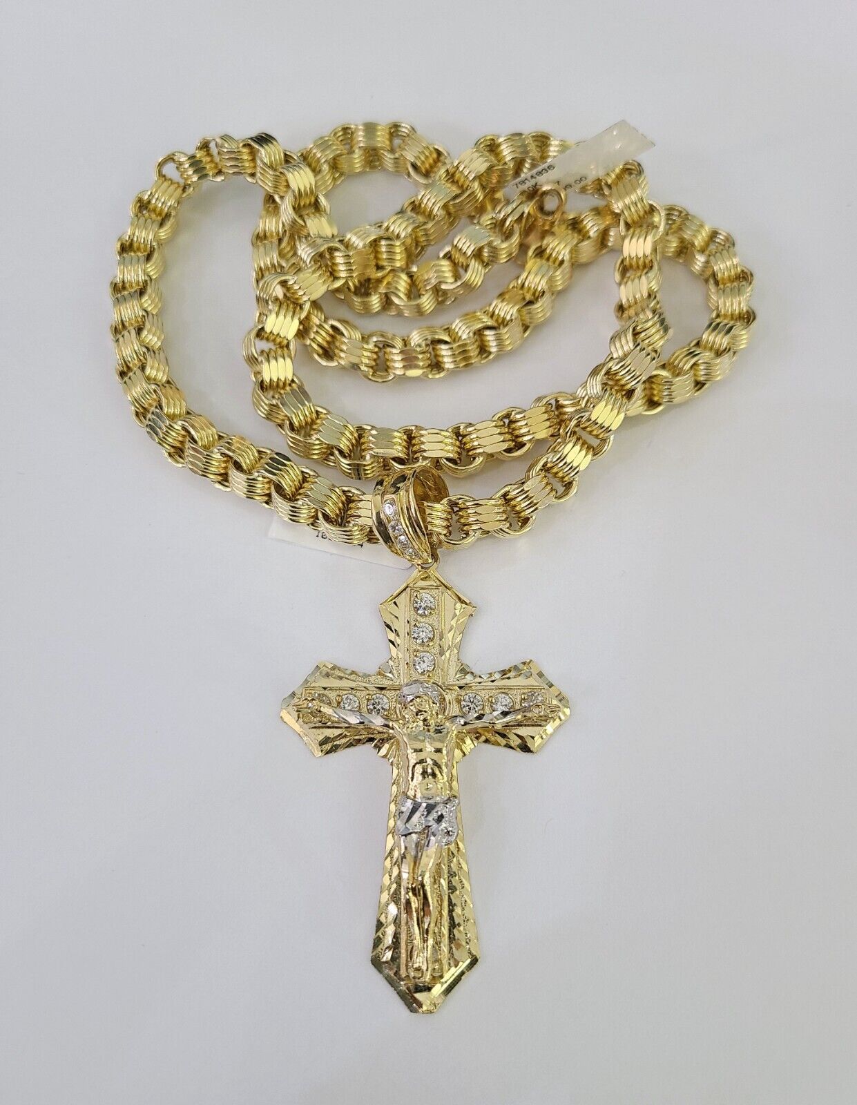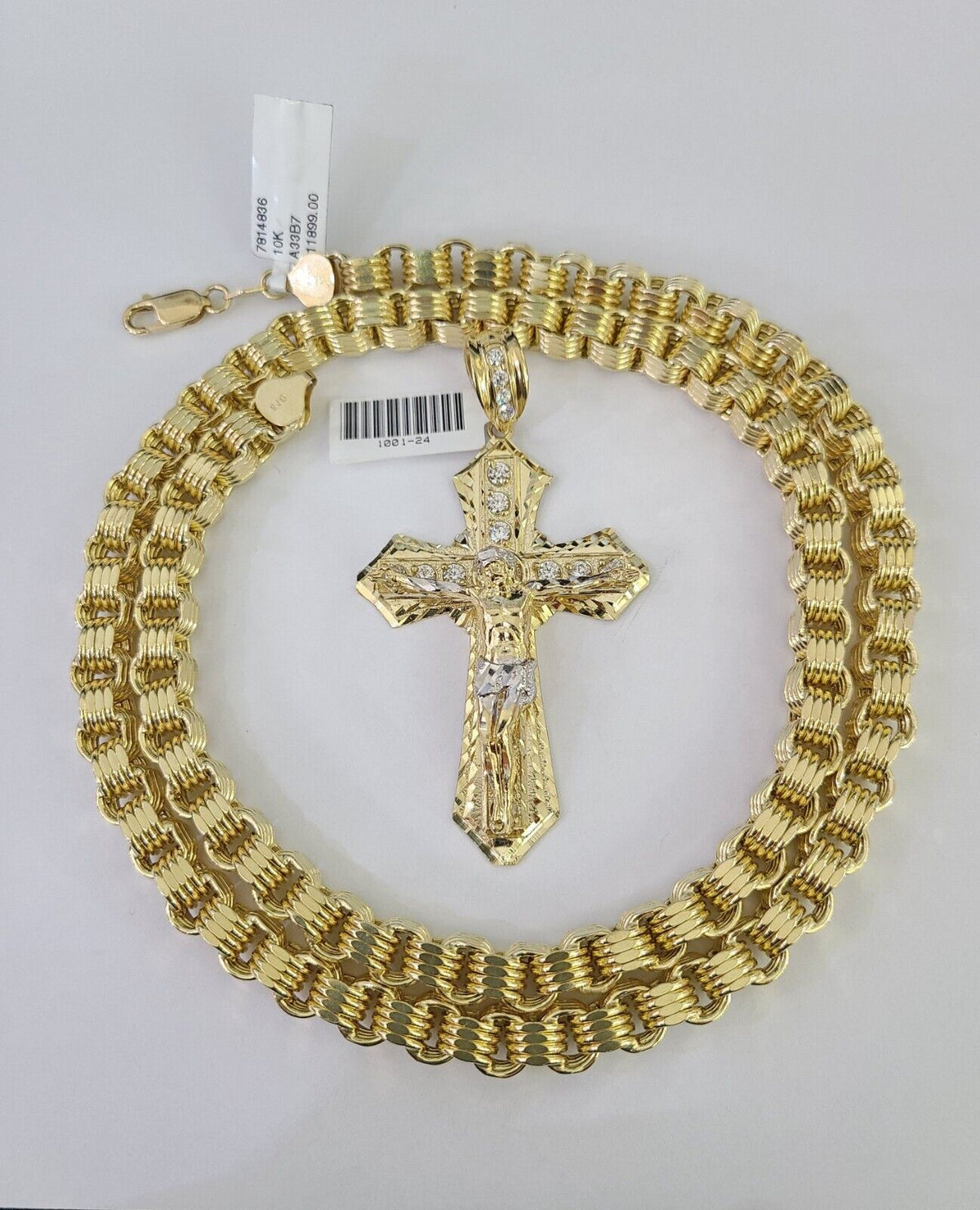 10k Gold Byzantine Chain Necklace Jesus Cross Pendant Charm SET 20"-30" 7.5mm - 22 inch with charm