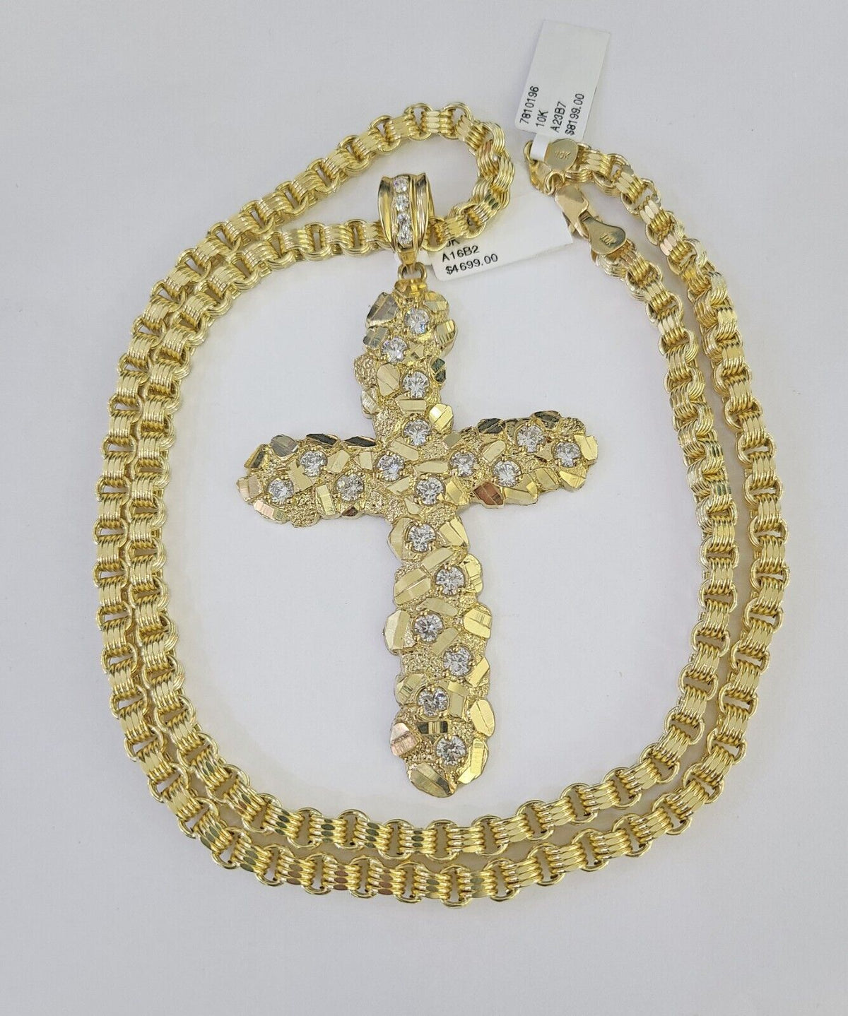 10k Gold Byzantine Necklace Jesus Cross Charm 18-30 inches 5mm SET Chain Pendant