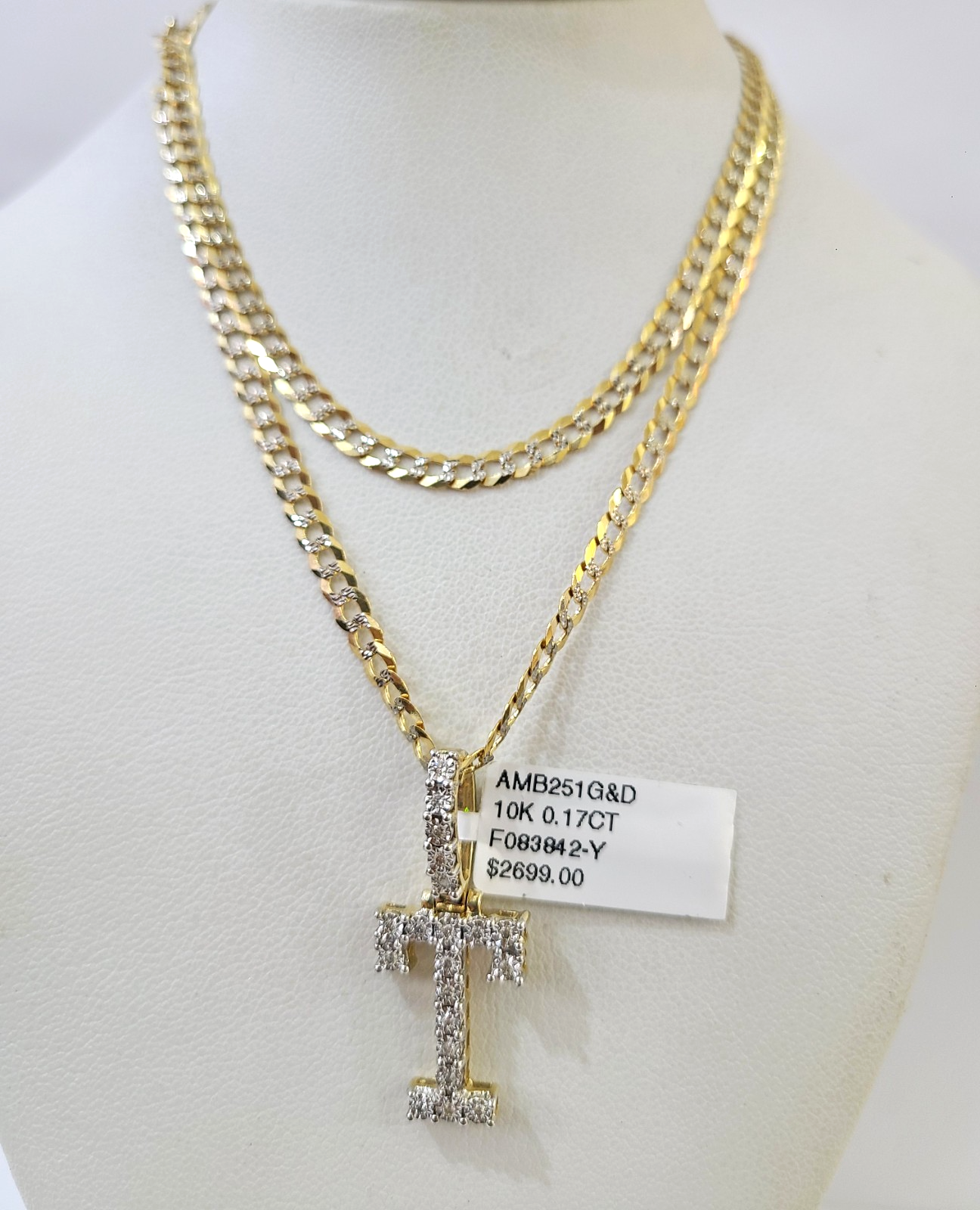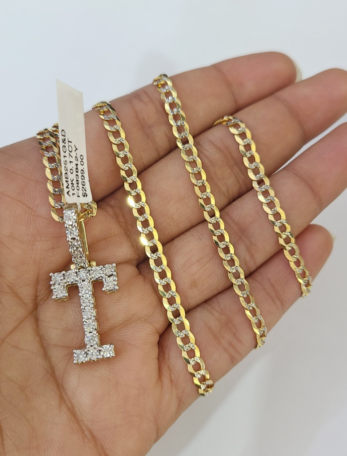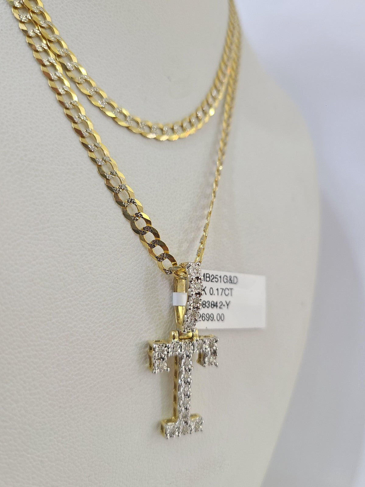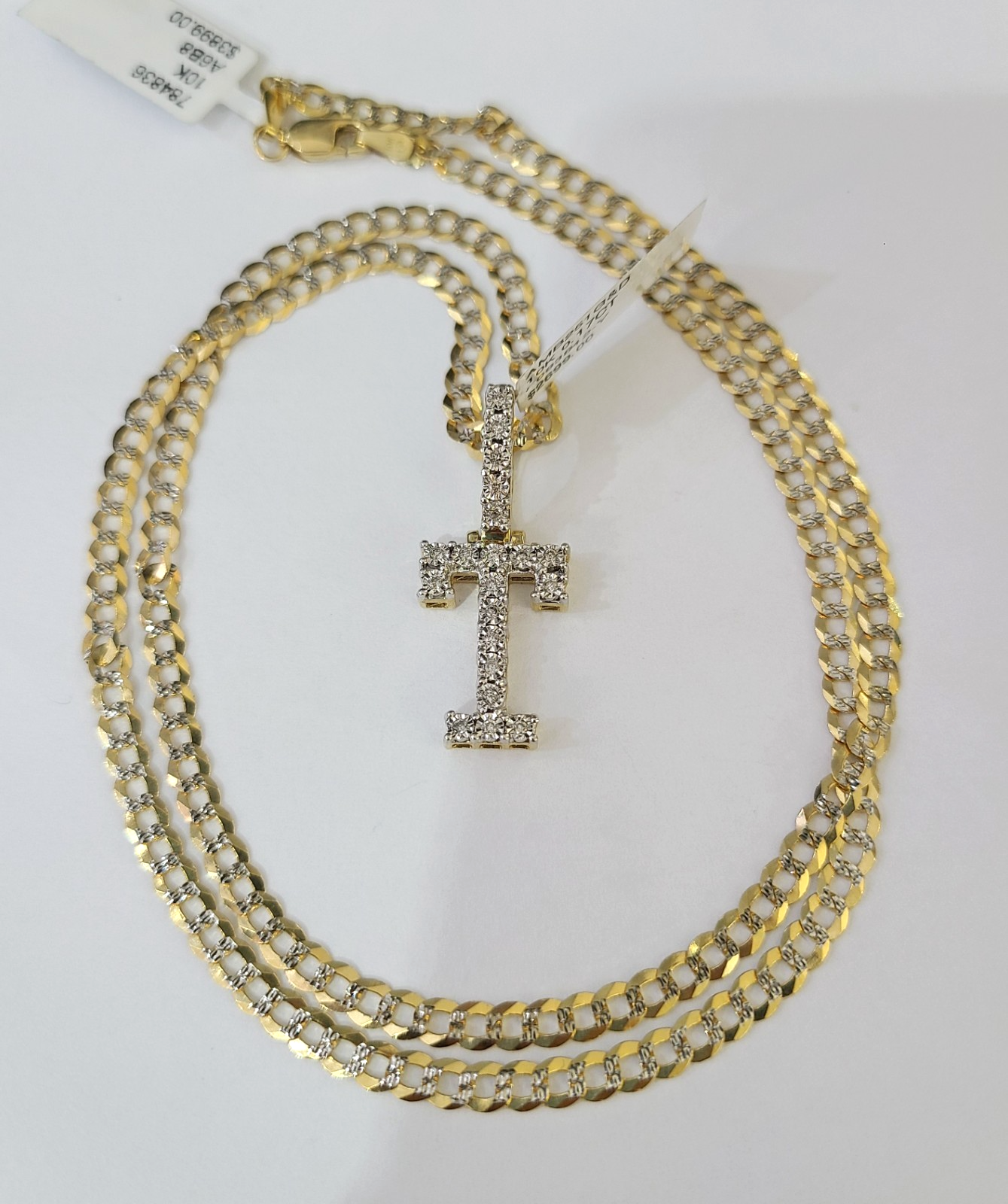 10k Gold Chain Necklace T Diamond Initial Pendant Set Cuban Curb 3mm 20"-30" - 20 Inch with Chain