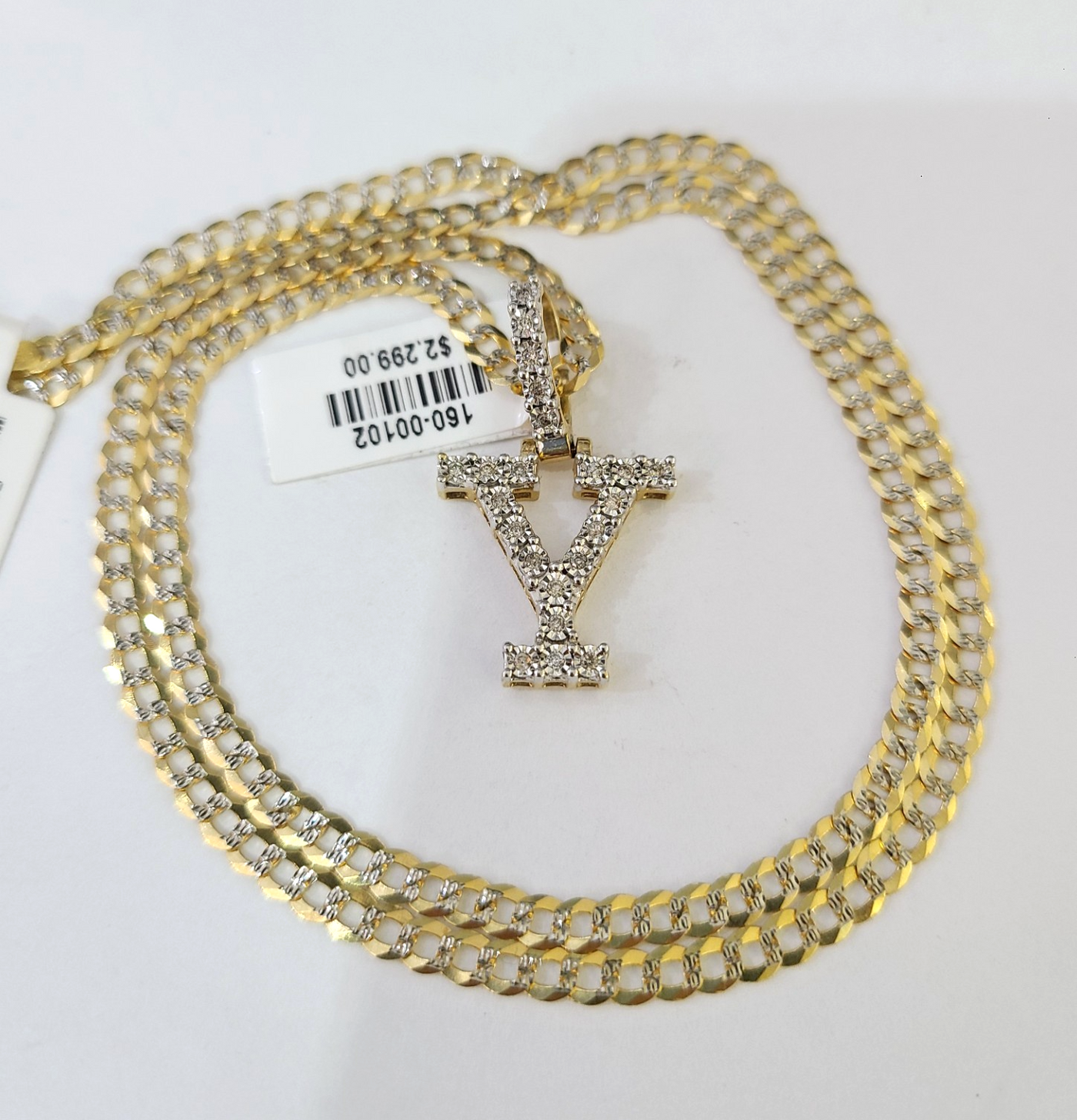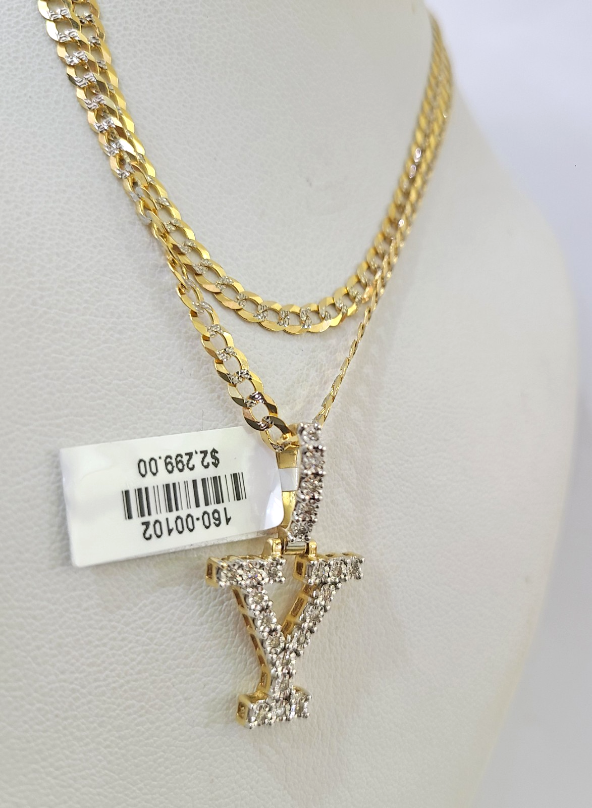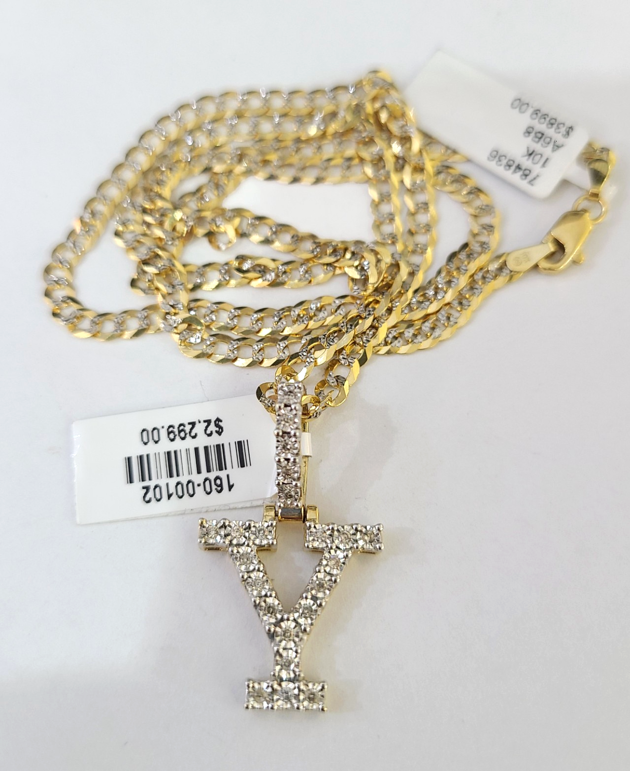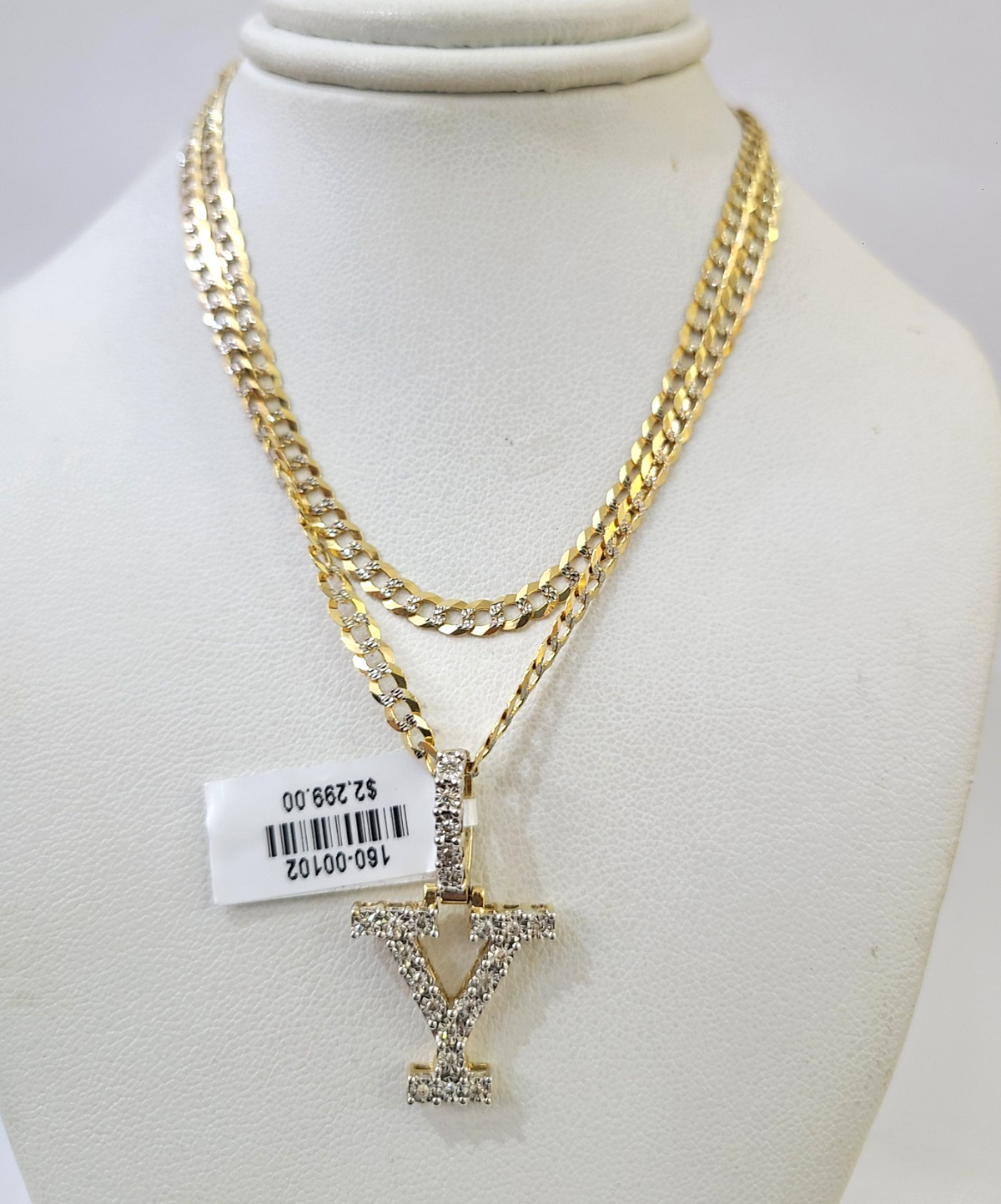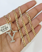 10k Gold Chain Necklace Y Diamond Initial Pendant Set Cuban Curb 3mm 20"-30"