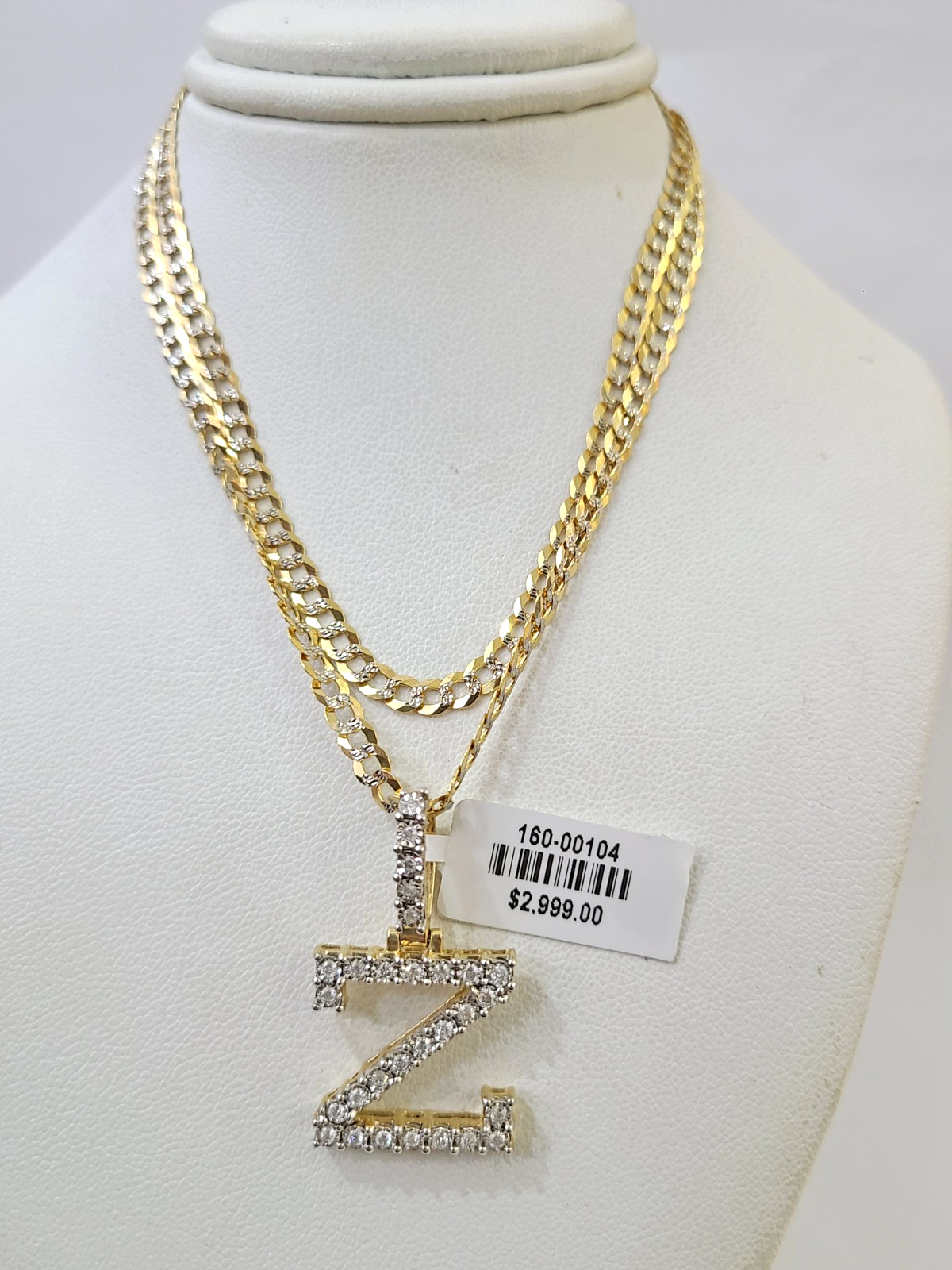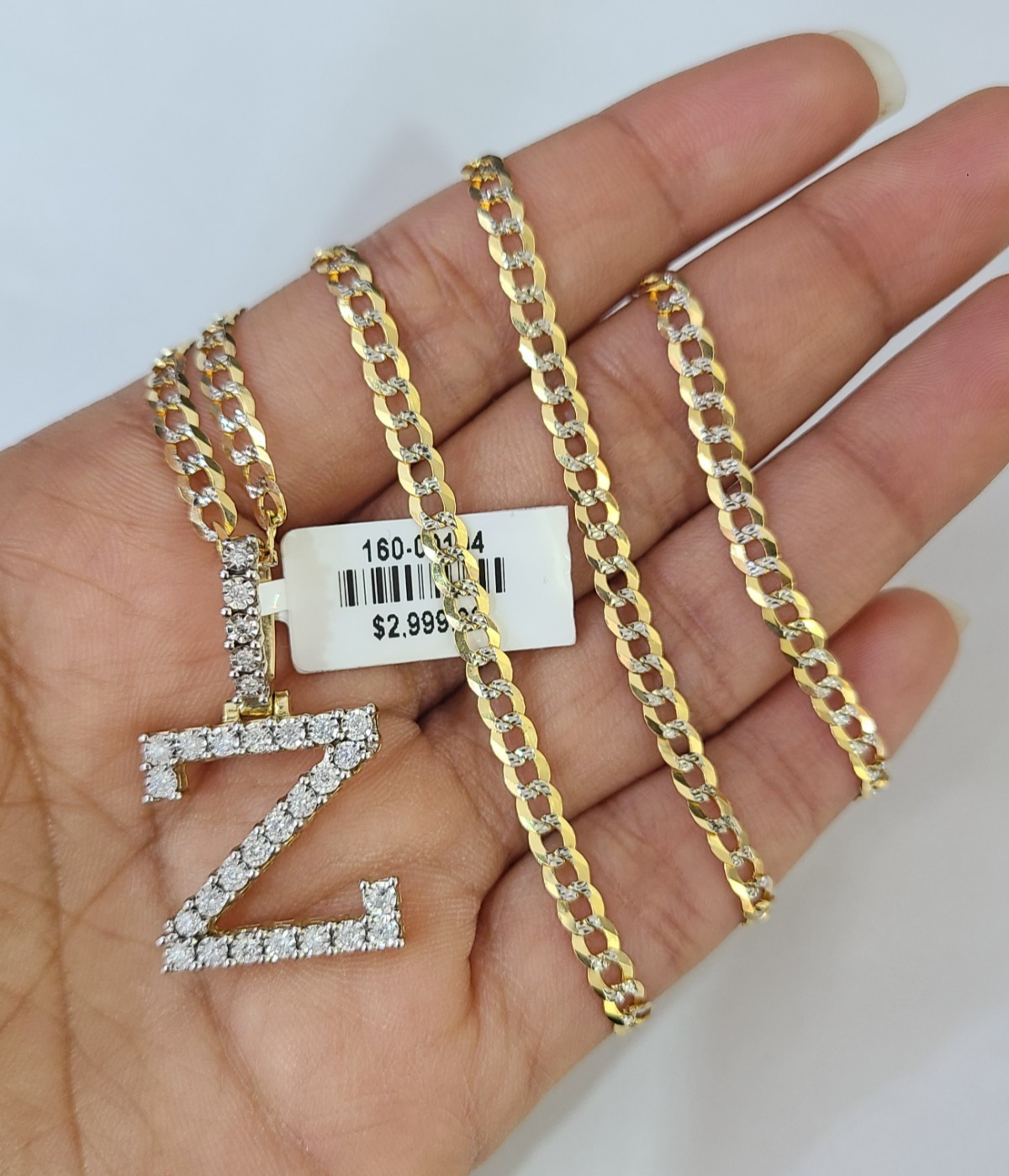 10k Gold Chain Necklace Z Diamond Initial Pendant Set Cuban Curb 3mm 2 – Goldenlinq index