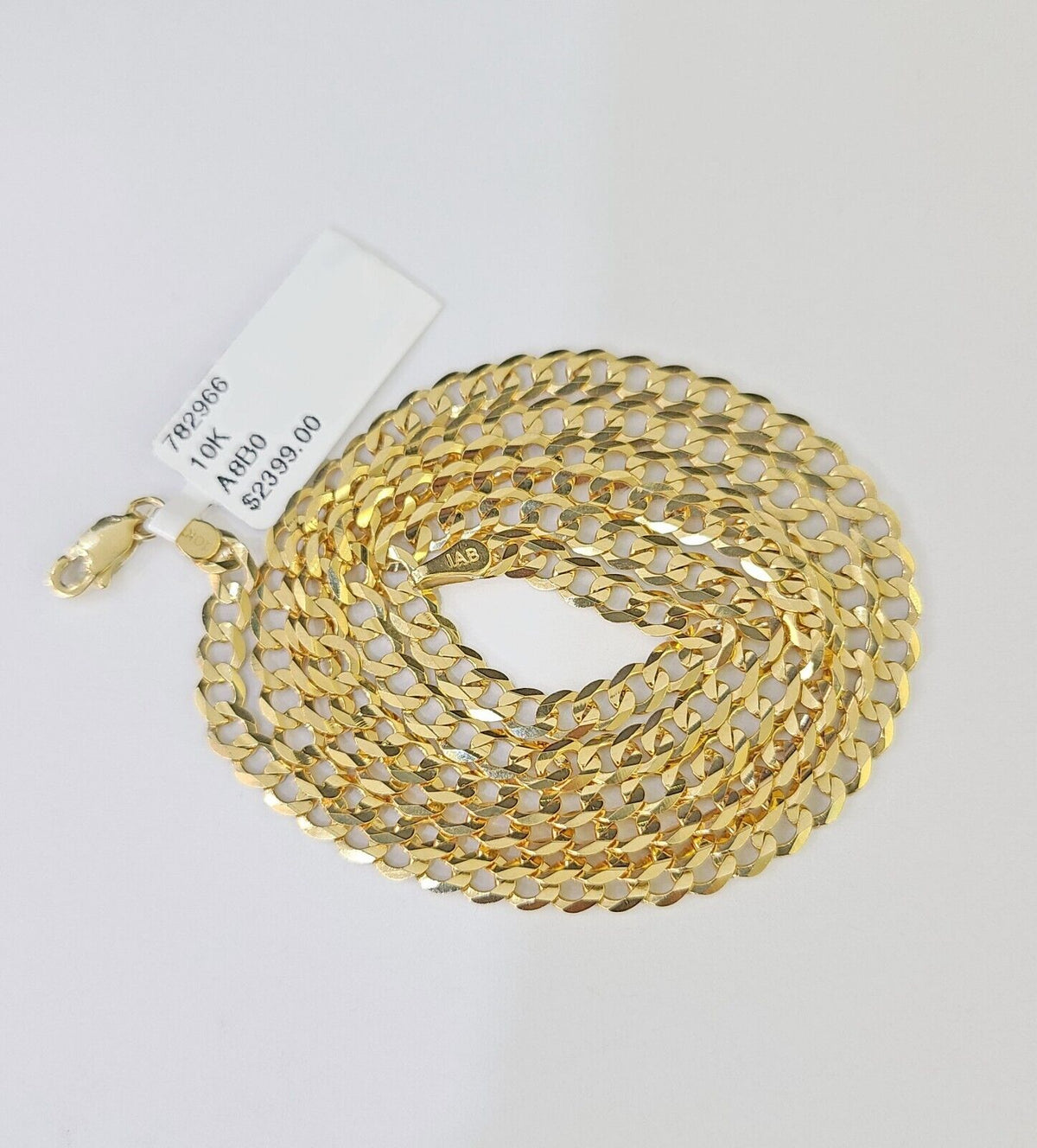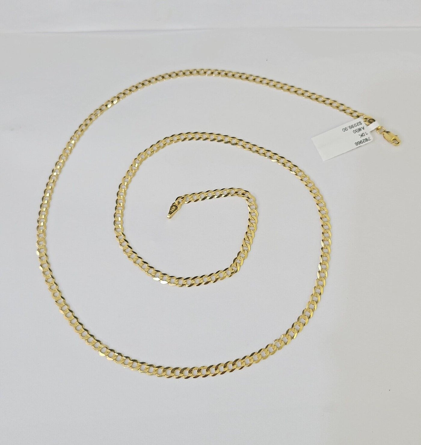 10k Gold Cuban Curb Link chain 4mm 24 Inch Real Yellow Gold Real Genuine