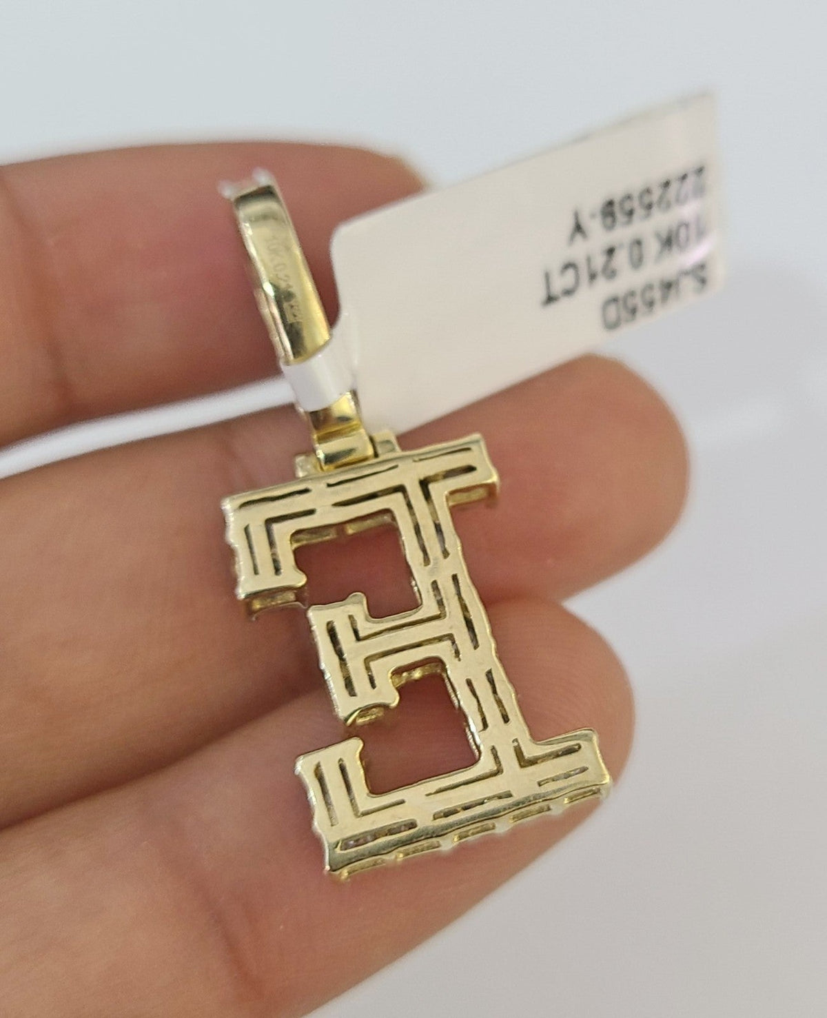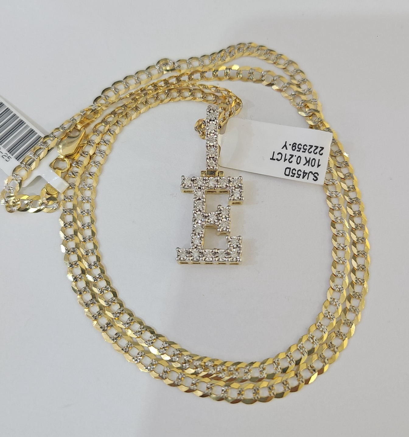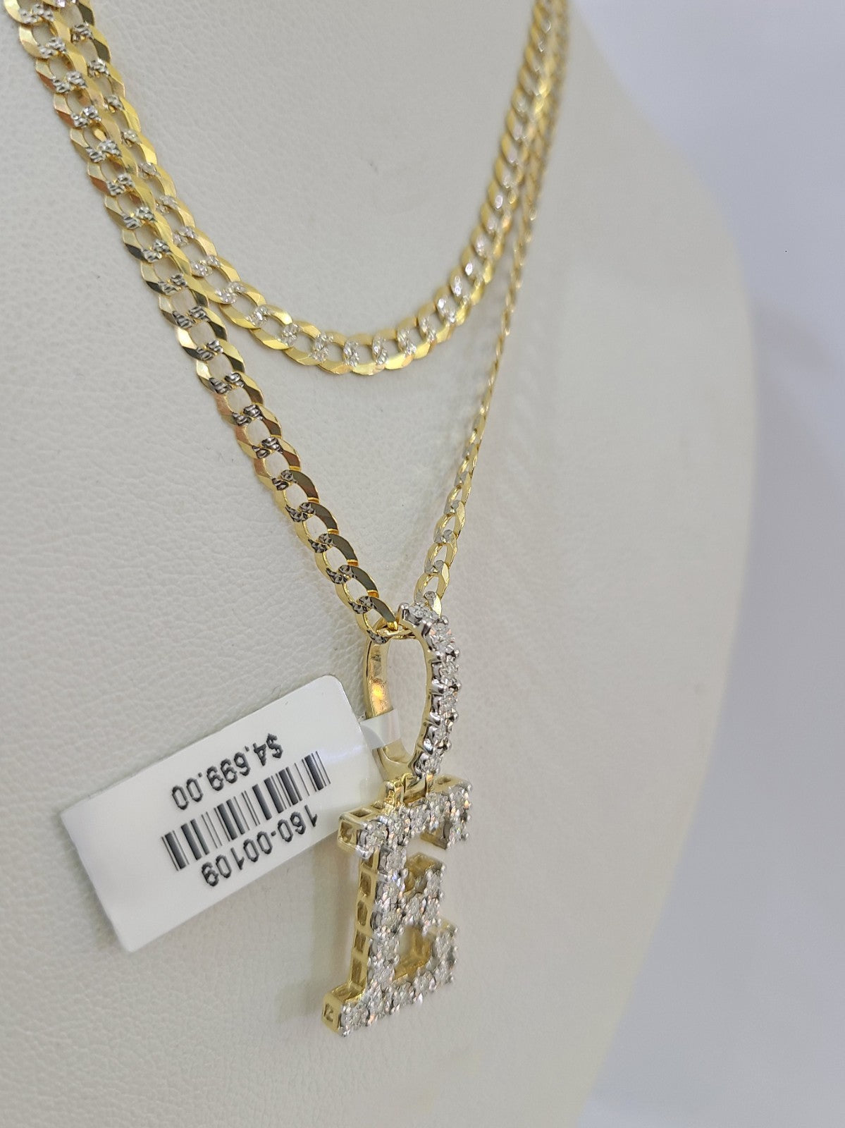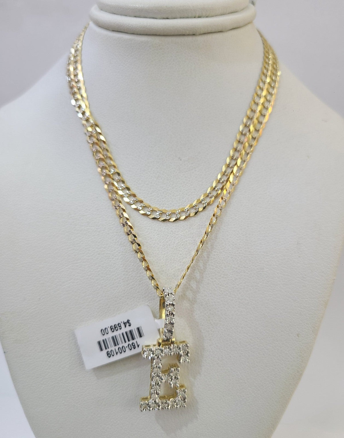 10k Gold Figaro Chain E Diamond Initial Pendant 3mm 20-28 inch SET Necklace