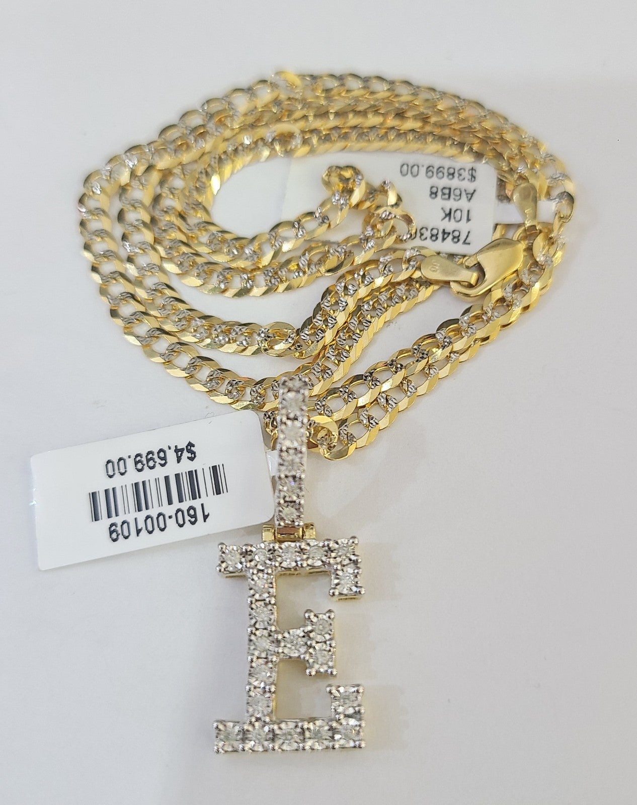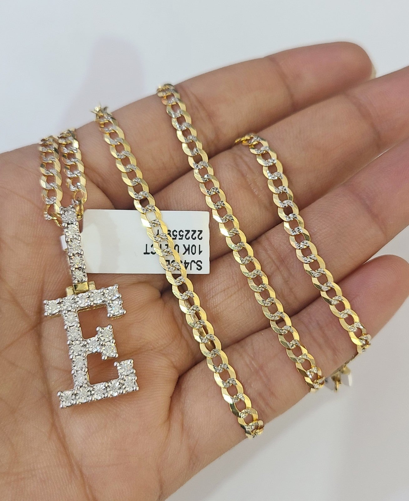 10k Gold Figaro Chain E Diamond Initial Pendant 3mm 20-28 inch SET Nec – Goldenlinq index