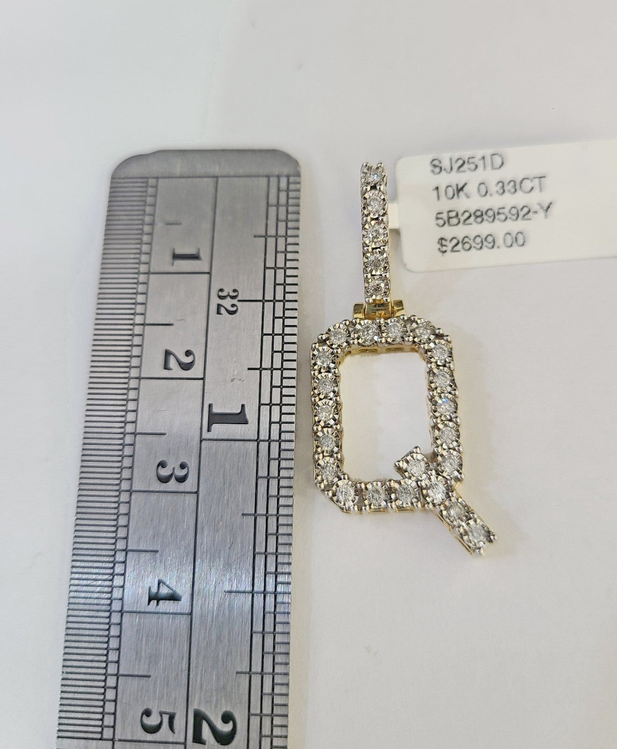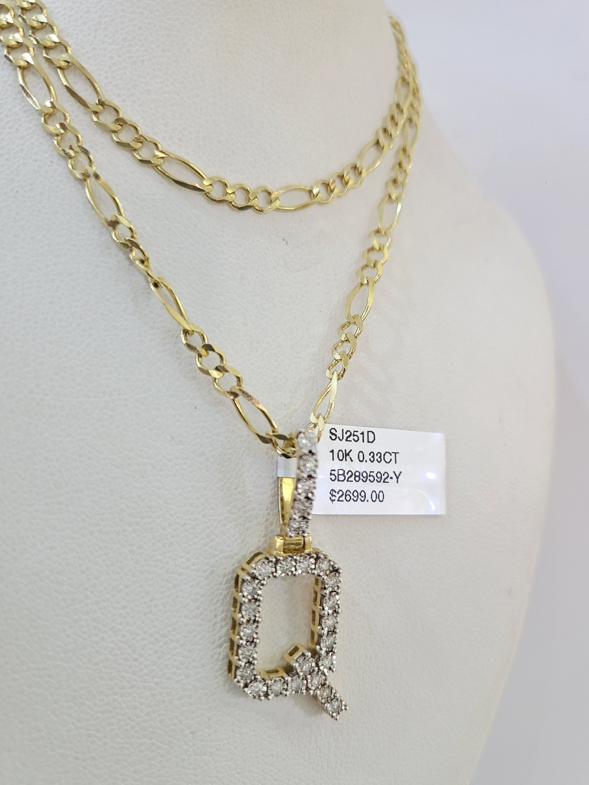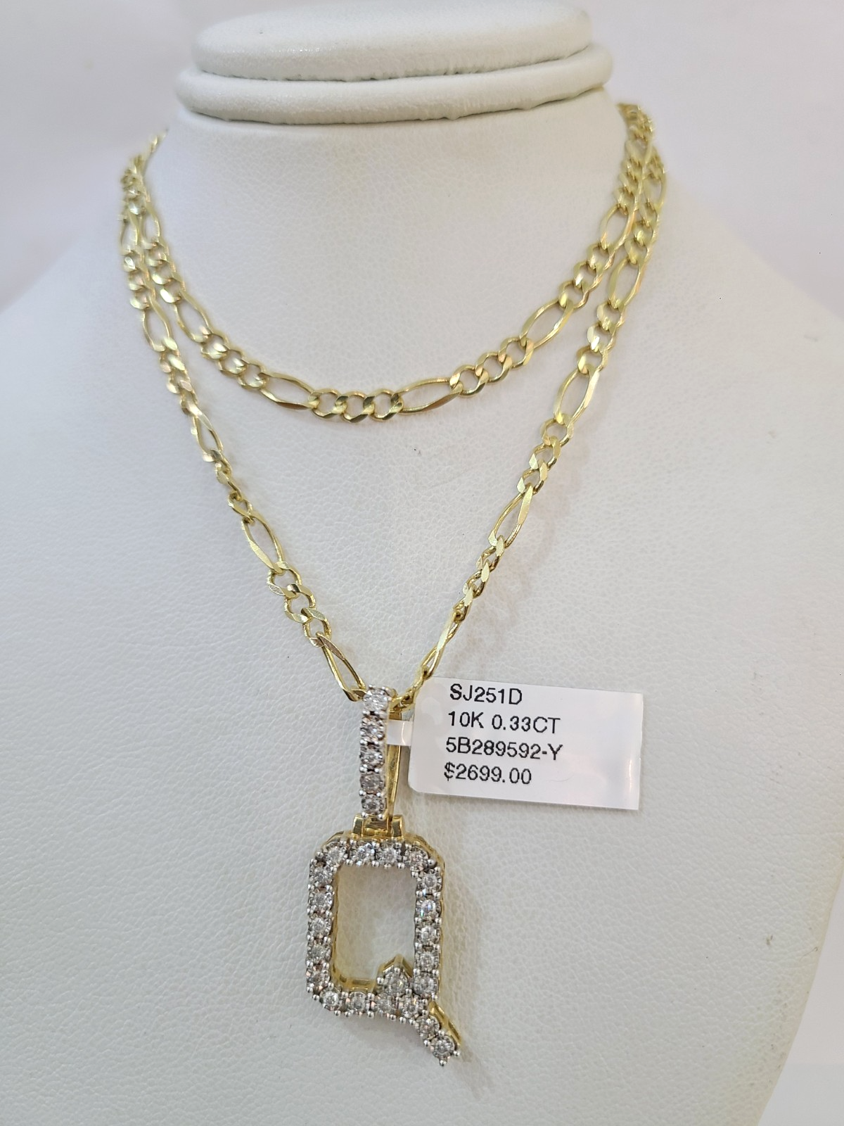 10k Gold Figaro Chain Q Diamond Initial Pendant 3mm 20-28 inch SET Necklace - 20 Inch with Chain
