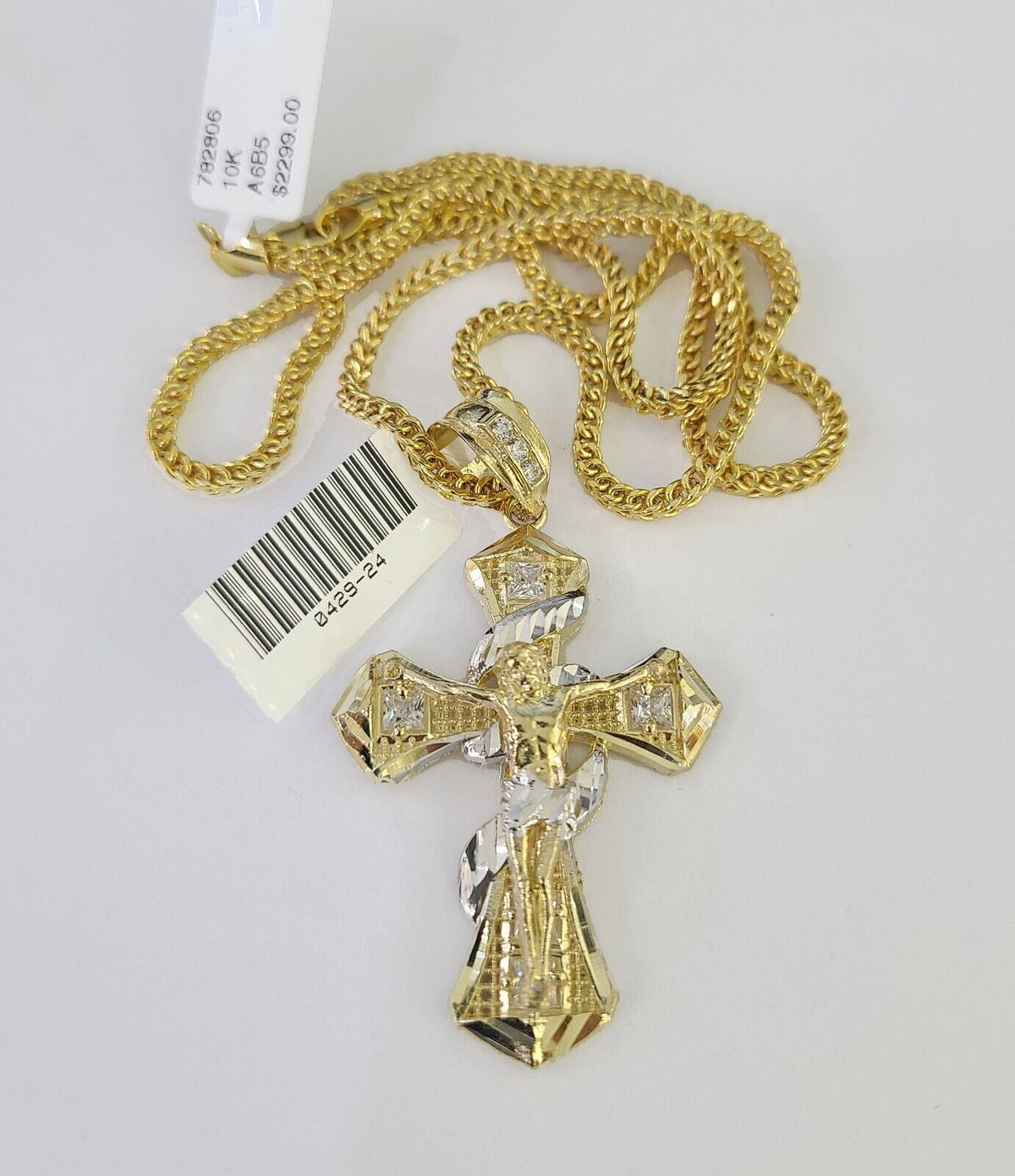 10K Gold Franco Chain Jesus Cross Charm Pendant 20-26 inches 2.5mm REAL Yellow - 20" chain with charm