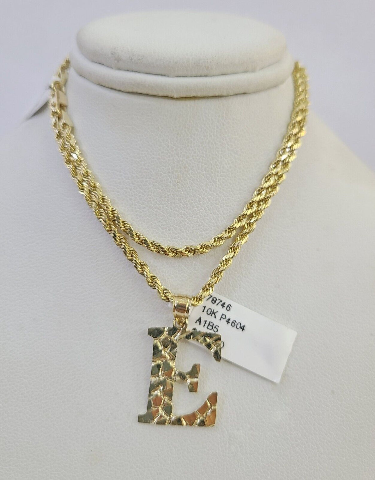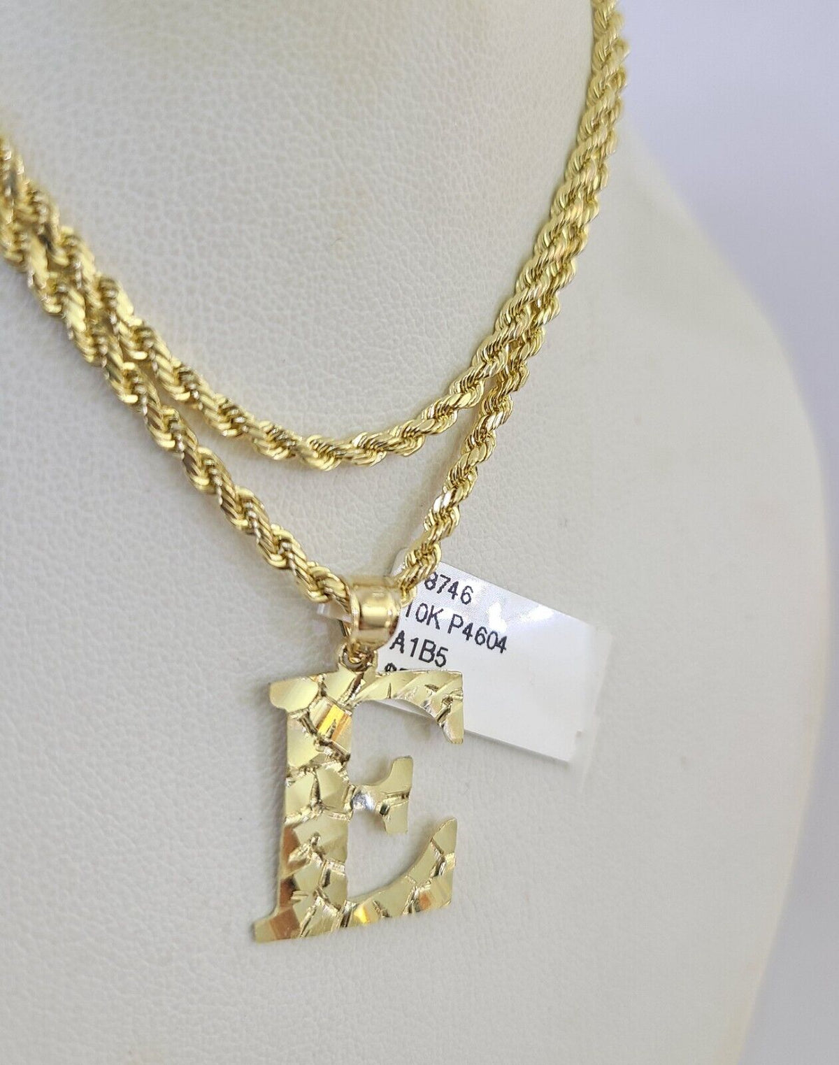 10k Gold Initial E Charm Rope Chain 16"-26" 2.5mm SET Necklace Alphabet Pendant - A / 16 inches