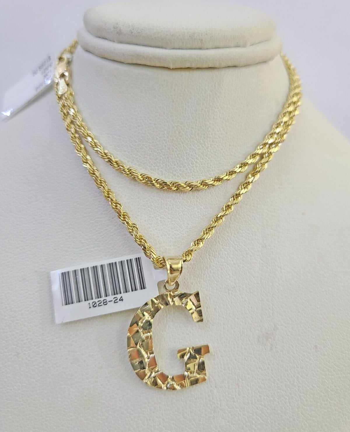 10k Gold Initial G Charm Rope Chain 16"-26" 2.5mm SET Necklace Alphabet Pendant - A / 16 inches