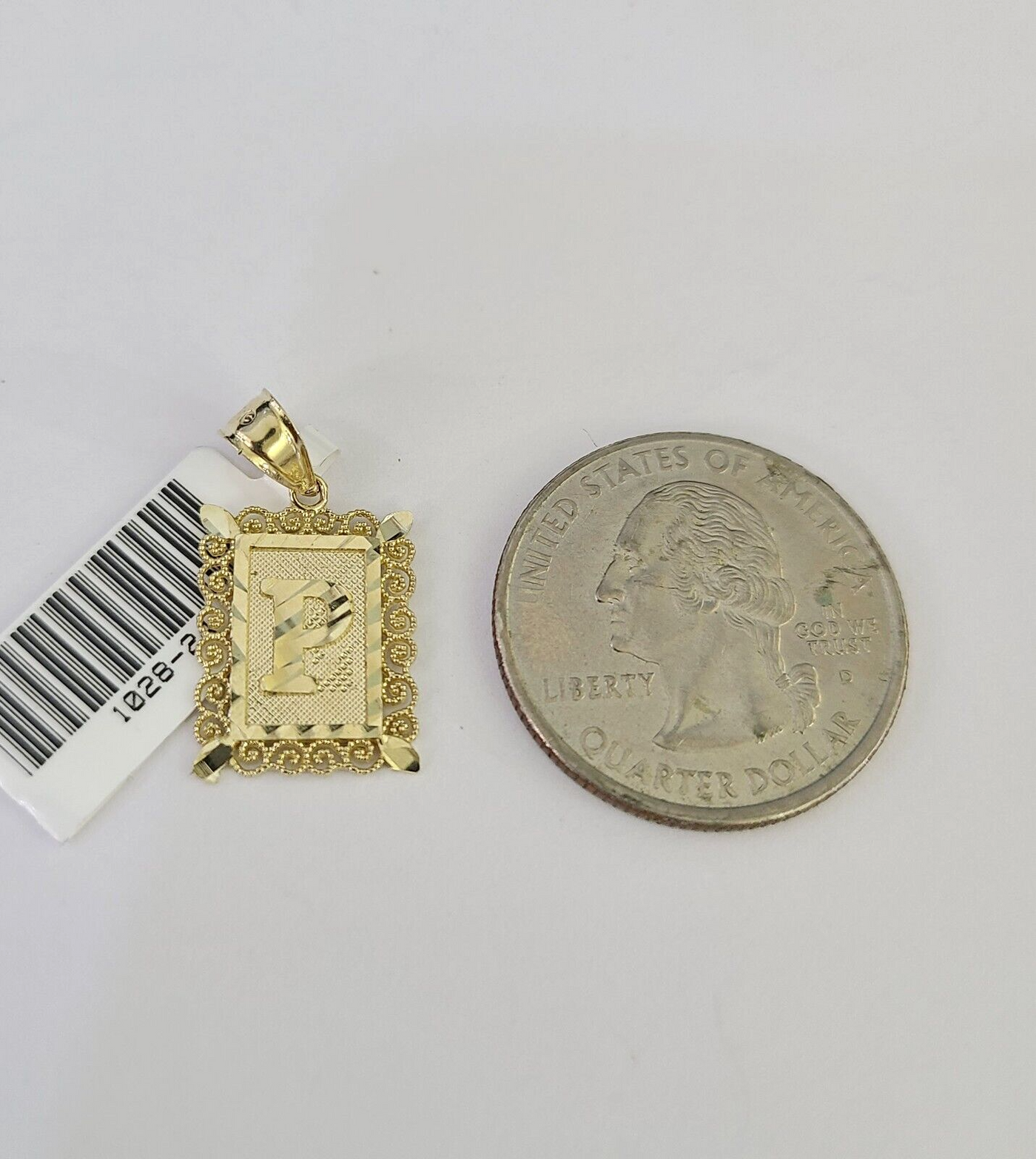 10k Gold Initial P Charm Rope Chain 16"-26" 2.5mm SET Necklace Alphabet Pendant