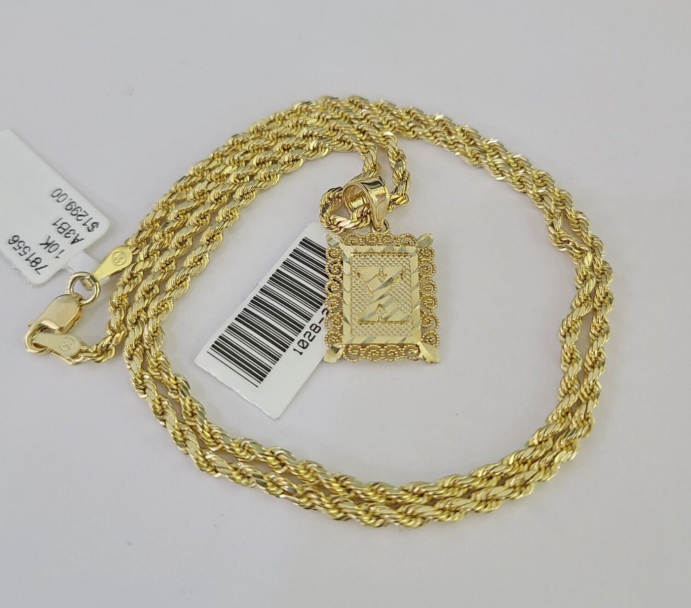 10k Gold Initial X Charm Rope Chain 16"-26" 2.5mm SET Necklace Alphabet Pendant