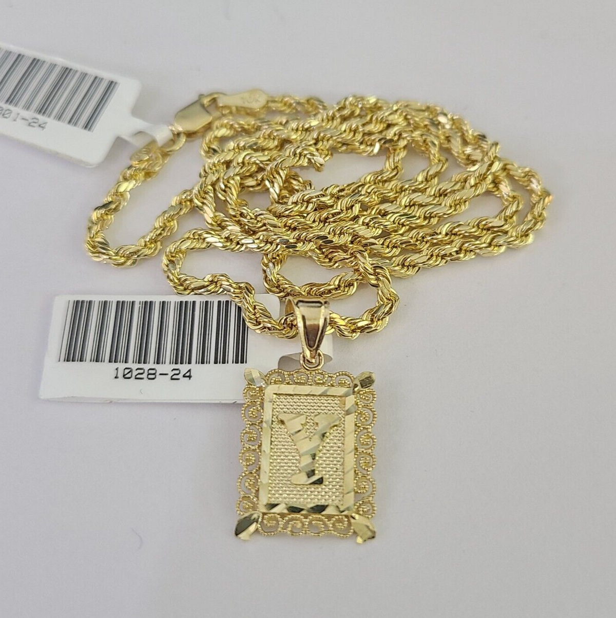 10k Gold Initial Y Charm Rope Chain 16"-26" 2.5mm SET Necklace Alphabet Pendant