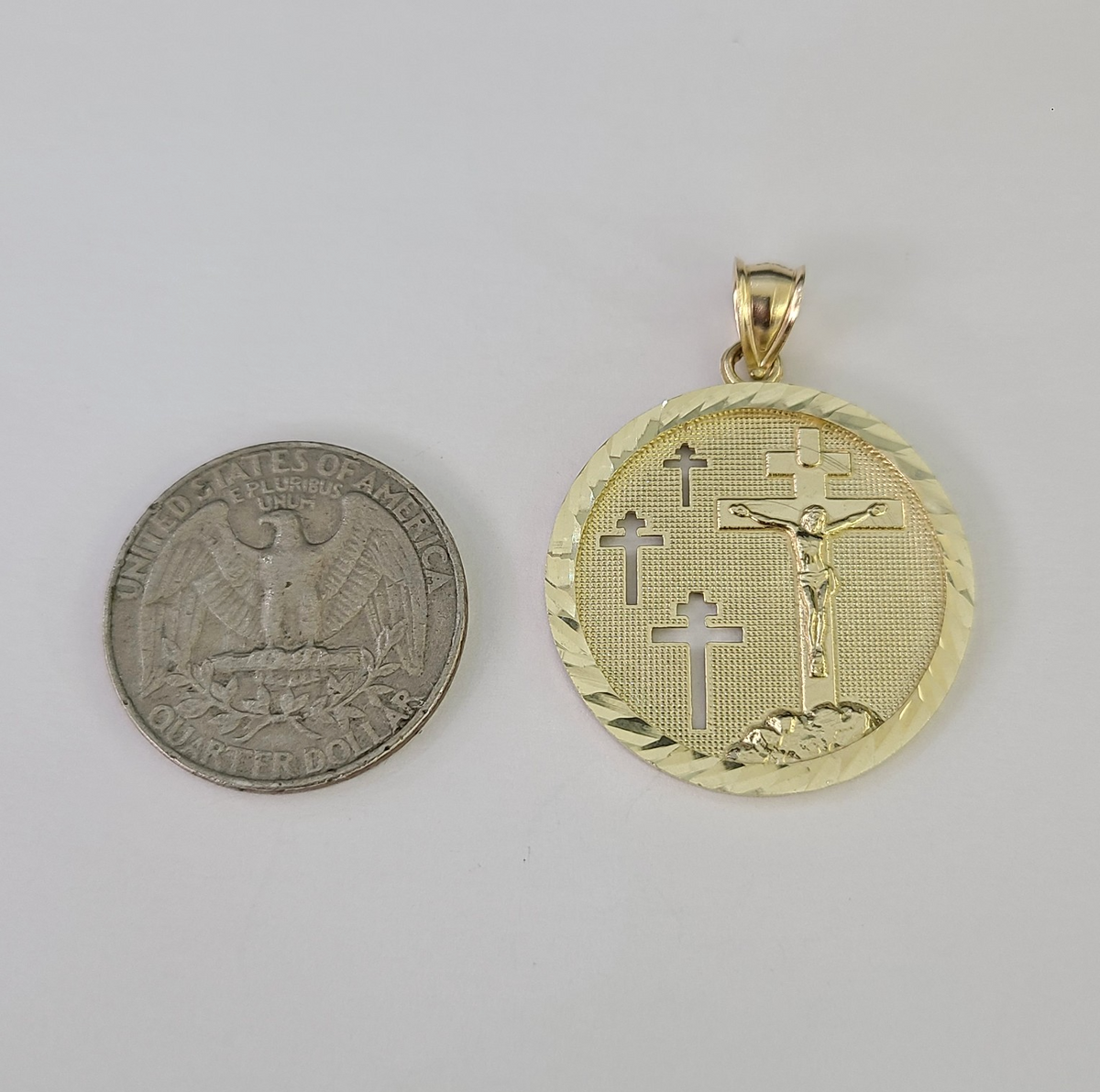 10kt Gold Miami Cuban Chain Jesus Medallion Cross Charm Pendant 5mm 18-28 Inch Necklace SALE
