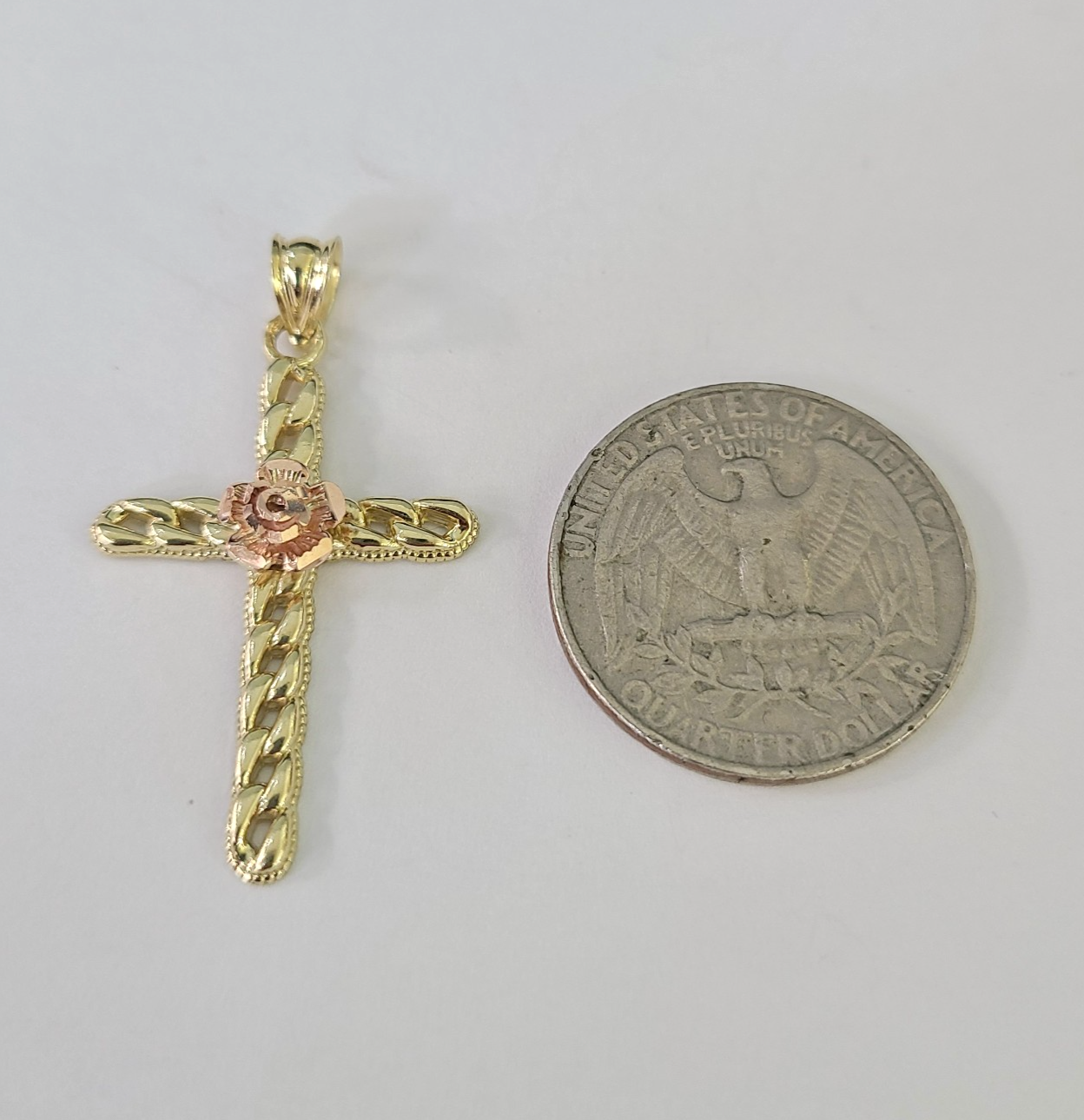 10kt Gold Miami Cuban Chain Jesus Rose Cross Charm Pendant 3mm 18-28 Inch Necklace SALE