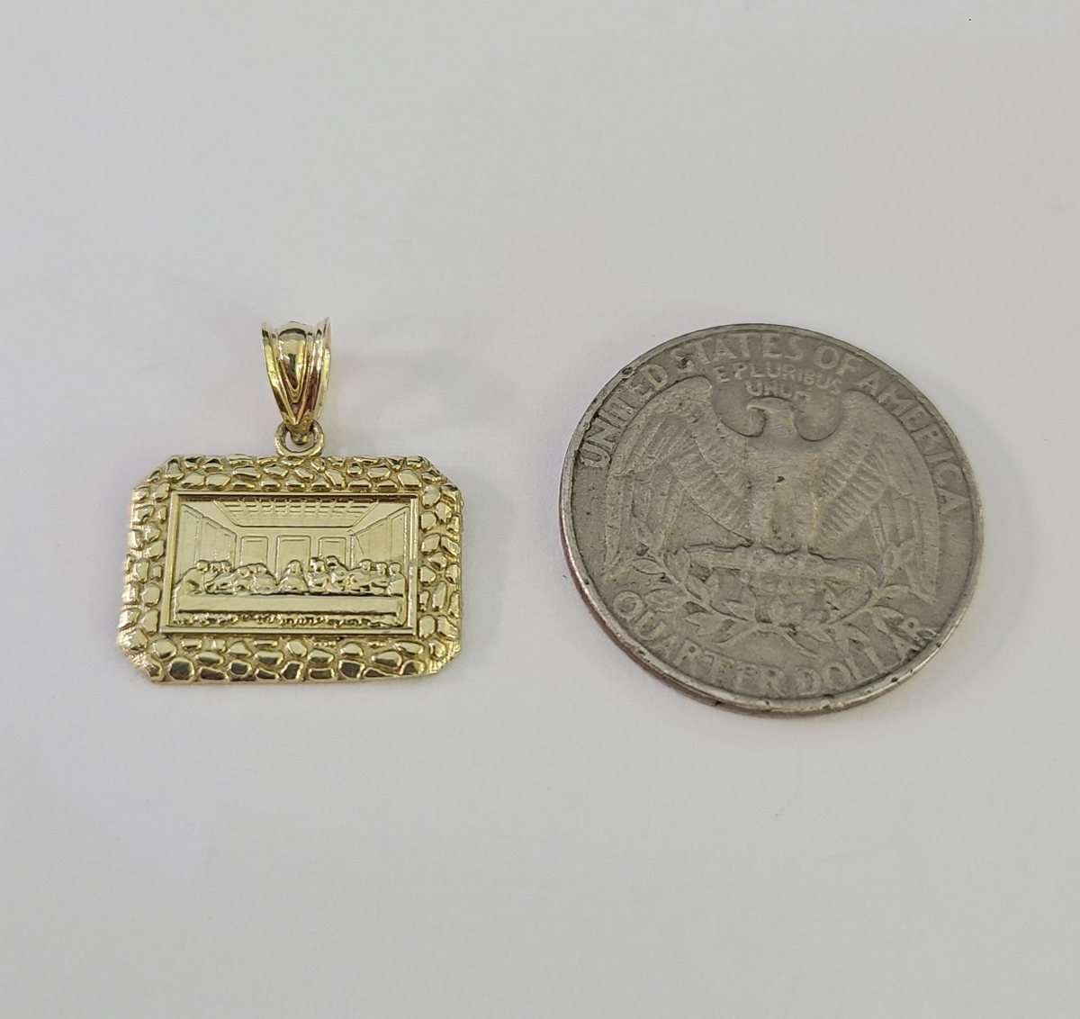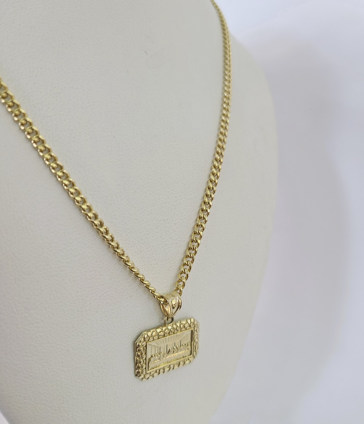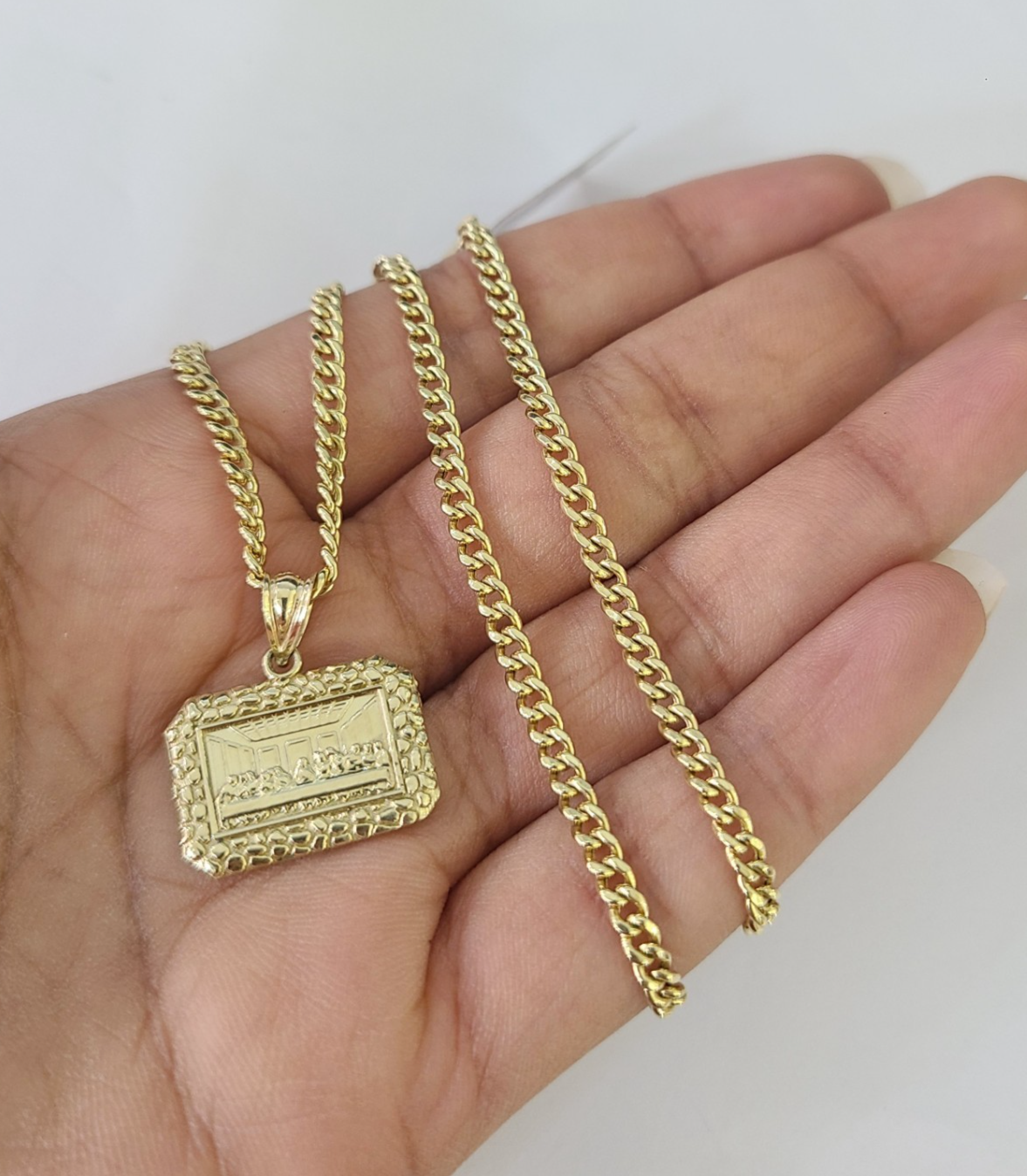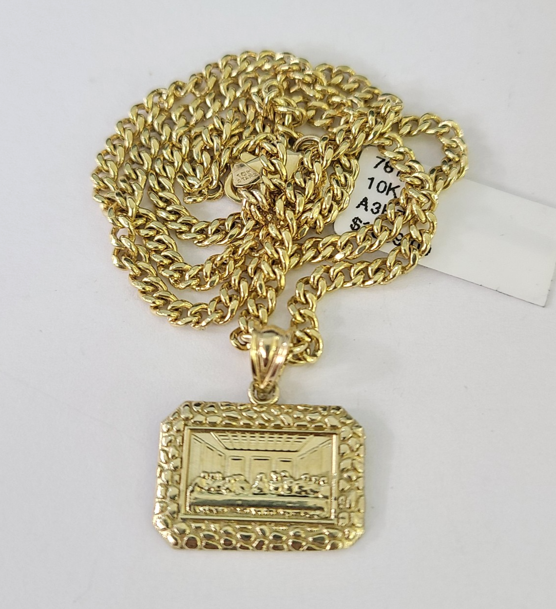 10k Gold Last Supper Charm Miami Cuban Chain 3mm 18"-28" Necklace Pendant Set