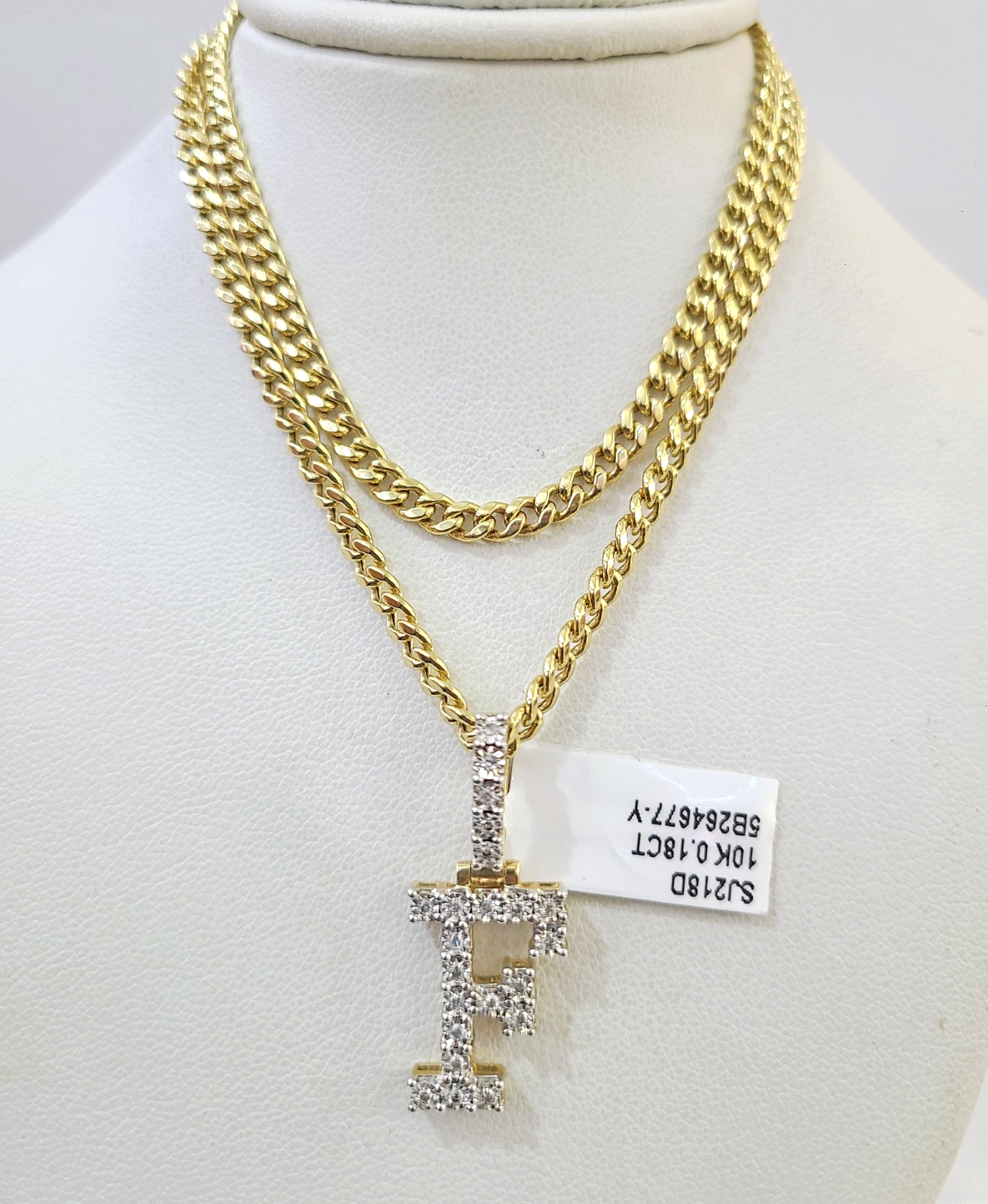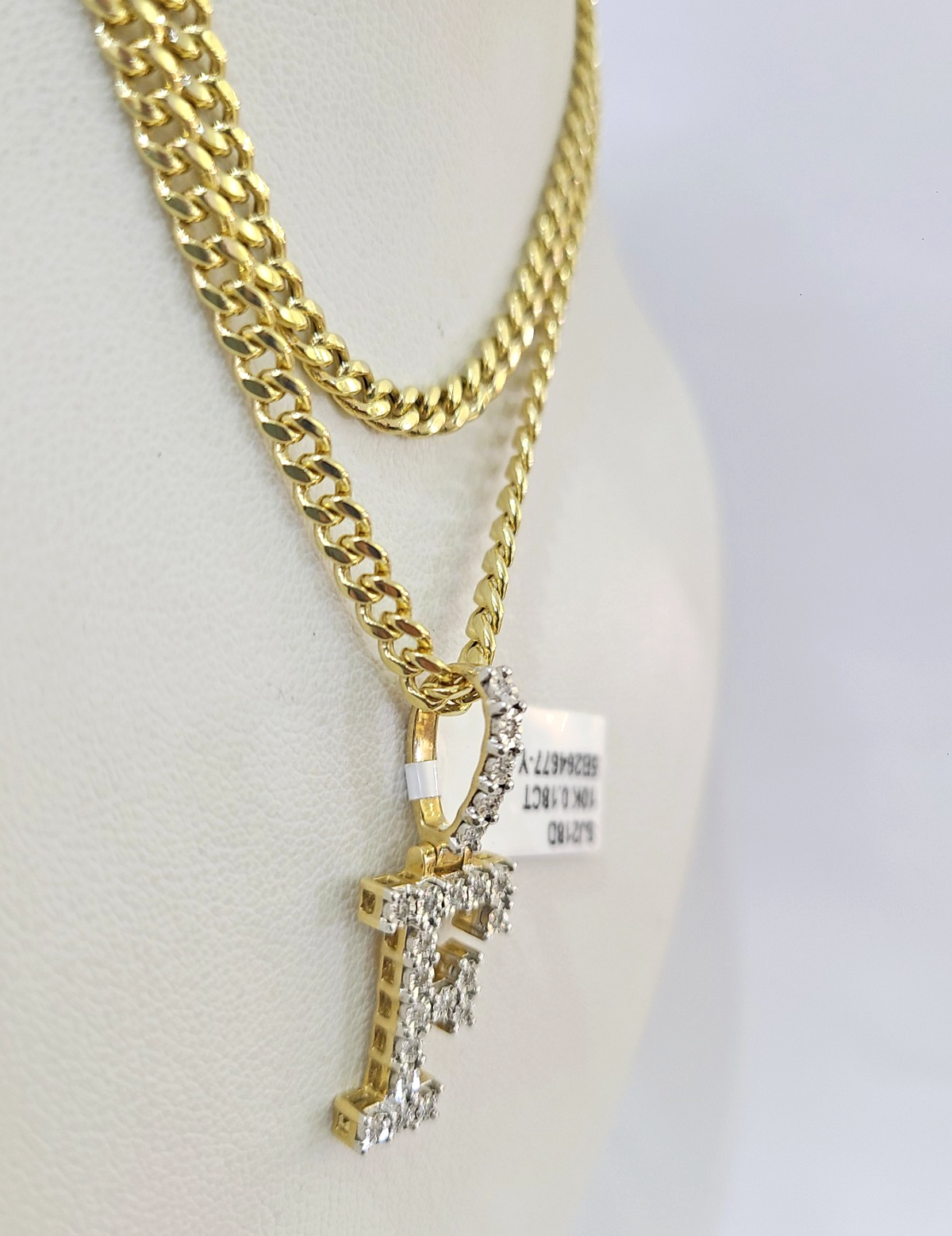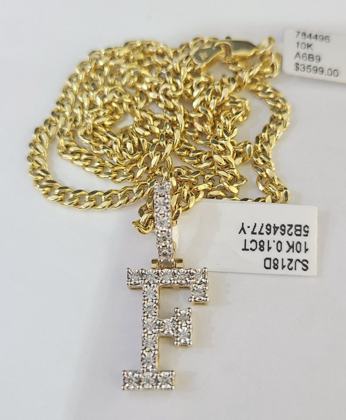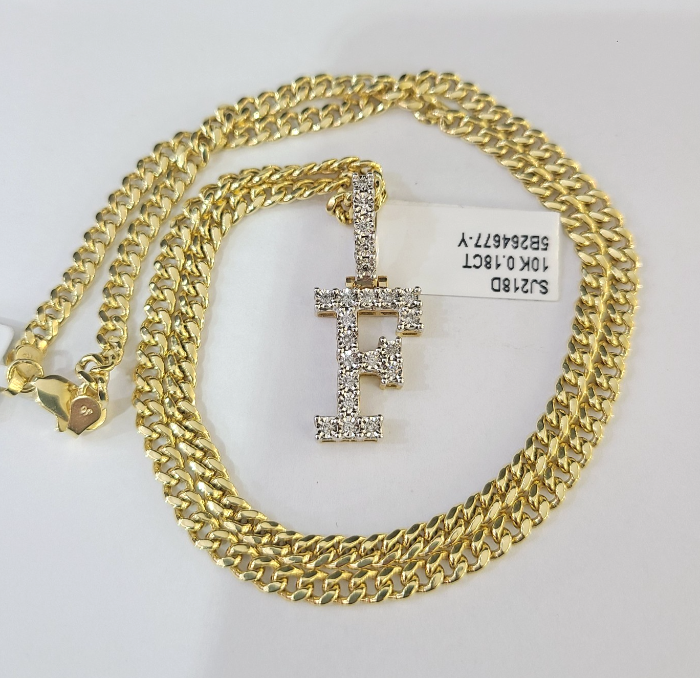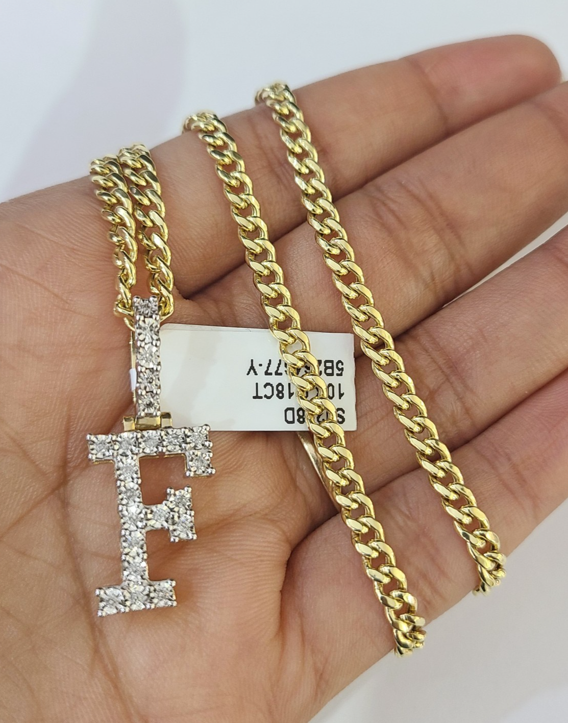 10K Gold Miami Cuban Chain F Diamond Initial 20"-28" 3mm Pendant Necklace SET - 20 Inch with Chain