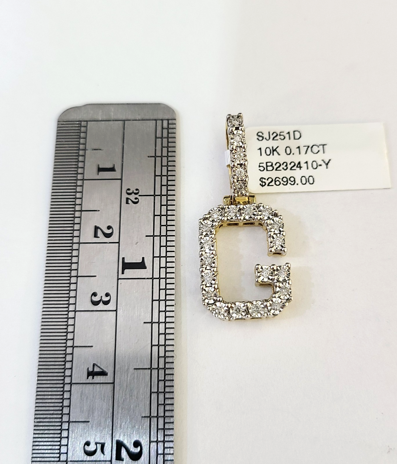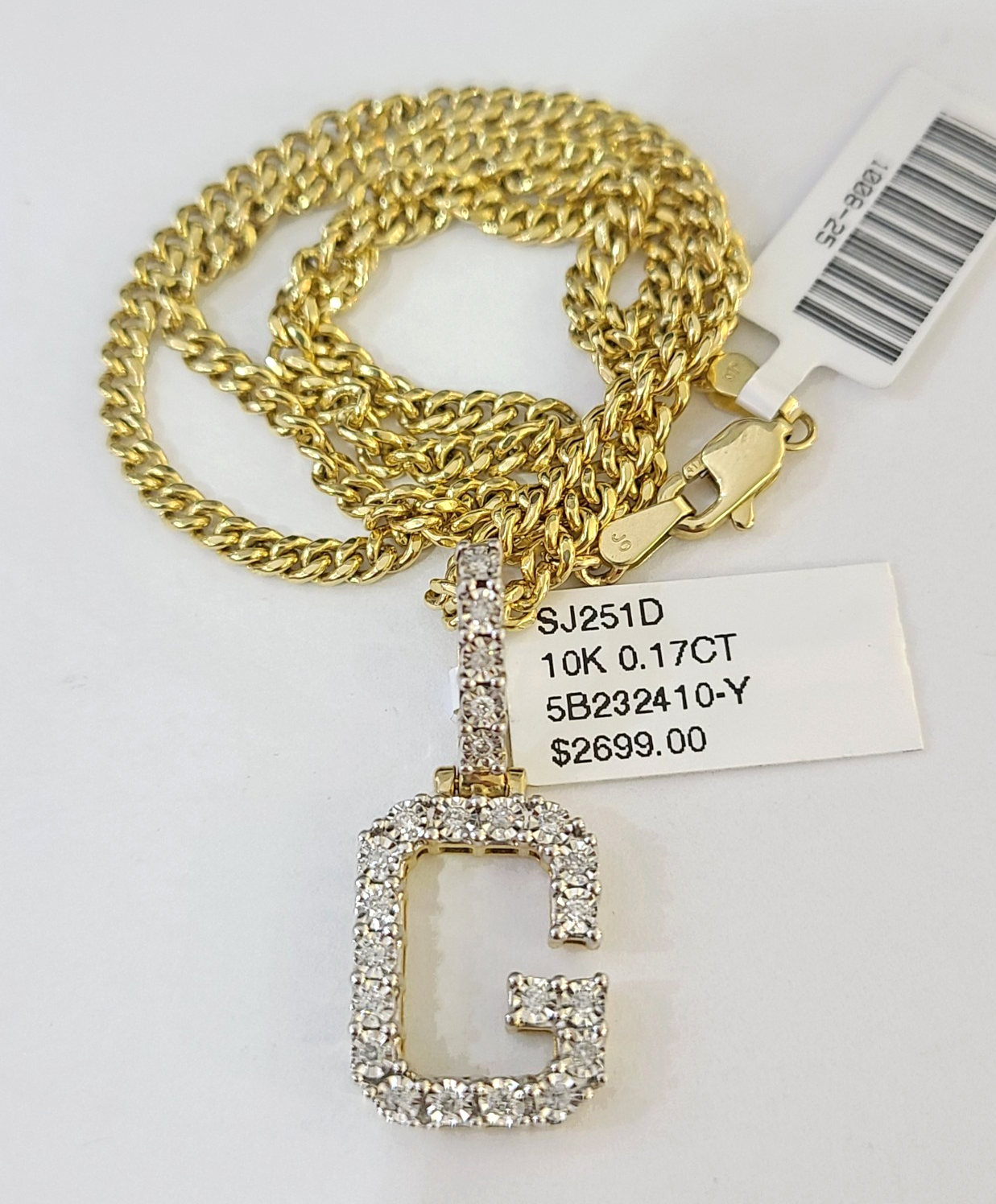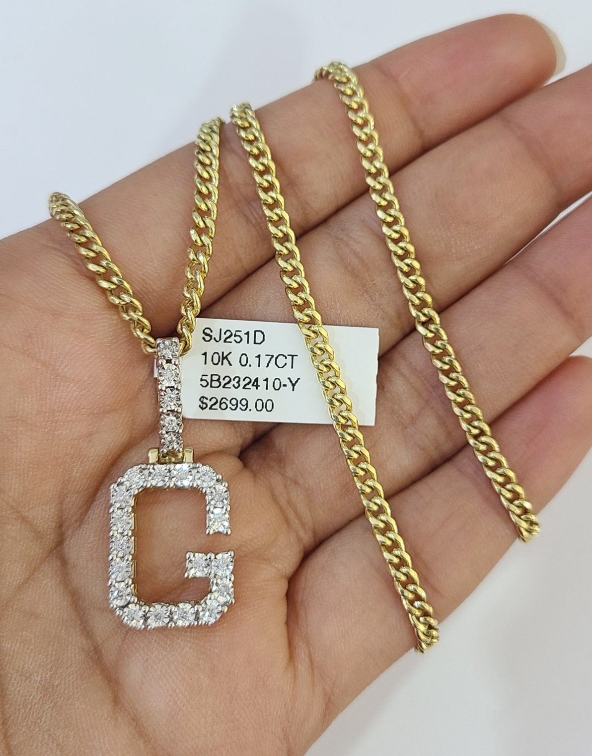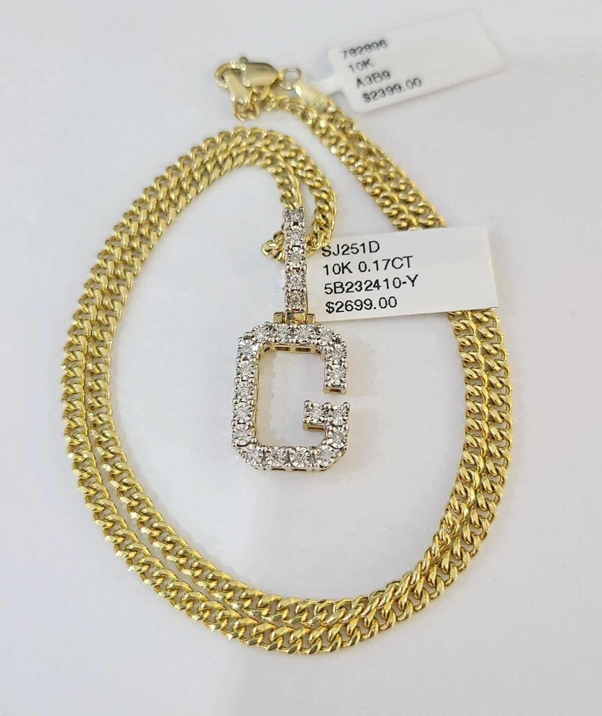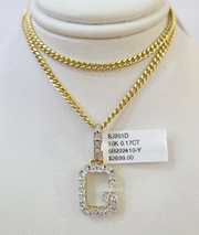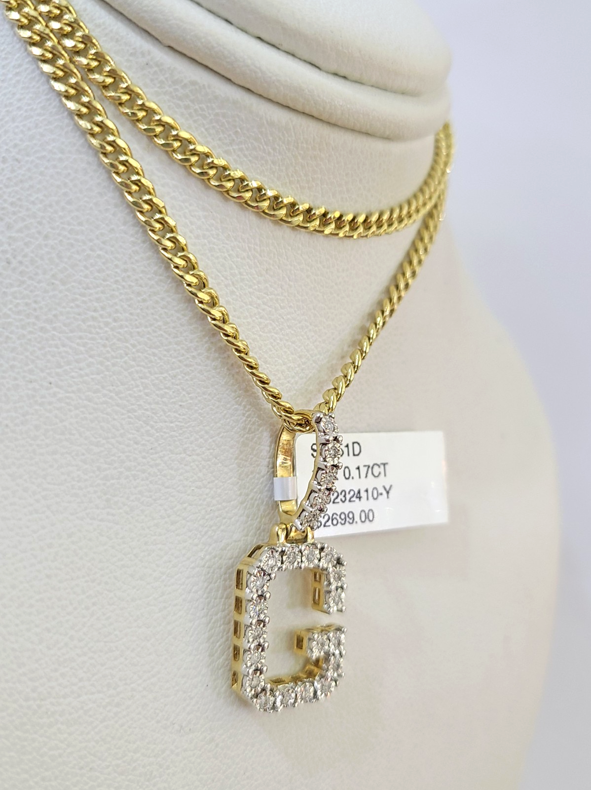 10K Gold Miami Cuban Chain G Diamond Initial 18"-24" 2mm Pendant Necklace SET - 20 Inch with Chain