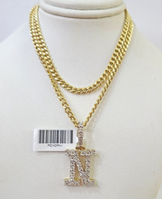 10K Gold Miami Cuban Chain N Diamond Initial 20"-28" 3mm Pendant Necklace SET - 20 Inch with Chain