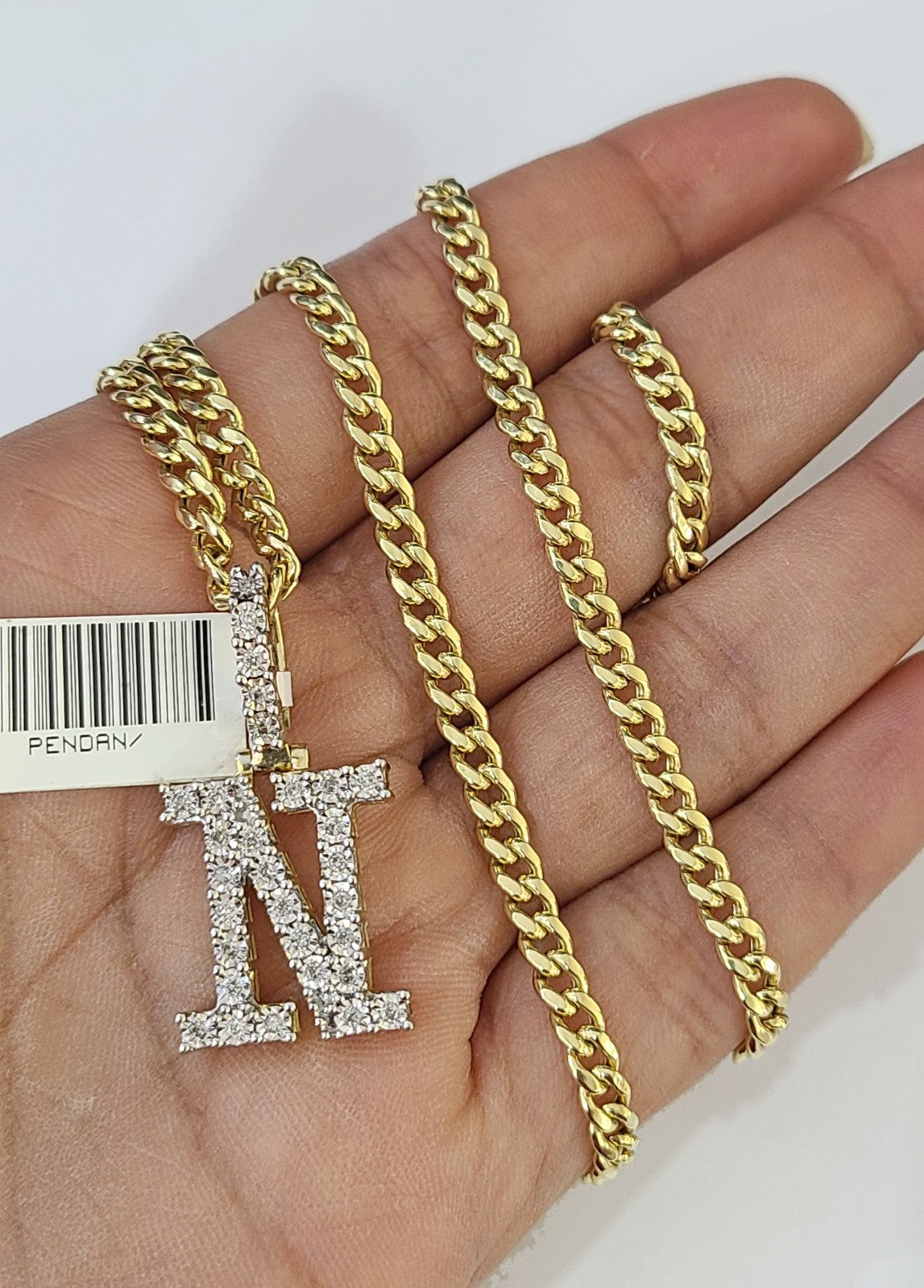 10K Gold Miami Cuban Chain N Diamond Initial 20"-28" 3mm Pendant Neckl – Goldenlinq index