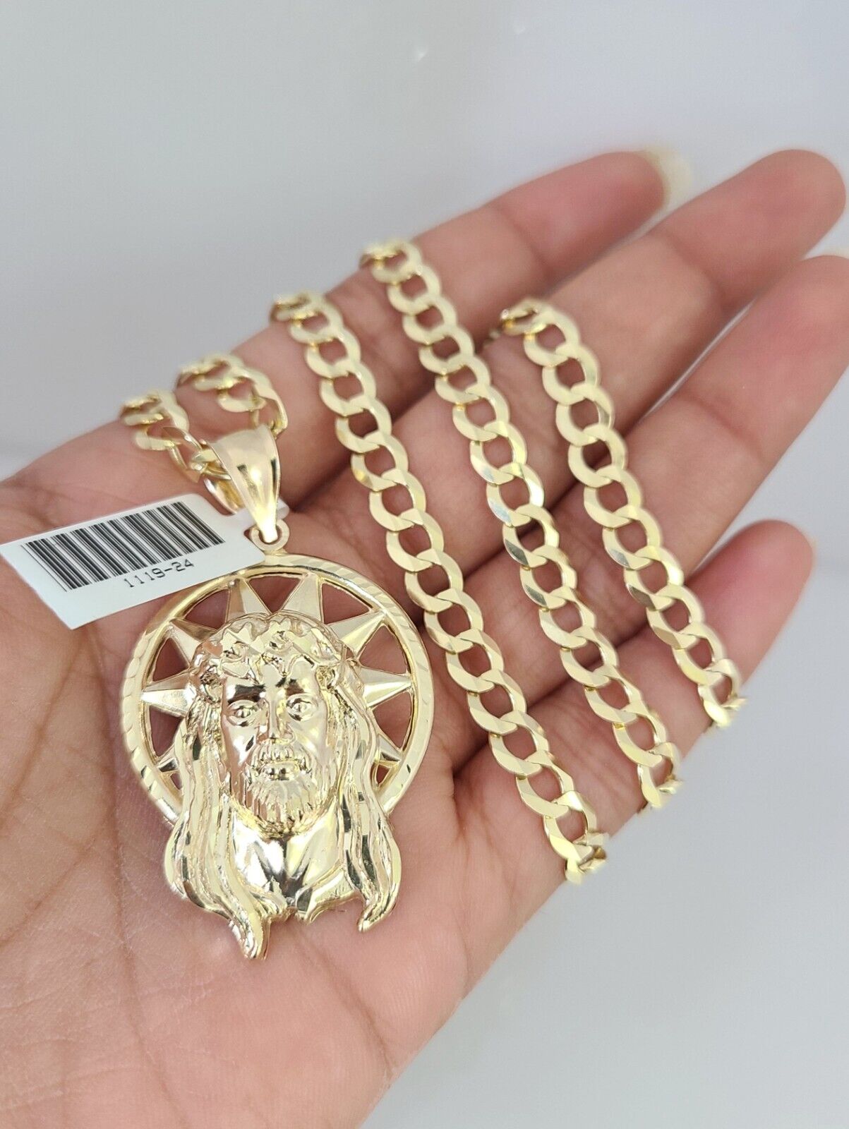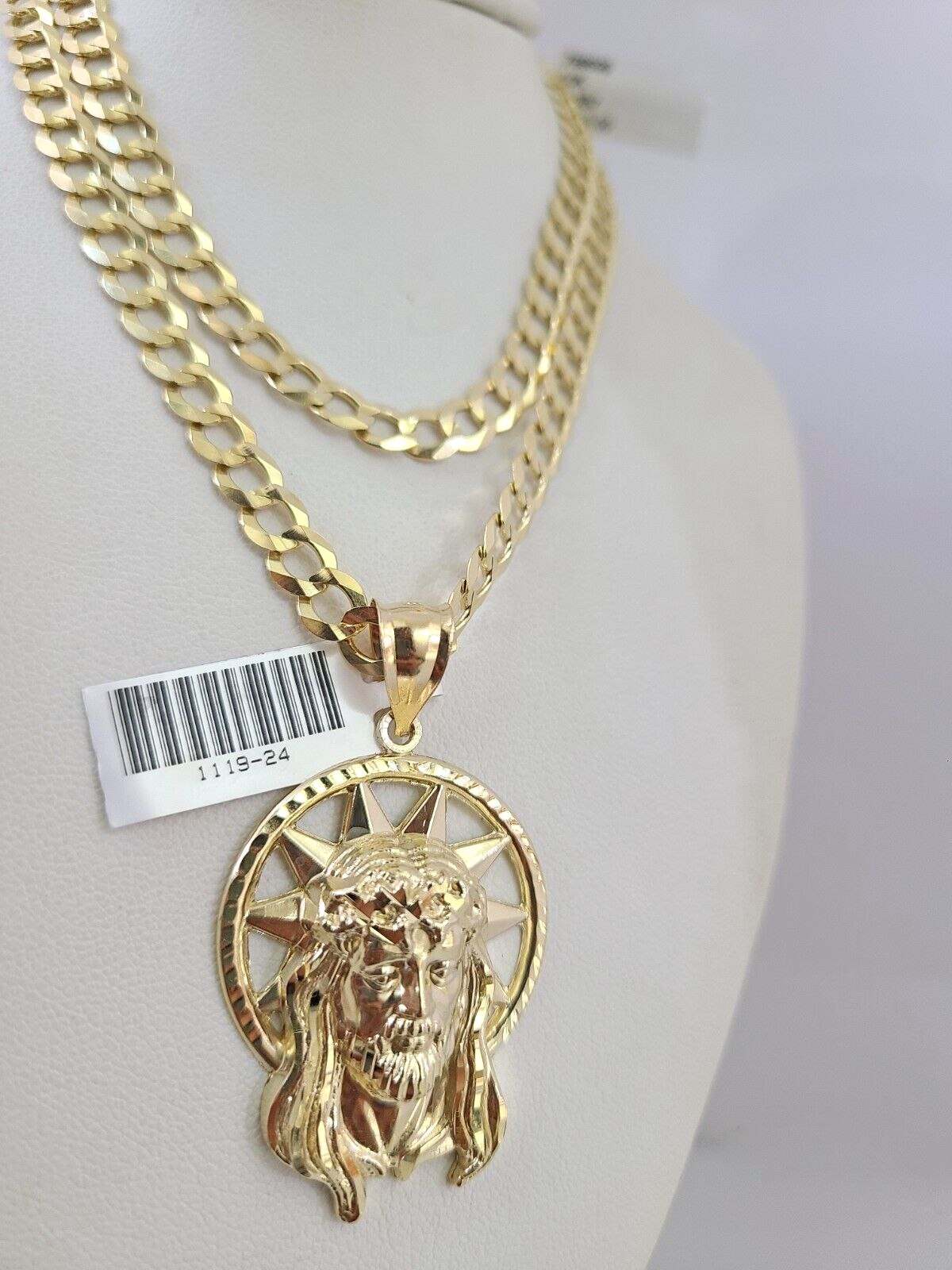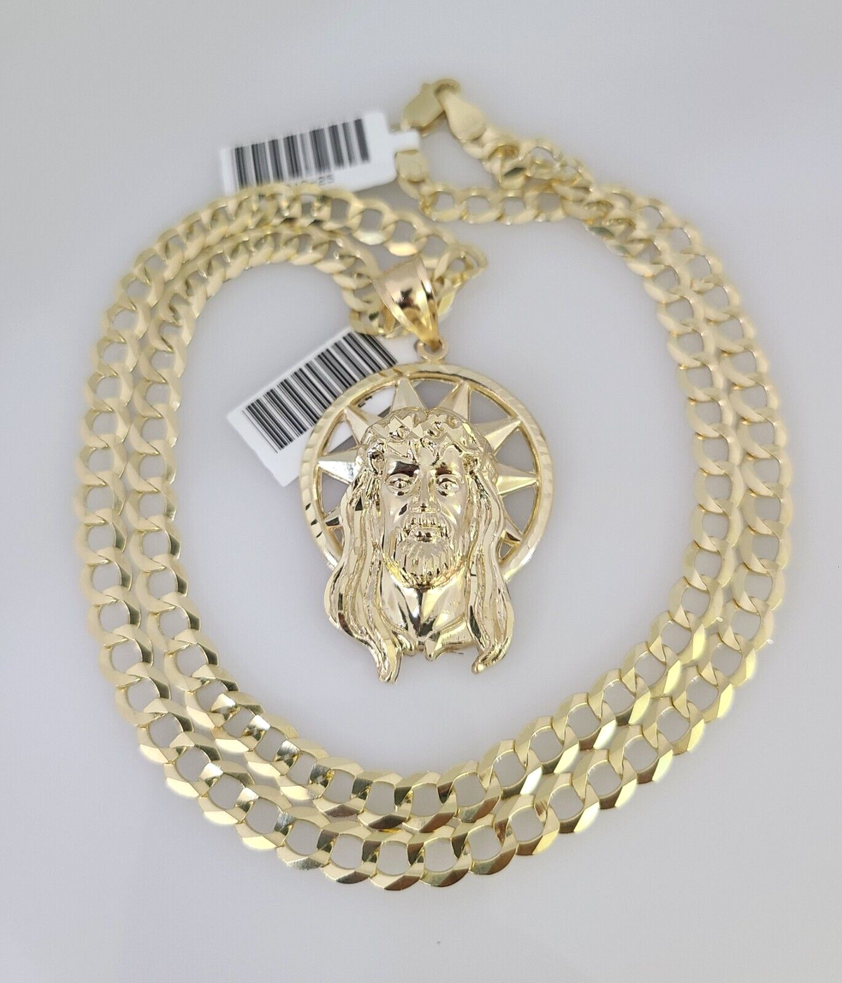 10k Gold Solid Cuban Curb Chain Necklace Jesus Head Pendant Set 6mm 20 – Goldenlinq index