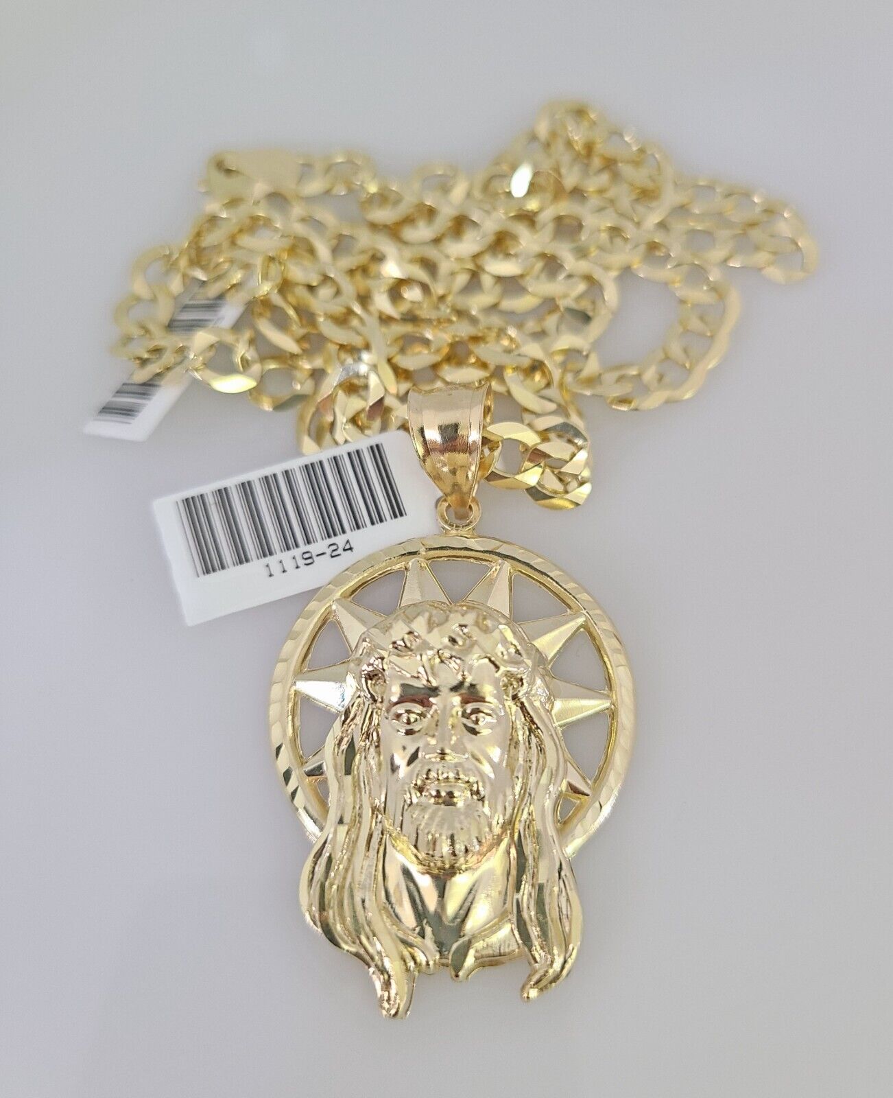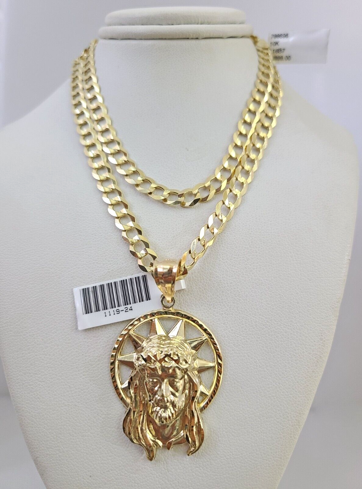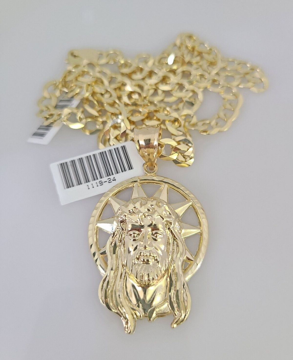 10k Gold Solid Cuban Curb Chain Necklace Jesus Head Pendant Set 6mm 20 – Goldenlinq index