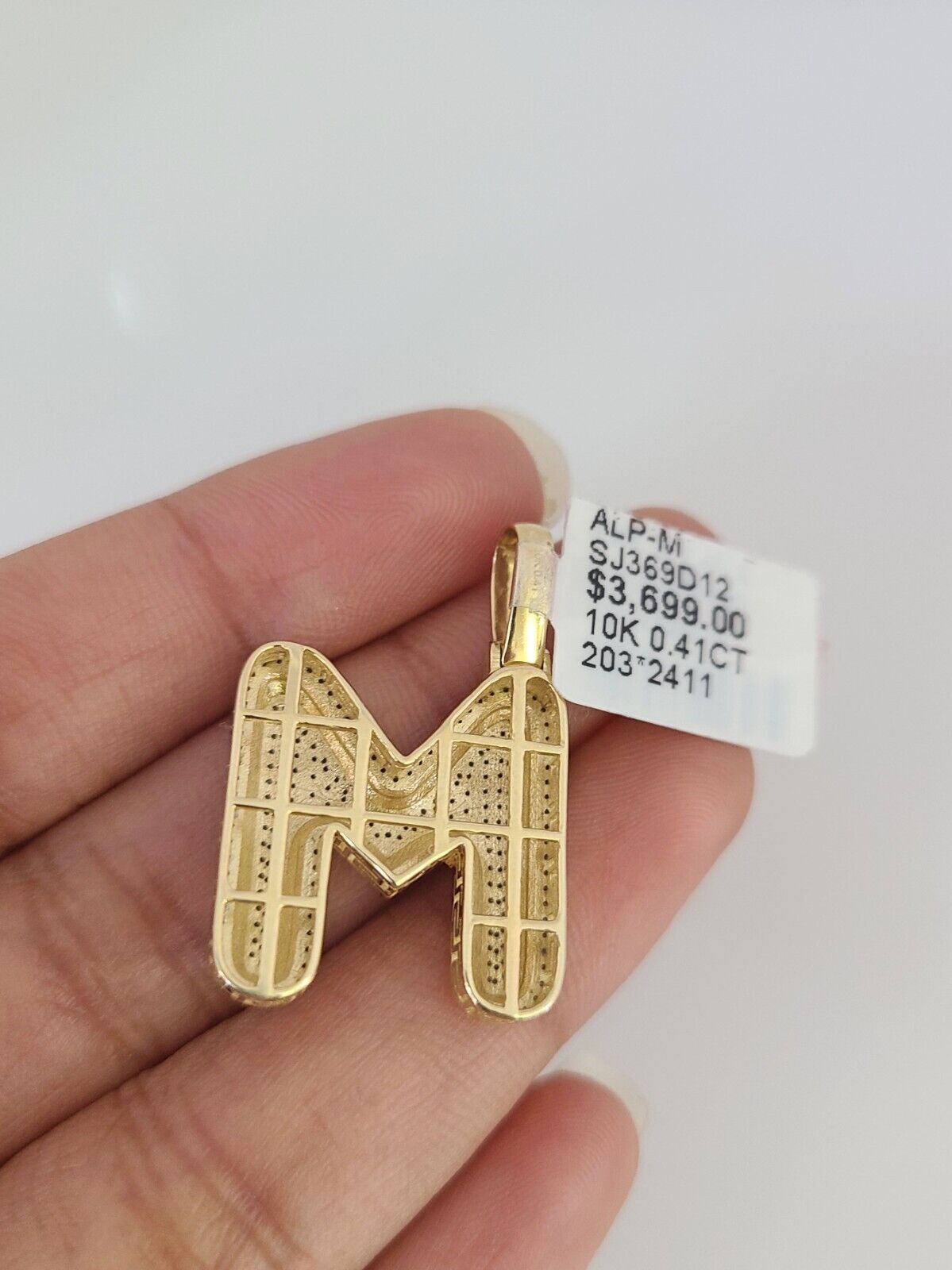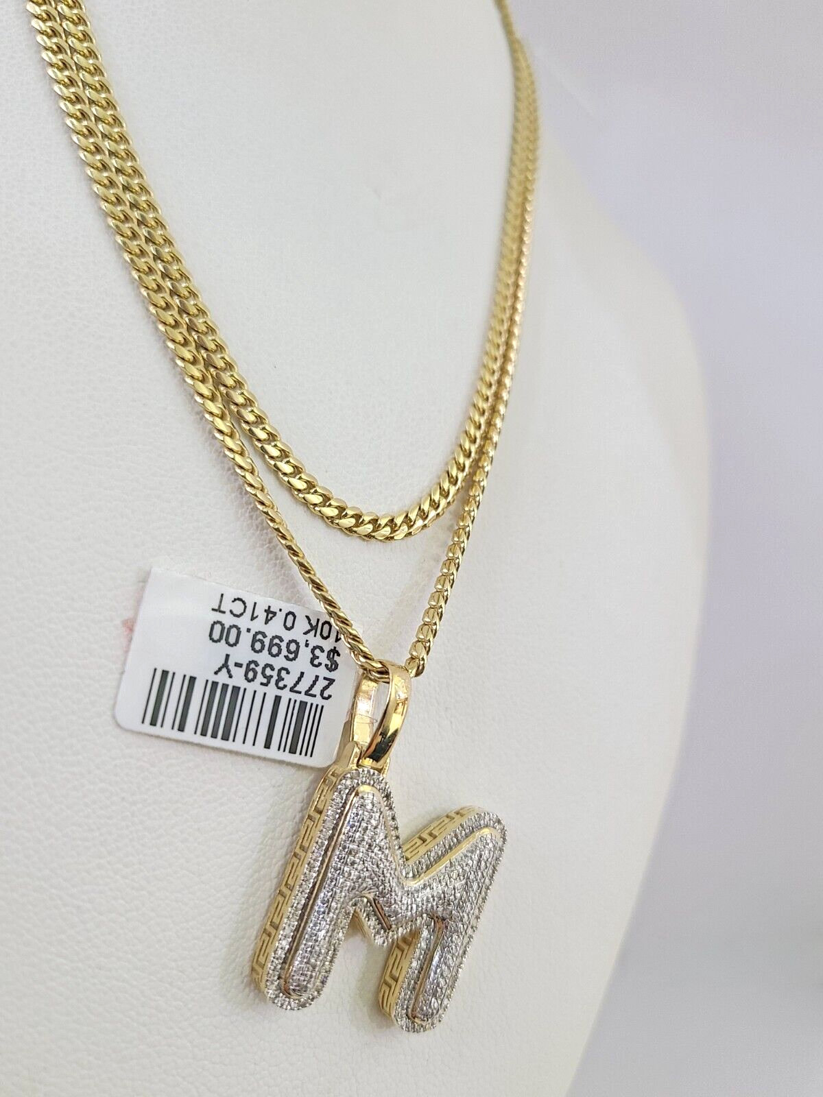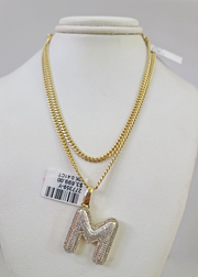 10k Gold Solid Miami Cuban Chain Diamond M Initial Pendant 2.5mm 18"-24" Set