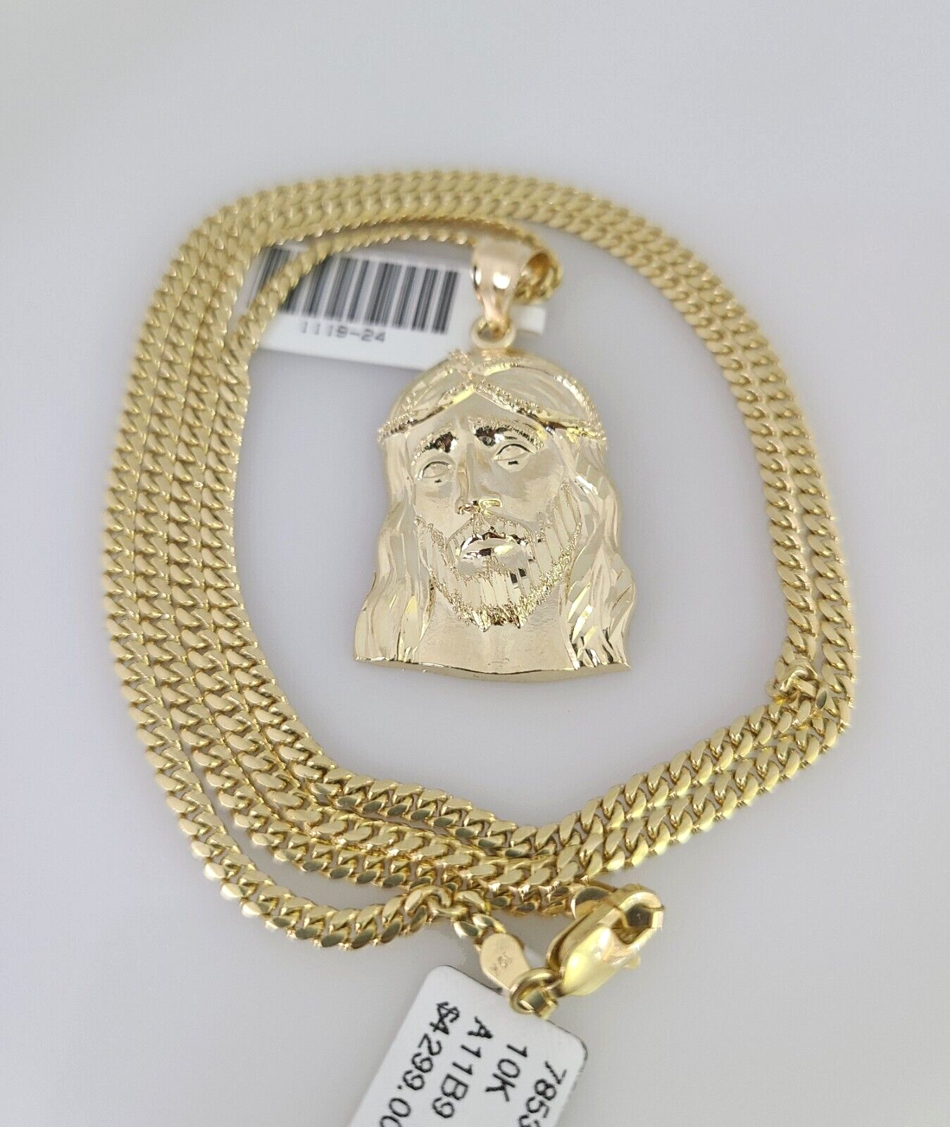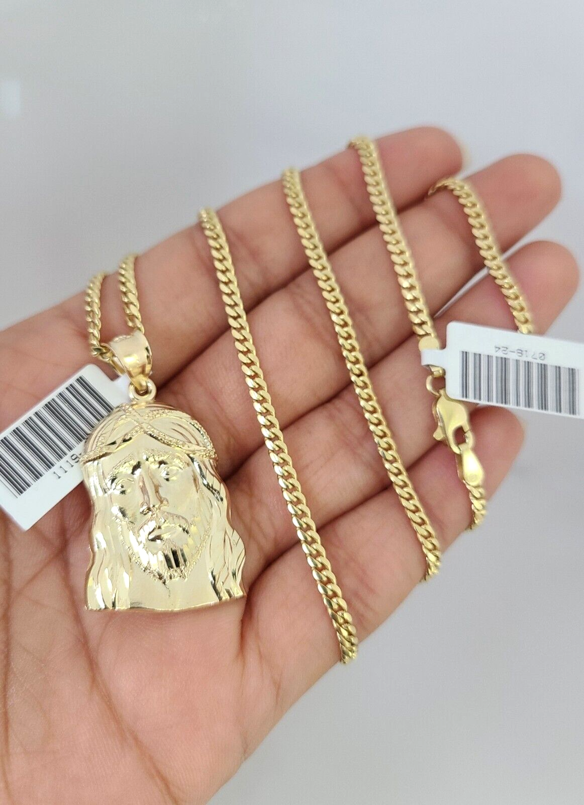 10k Gold Solid Miami Cuban Chain Necklace Jesus Head Pendant 2.5mm 18- – Goldenlinq index