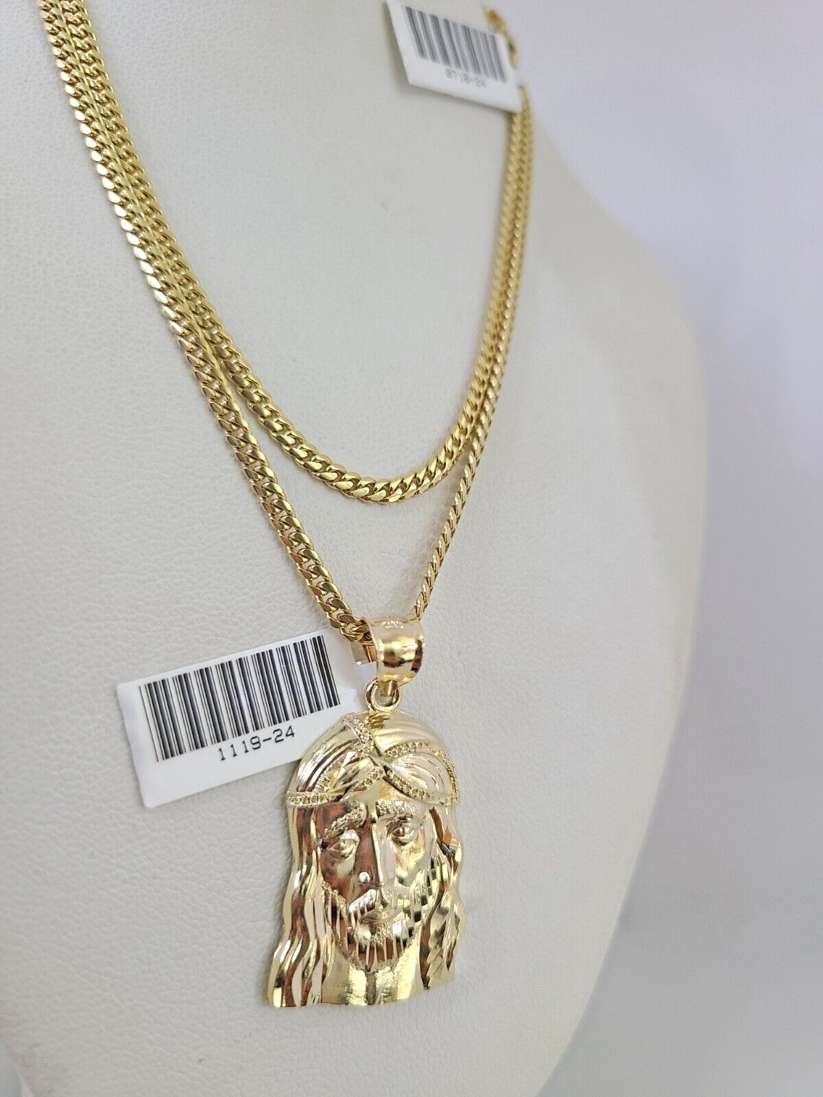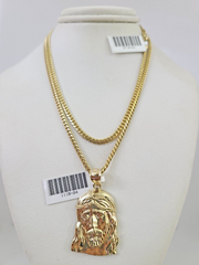 10k Gold Solid Miami Cuban Chain Necklace Jesus Head Pendant 2.5mm 18-24" Set - 20 Inch