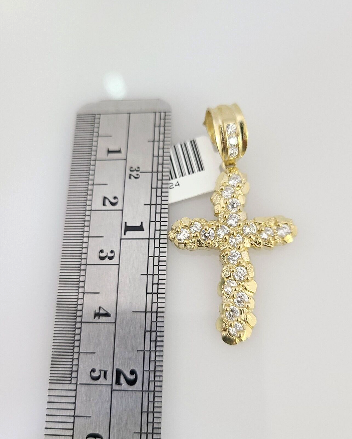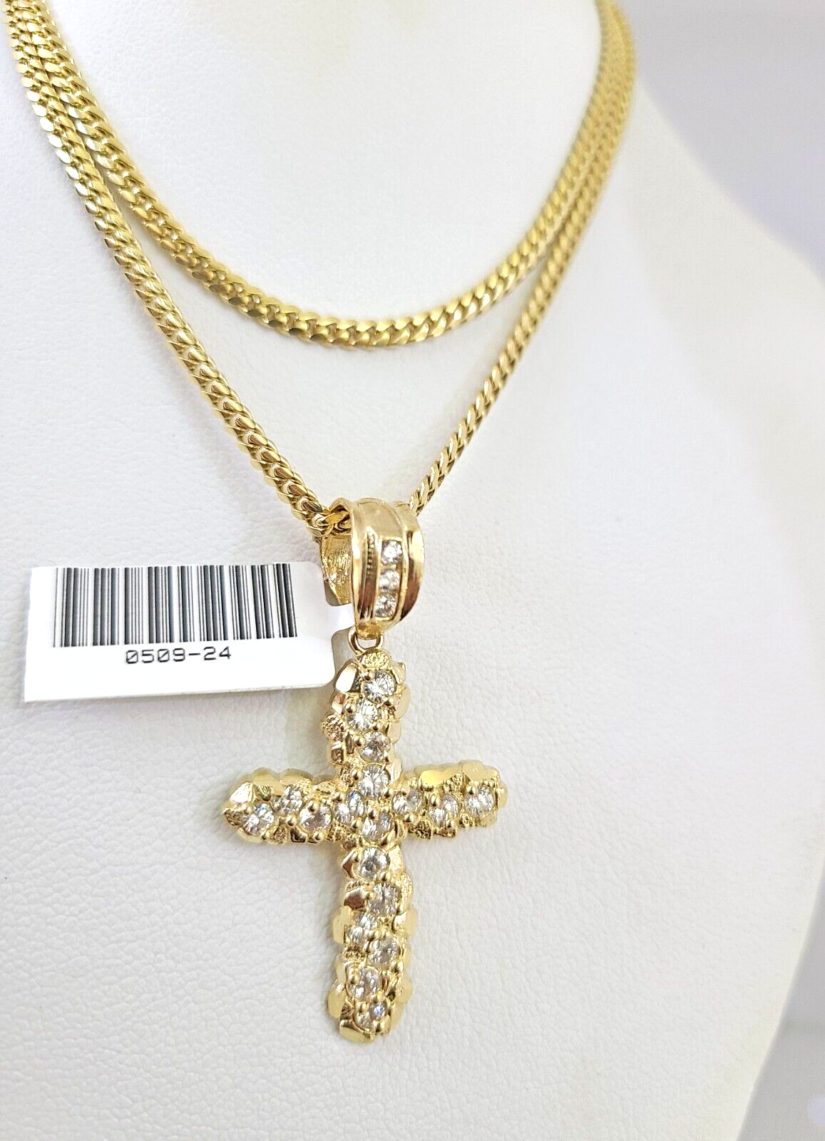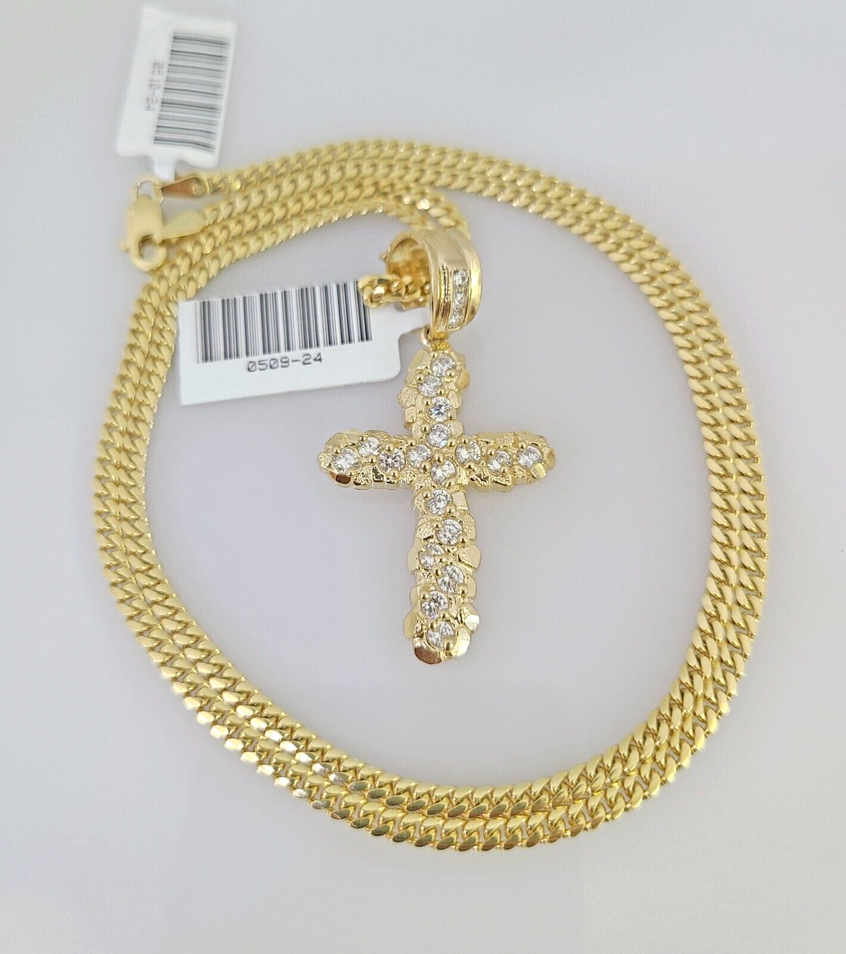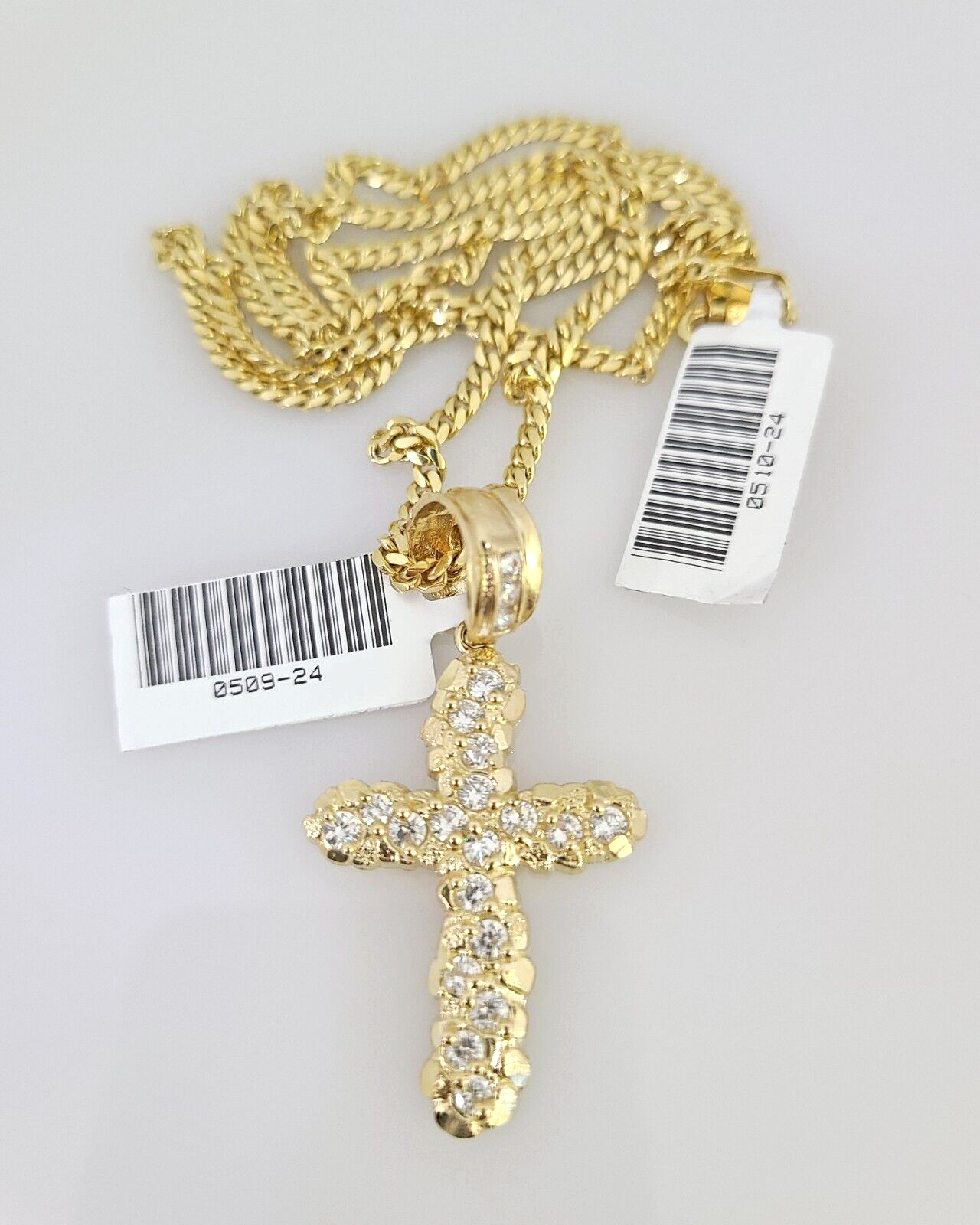 Genuine 10k Yellow Gold Miami Cuban Necklace 2.5mm Chain With Jesus Cross Charm. The Various length of the Chain are 18"-24" . The pendants are unique in design and considered durable too. If you are not happy with the way it looks or feels, we do offer 30 - Days FREE Return shipping. Contact us for more information.