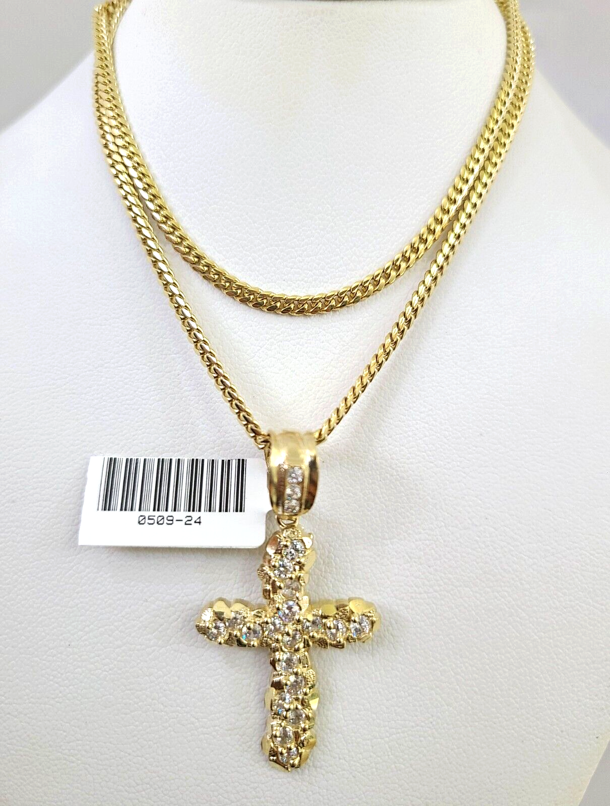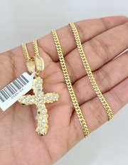 10kt Gold Miami Cuban Chain Jesus Cross Charm Pendant 2.5mm 18-24 Inch Necklace SALE