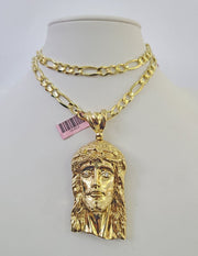 14k Figaro Chain Jesus Head Charm Pendant Gold 7mm 20-30 inch SET Necklace - 20" Chain with Charm