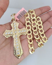 14k Gold Chain Jesus Cross Charm Solid Cuban Curb 10mm 20"-30" SET Necklace
