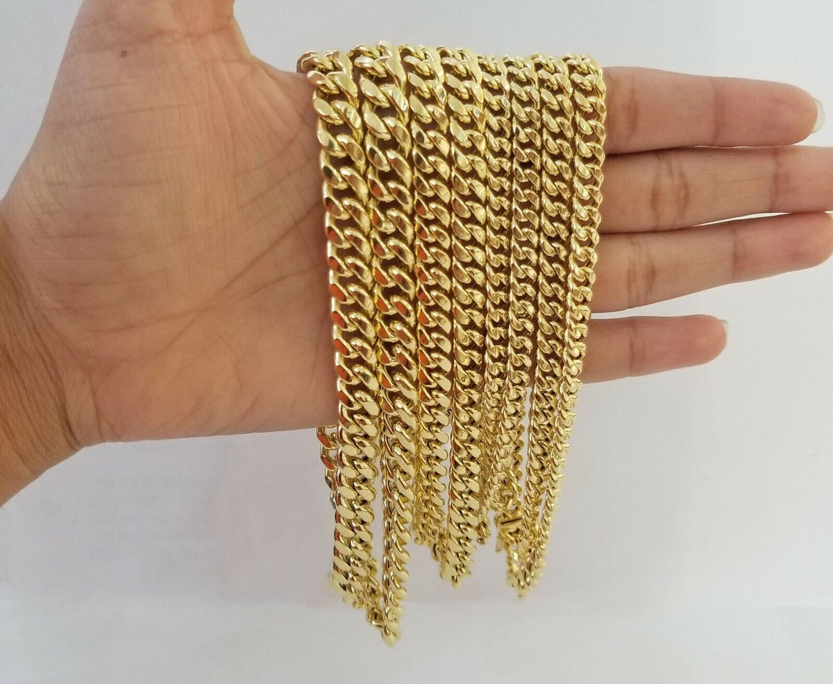 Is Presenting You with This Absolutely Stunning Real14k Yellow Gold Miami Cuban Chain 6-9mm , 20"-24" Inches with box lock. These Beautiful chain will not tarnish, discolor, or fade because they are Pure 14K Gold. We also have them in various another length. Please feel free to contact us if you have any queries regarding the item.