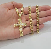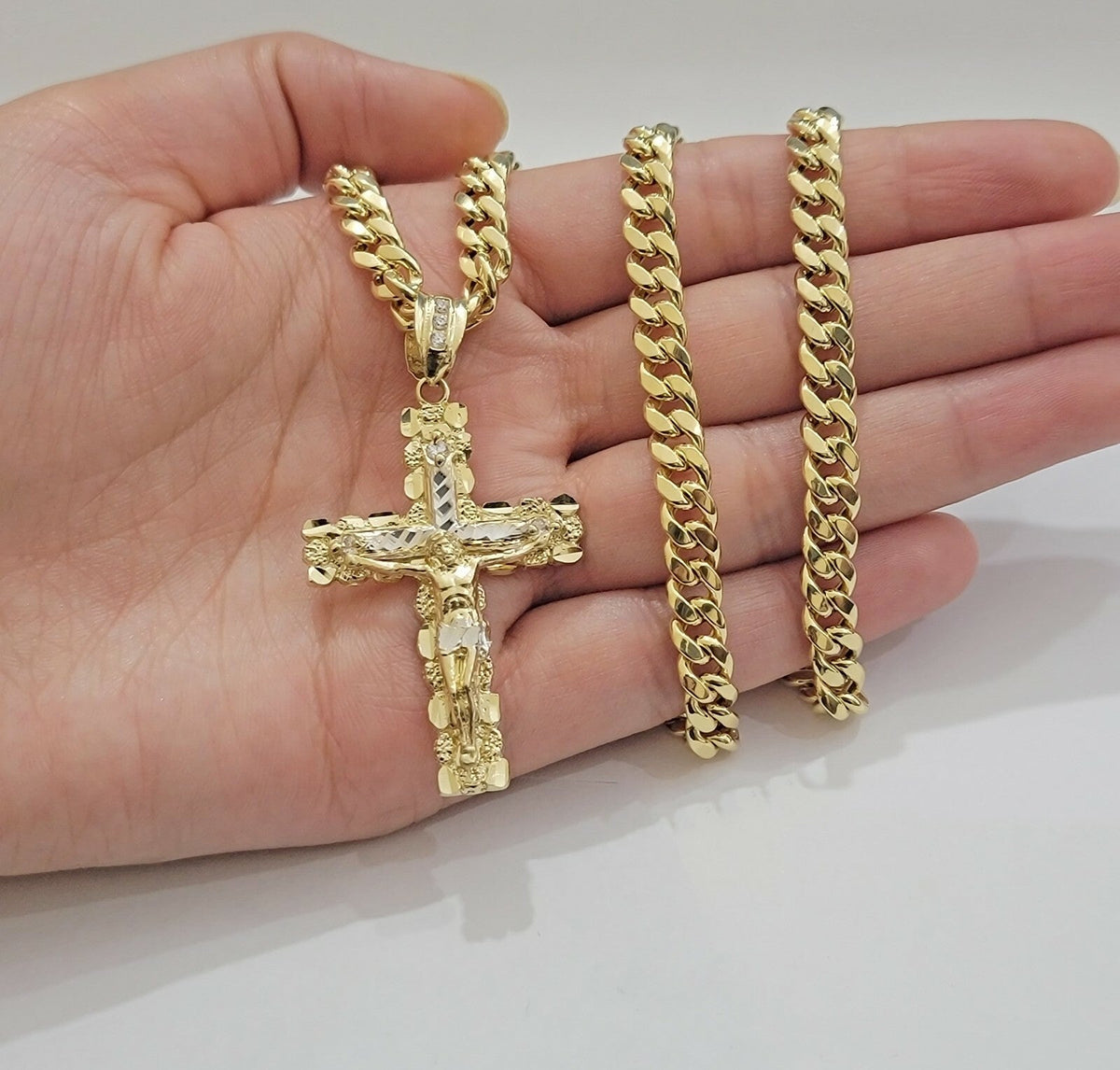 Real 14k Gold Chain Cross Pendant Necklace SET Miami Cuban Link 7mm 22 – Goldenlinq index