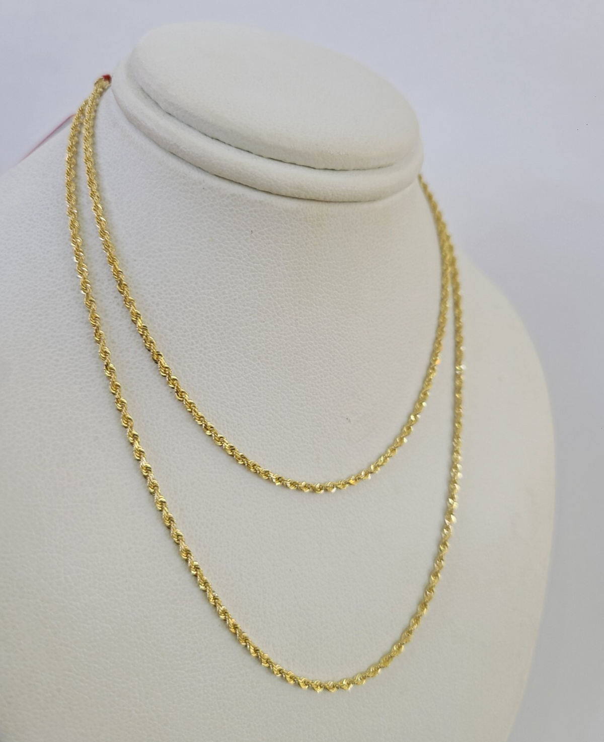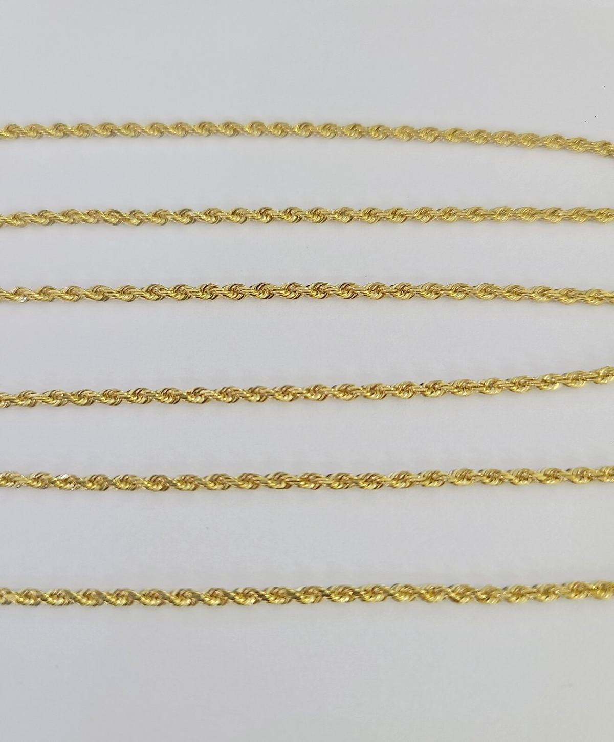 Real 18k Yellow Gold Rope Necklace Ladies chain. The Width of the necklace is 1mm and Length 20 Inches. The Clasp is lobster. The chain can be worn with the pendants. If you are not happy with the way it looks or feels, we do offer 30 - Days FREE Return shipping. Contact us for more information.